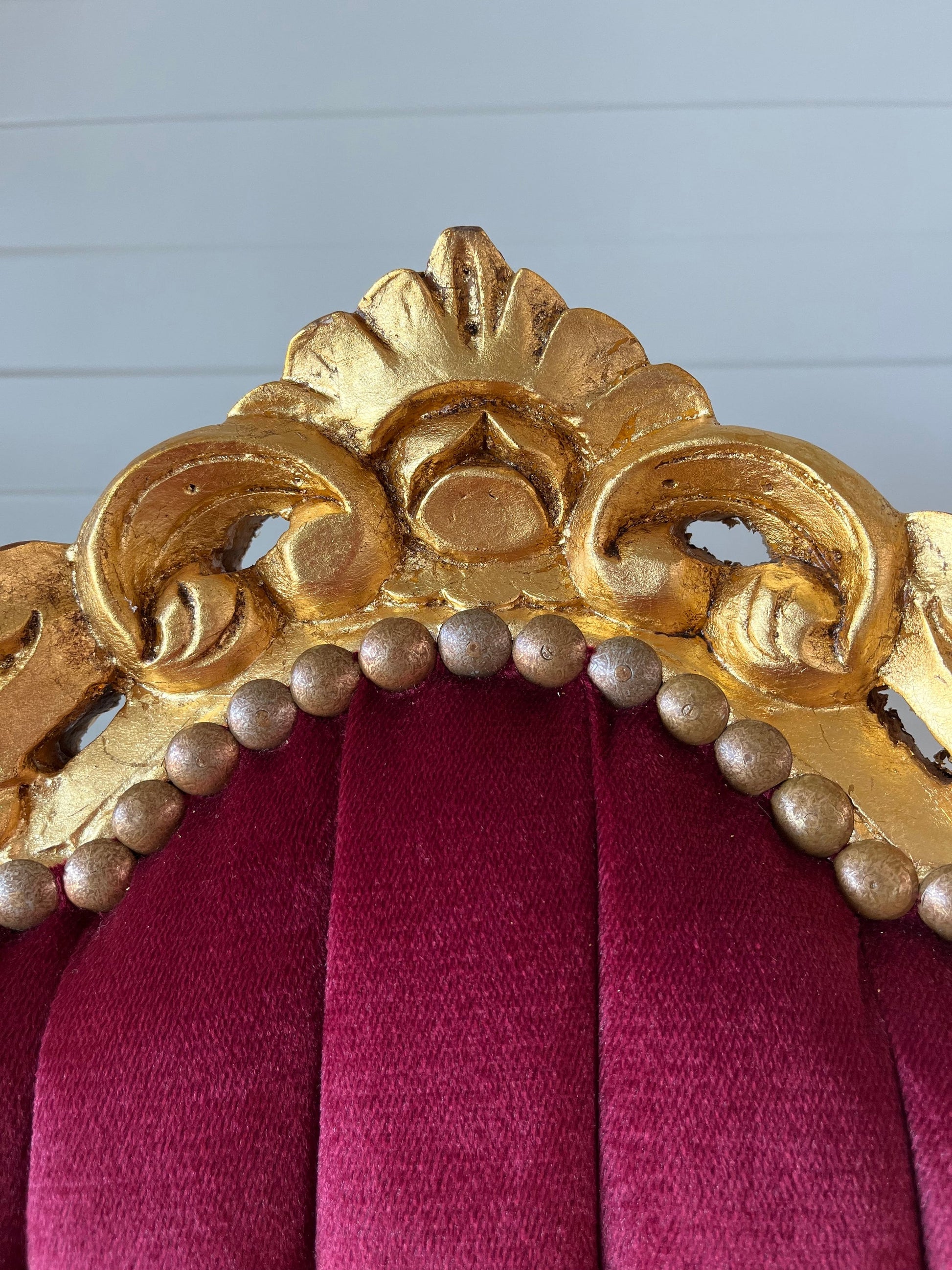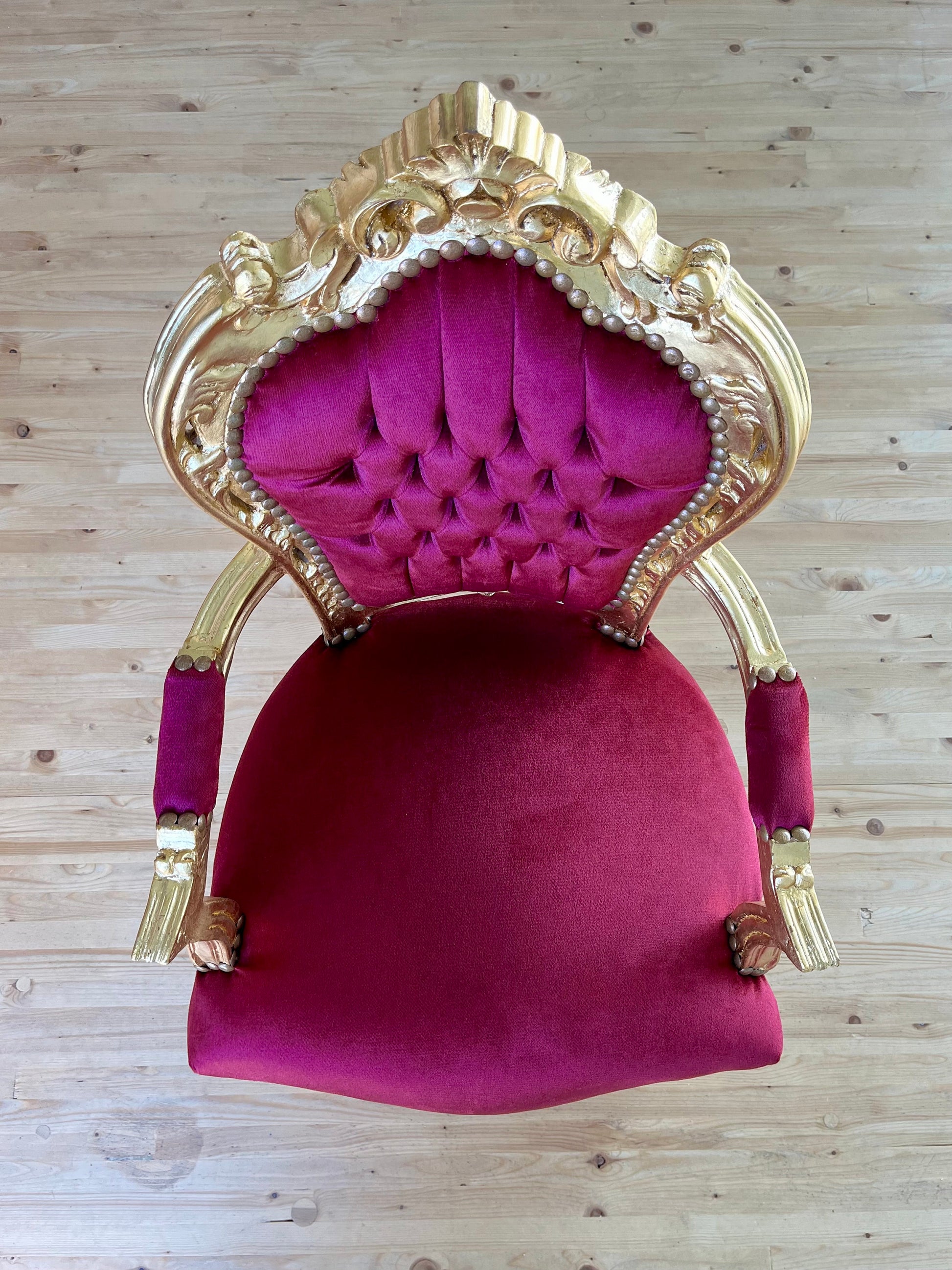 The chair is made of solid beech wood and upholstered in velvet and gilded with foil gold leaf.