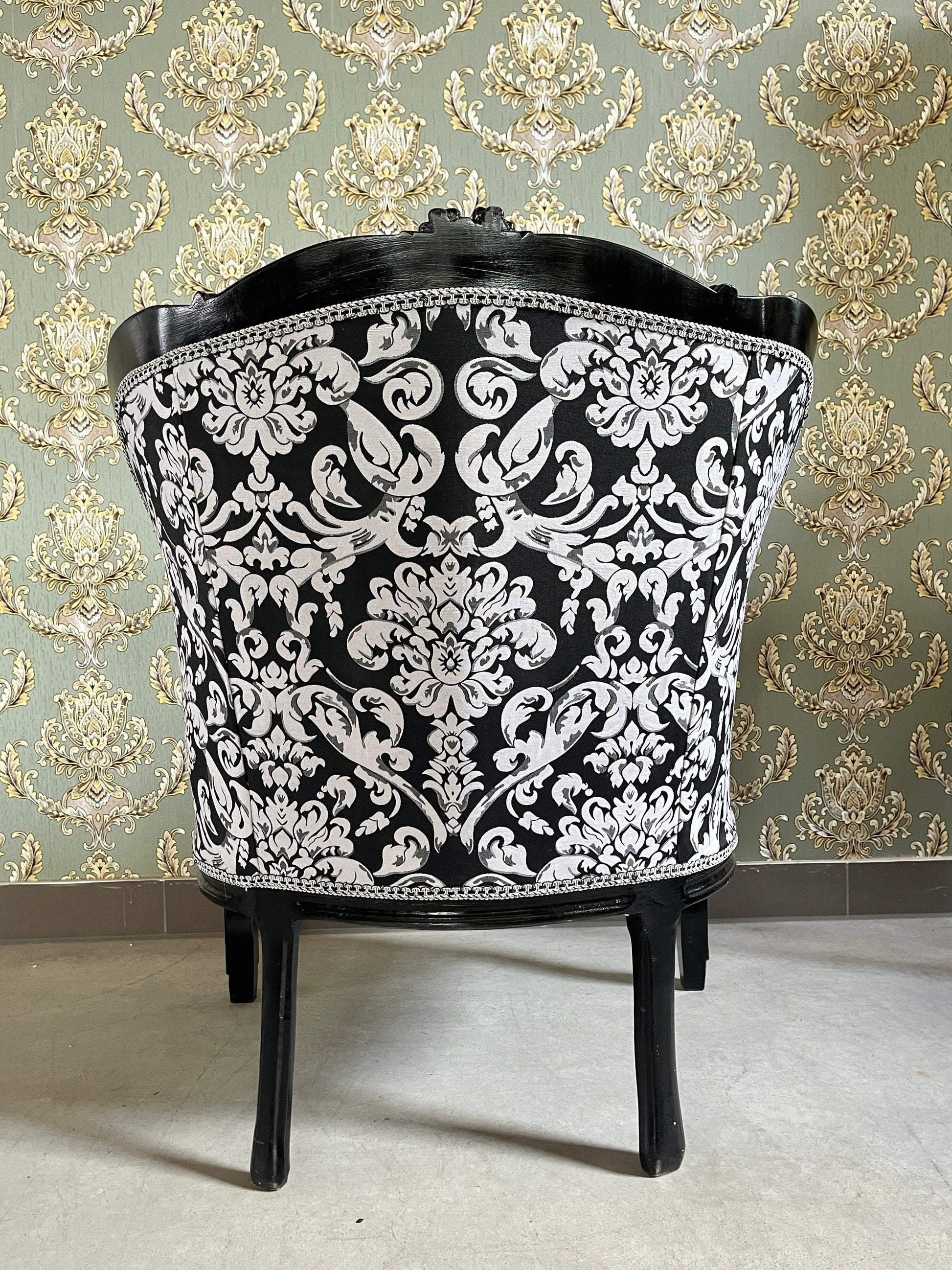 Armchair French Louis Style Shell Shape Chair Nostalgic Baroque Style in Black Floral Lounge Chair for Home Decor