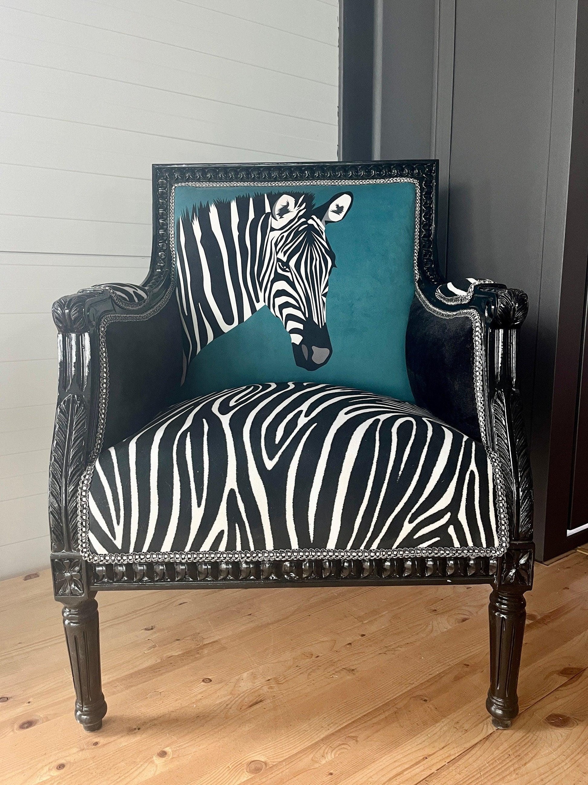 Our new classic style armchair in green black and white colors with a cool zebra print. It's in a party event fun series.