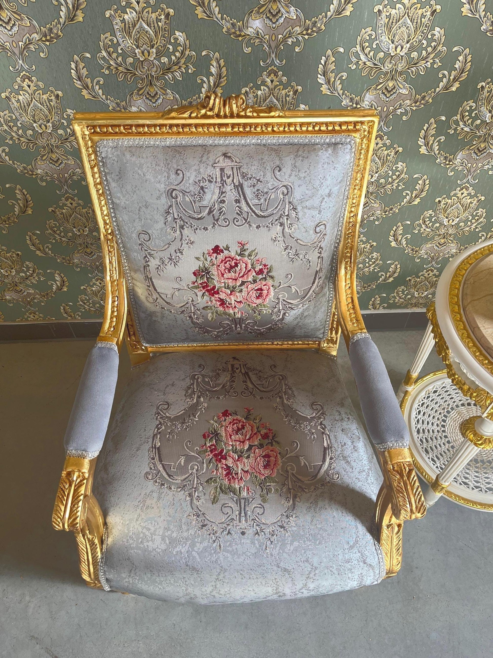 Armchair Table Set French Antique Style Gold Finish for Lounge French Louis Style Chair and Table Baroque Rococo Style Chair Set for Lobby