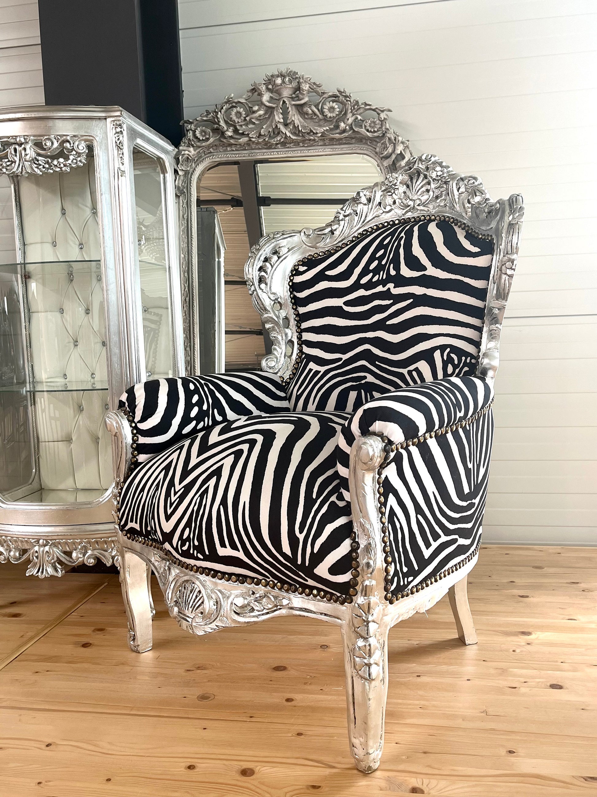 Barock-Sessel im französischen Rokoko-Stil / Baroque Armchair in French Rococo style- Black Zebra