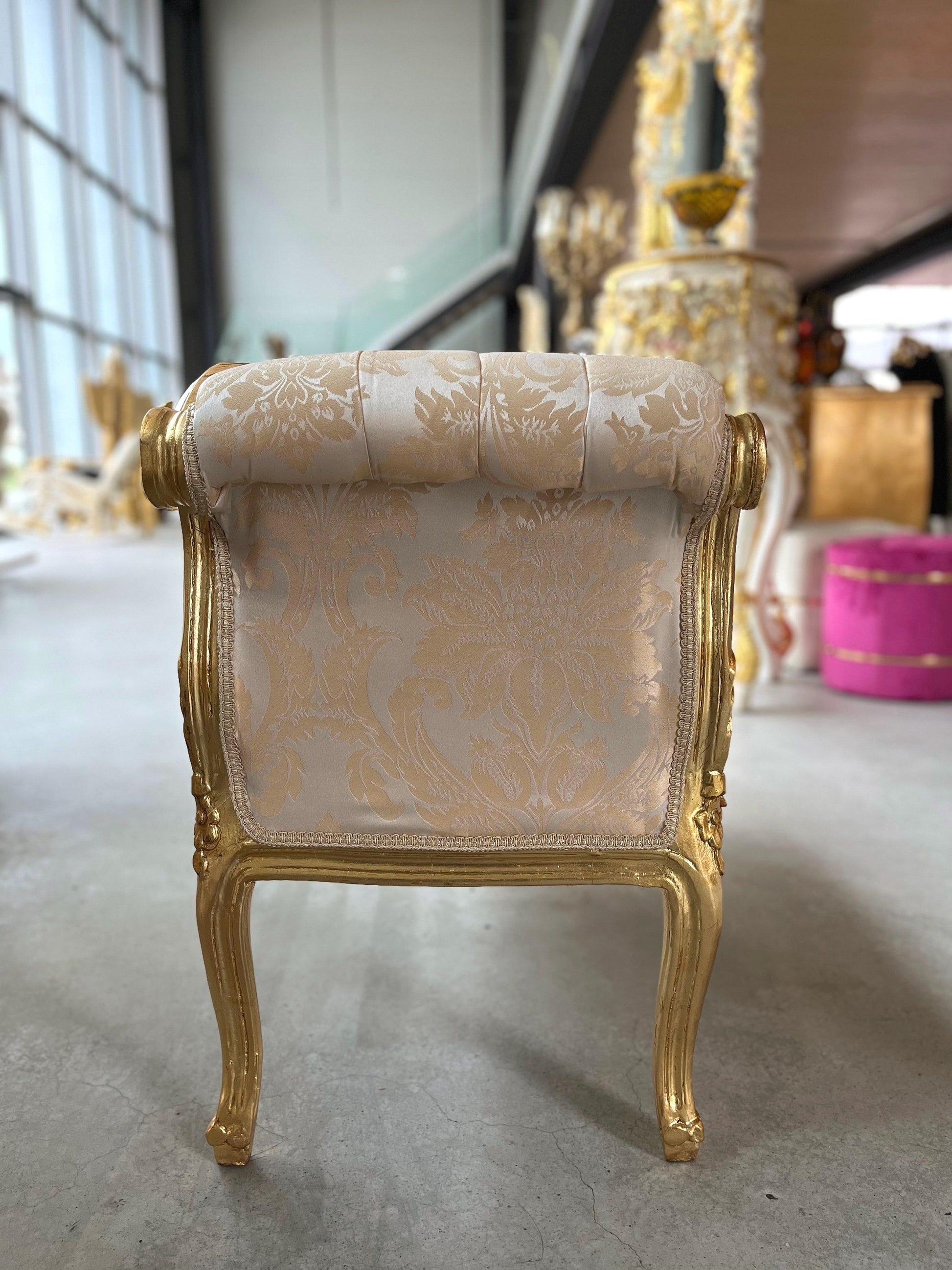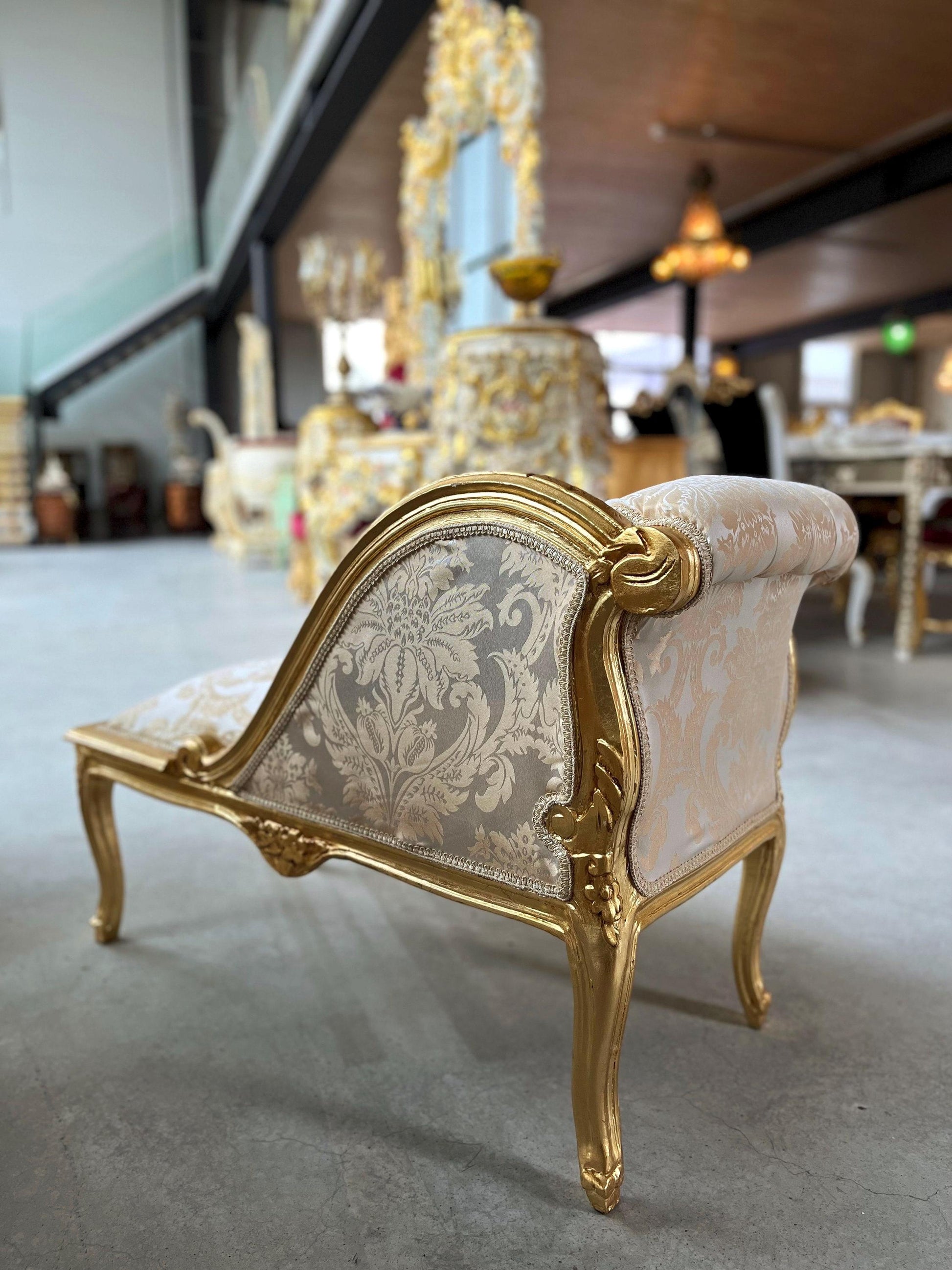 Bench French Louis Style Small Chaise Longue Shiny Ivory Retro Baroque Style Ottoman for Home Decor Ottoman Footstool in Gold Finish