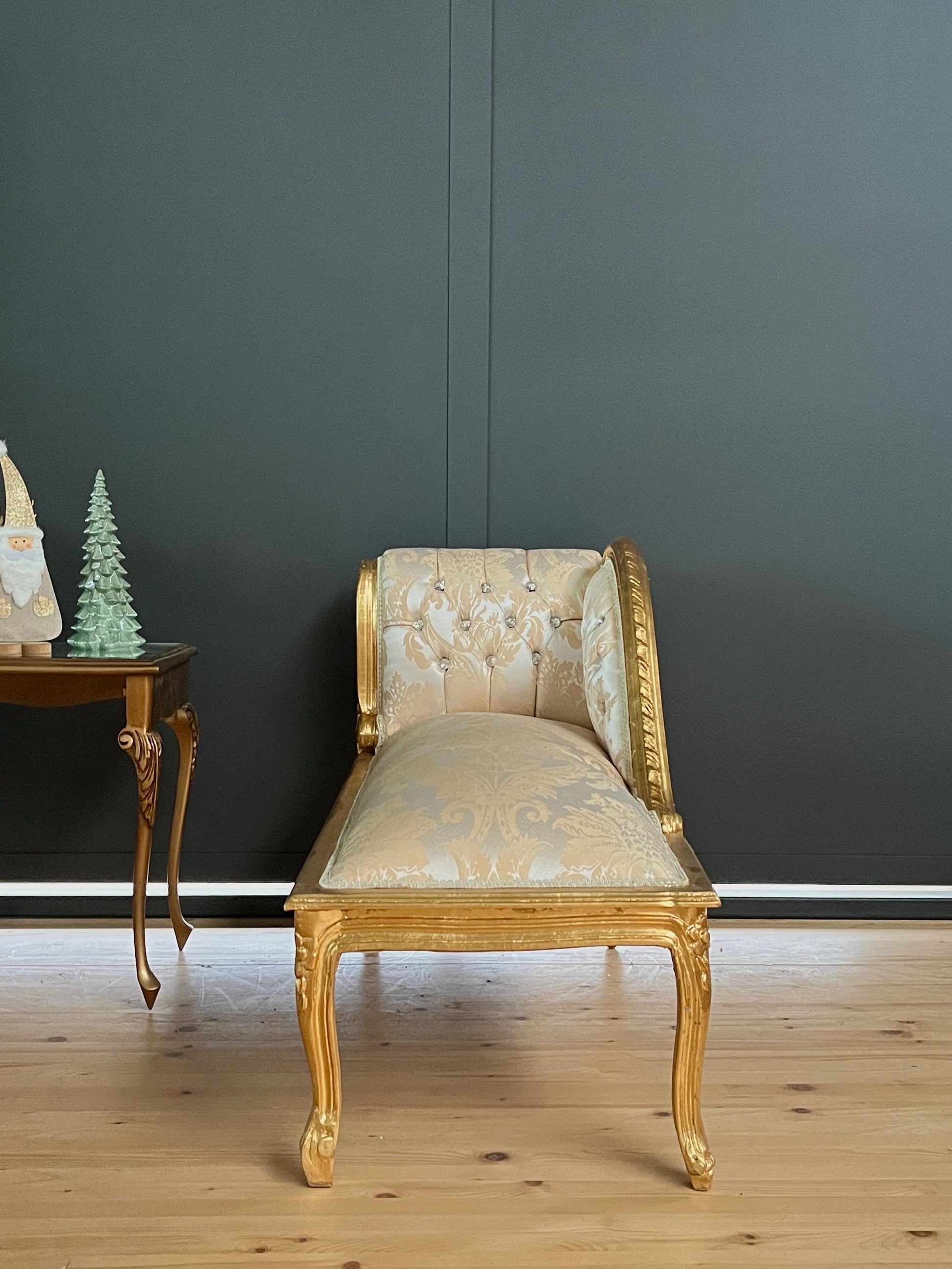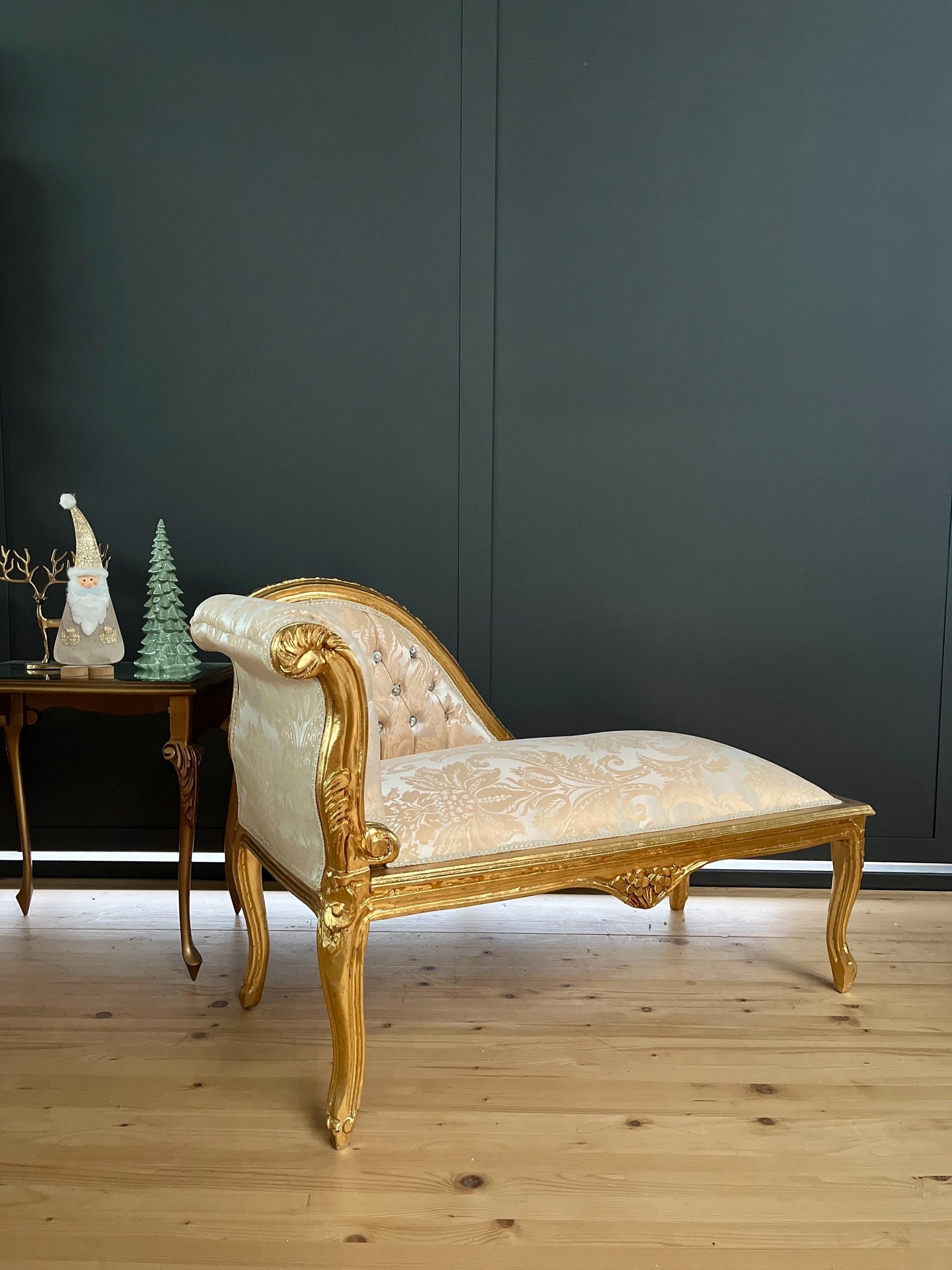 A French Louis small chaise longue in baroque style reproduction. It can be set as a bed bench or at entry porch settee. Absolutely enrich your elegant bedroom 💯