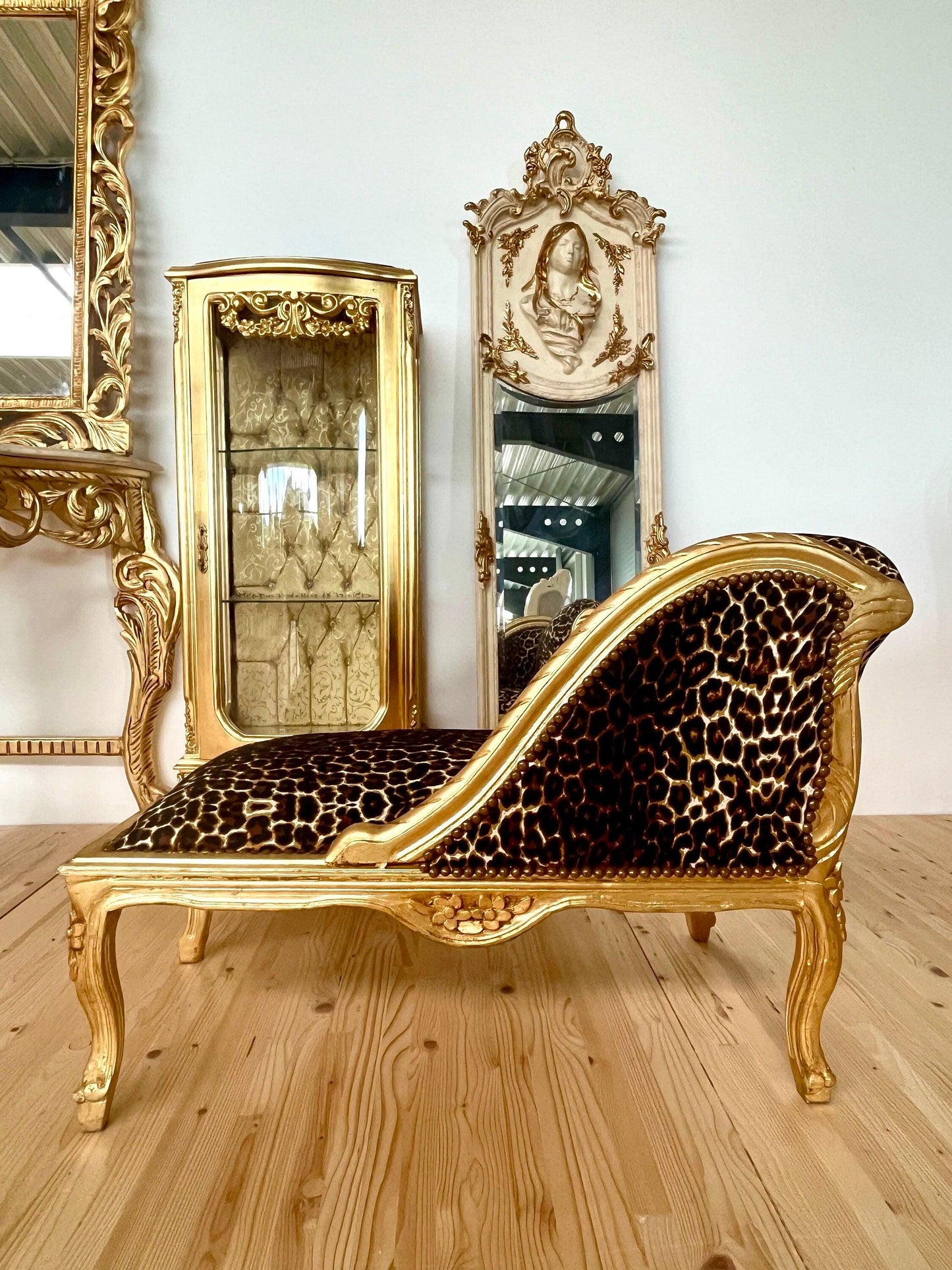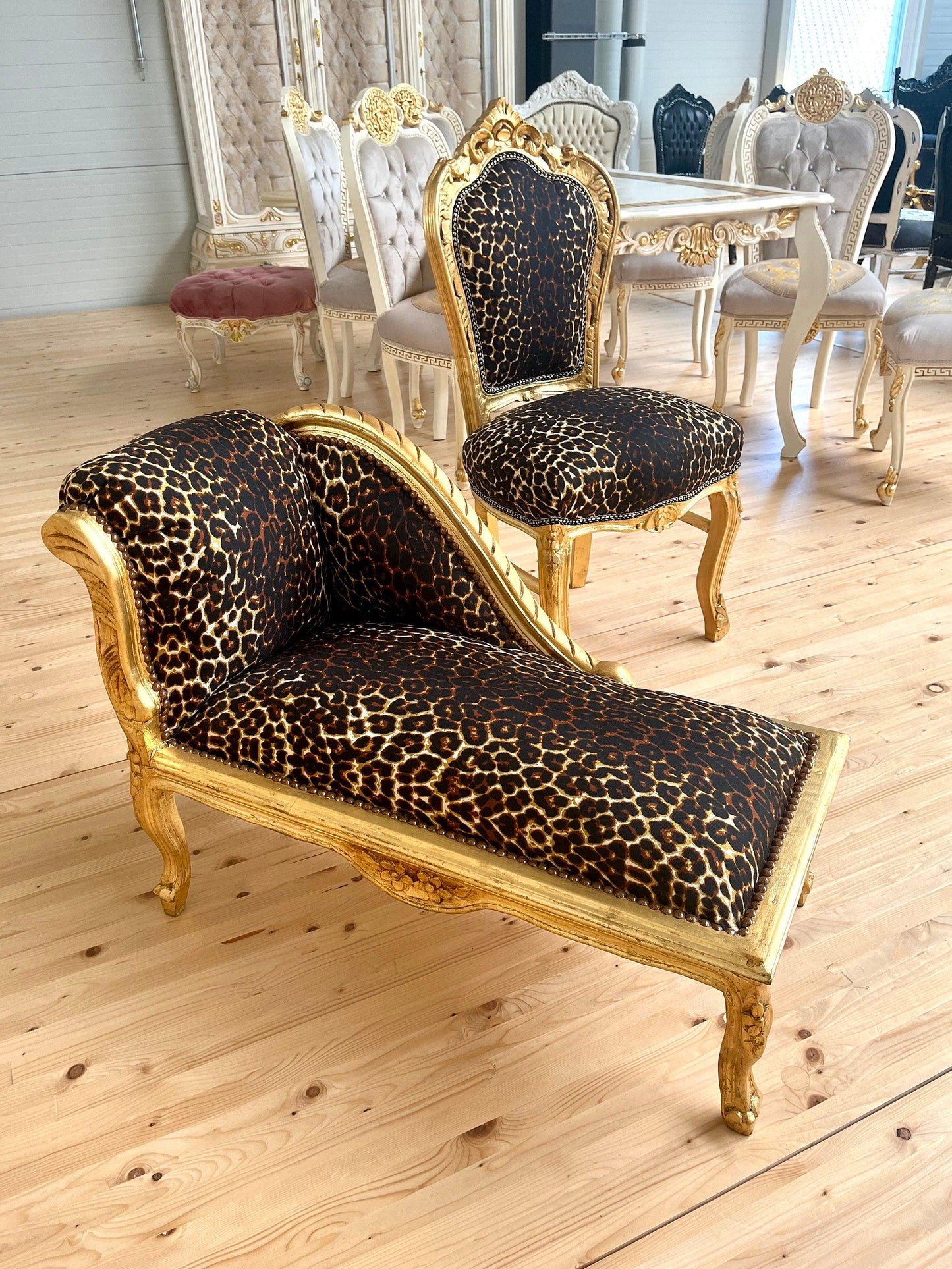Leopard Print French Louis Bench: Baroque Style Gold Leaf Ottoman