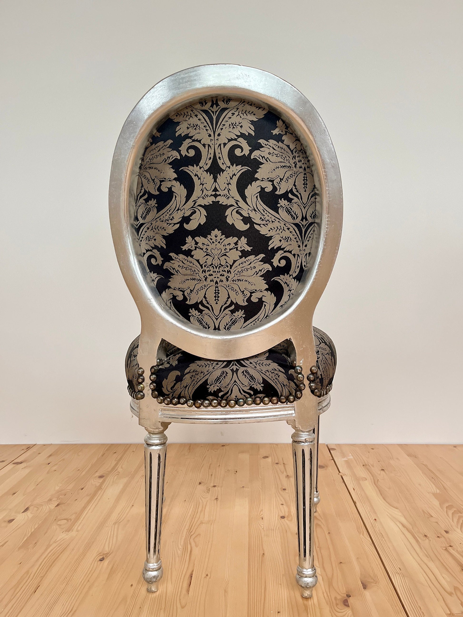 Handcrafted in solid wood, upholstered with 100% polyester jacquard fabric and nails firmed at edge to have a retro look. Our baroque style chairs offer a decent retro look.