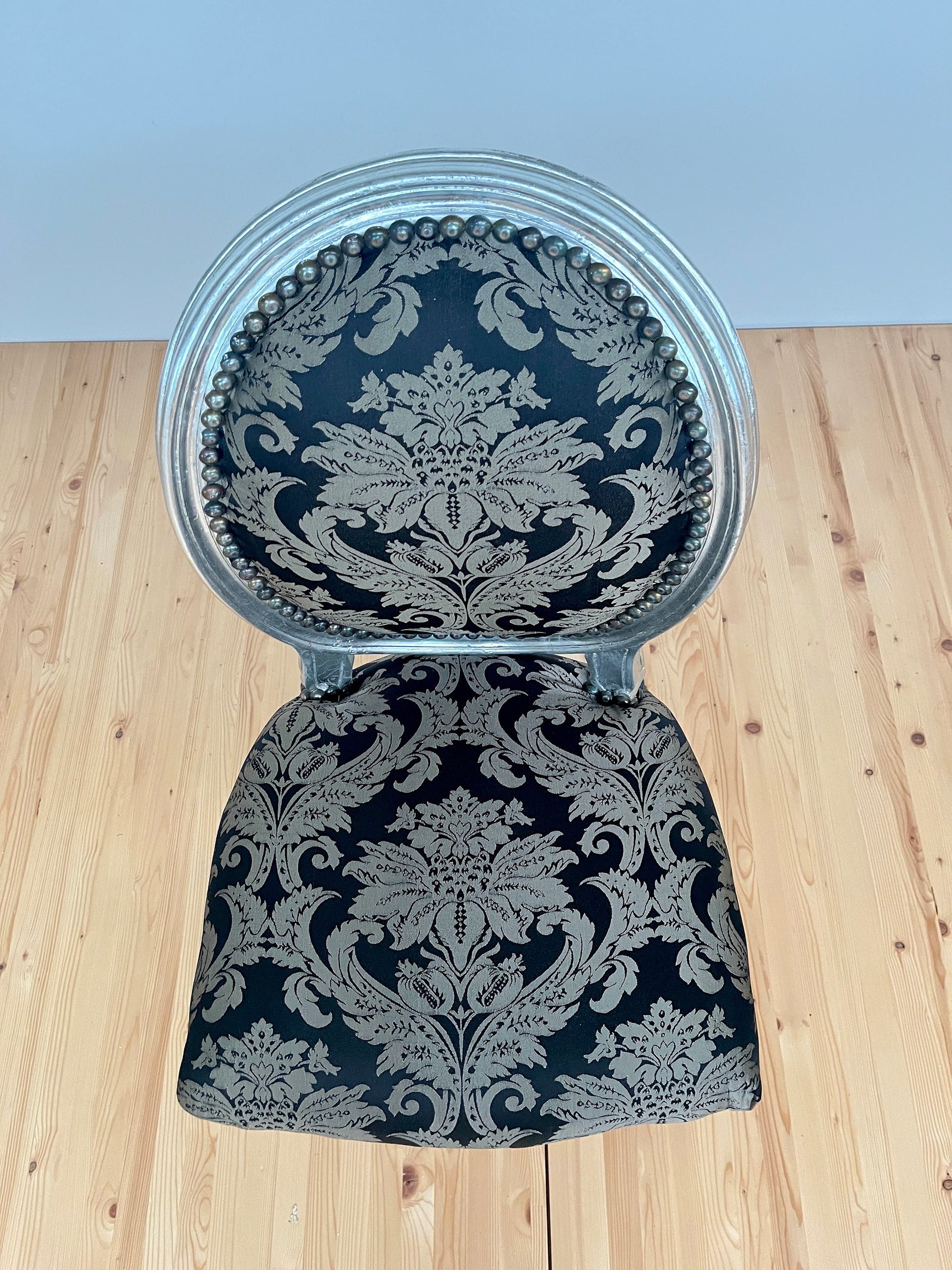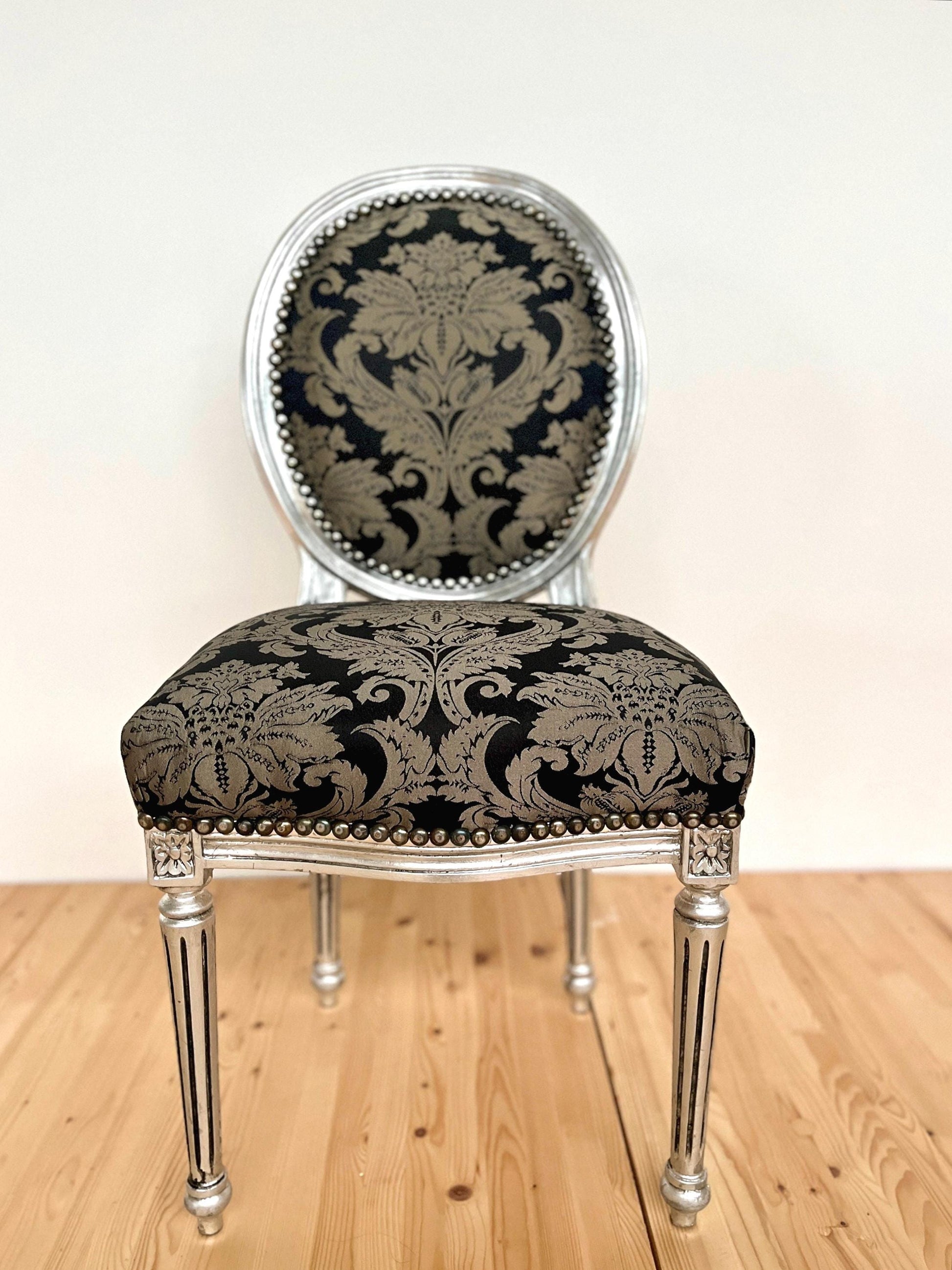 Chair Classic Baroque Style in Silver Black Pattern Dining Chair in Silver Finish for Home Decor