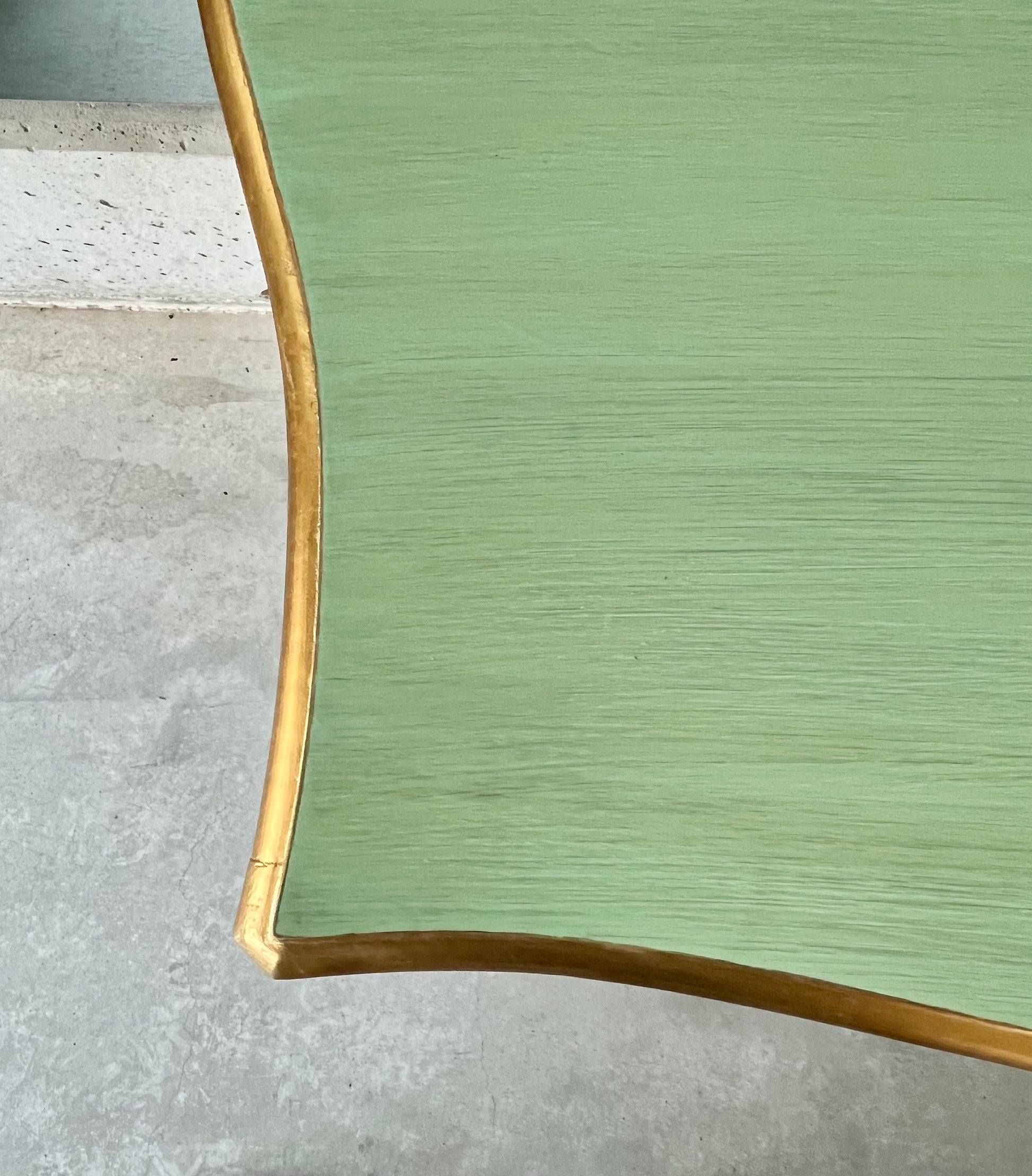 Deluxe wooden chest of drawer in light green and pink. This retro style is from French Louis XVI reproduction with bronze ornament and two drawers.