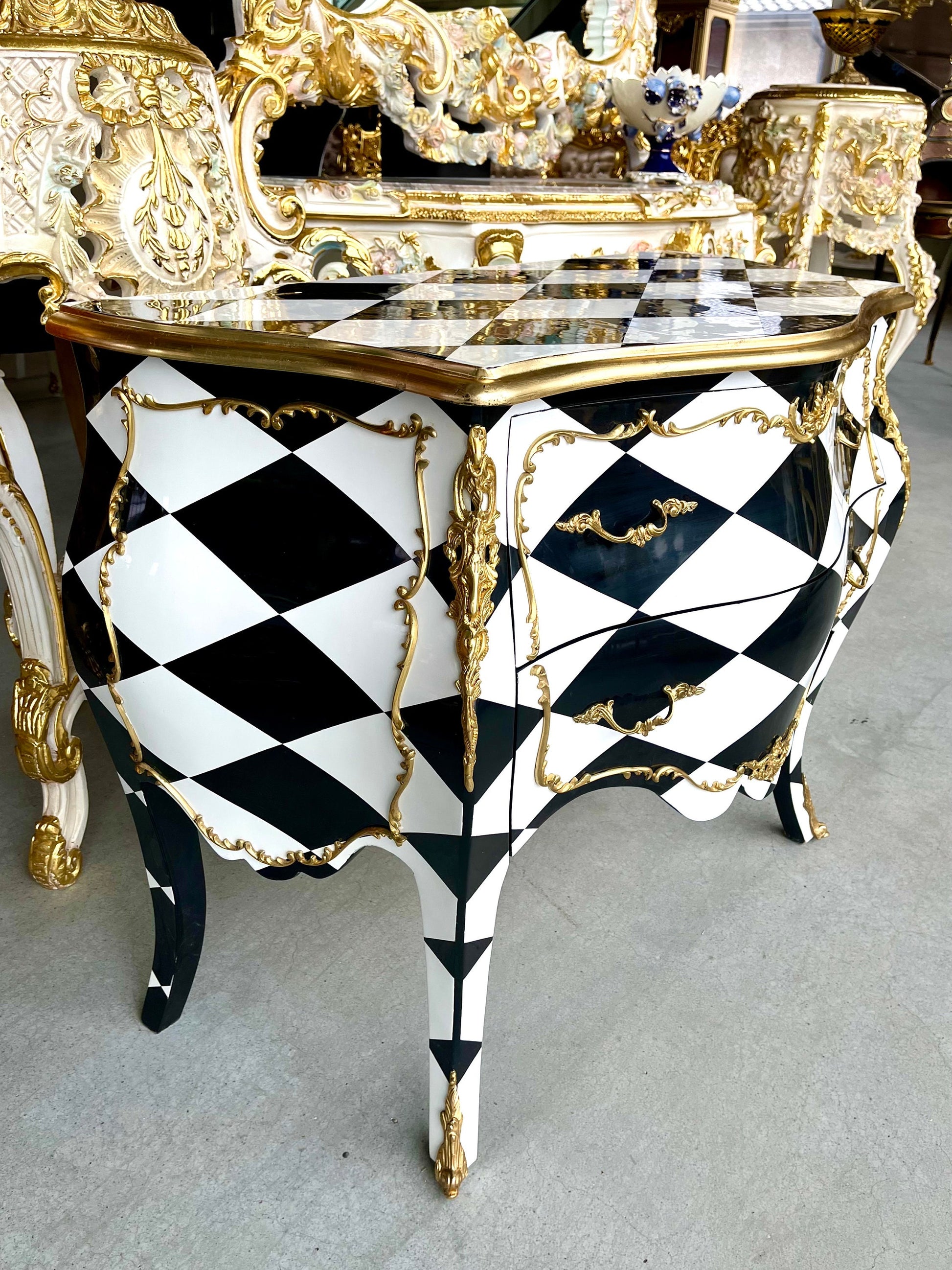 Chest of Drawer Middle Size French Louis Style in Black Diamond Print Retro Baroque Style Cabinet Inlaid 3 Drawer With Bronze Ornaments