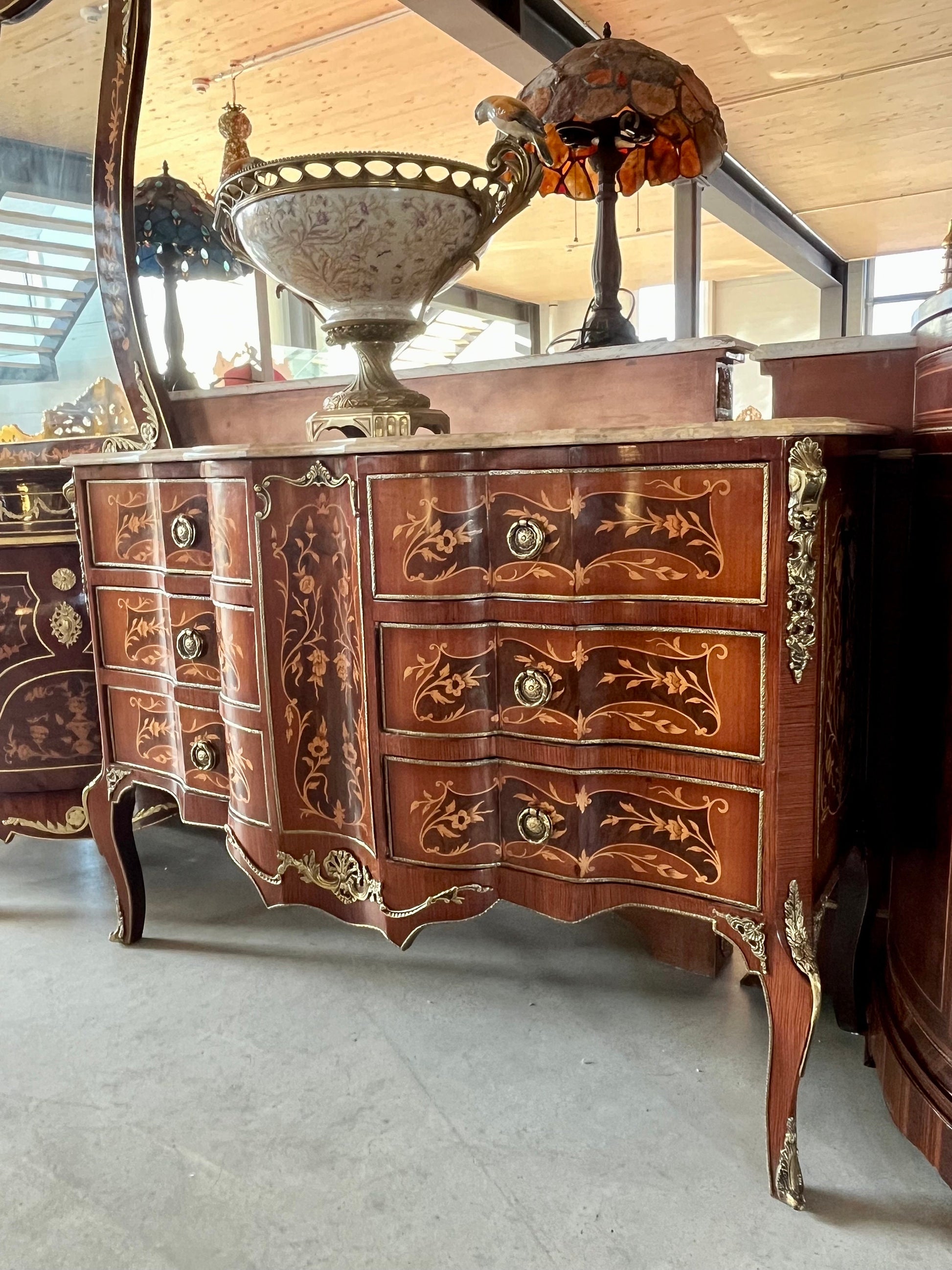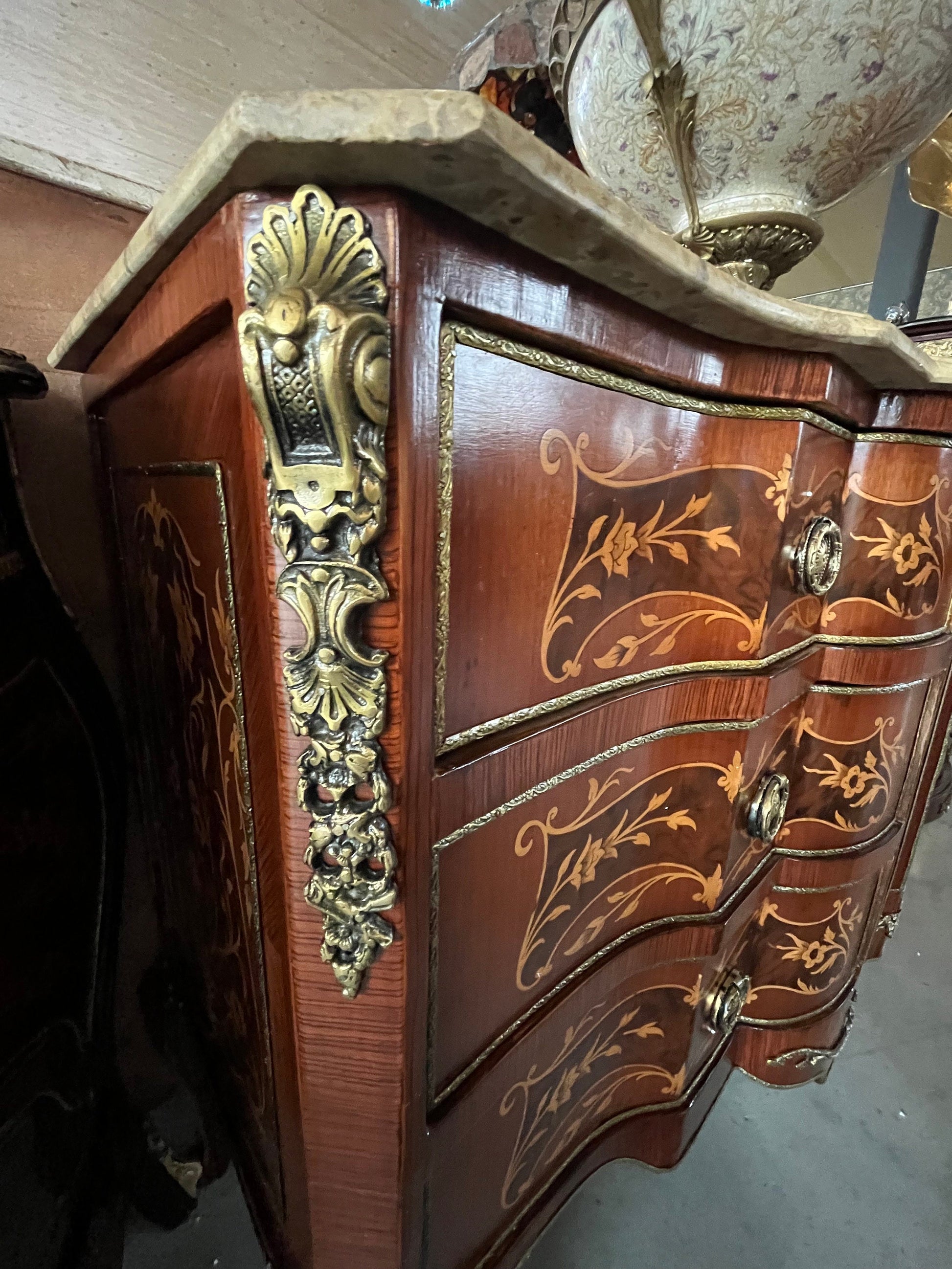 Chest of Drawer Nostalgic French Baroque Style Wooden Cabinet with Marble at Top Antique Style Reproduction for Stylish Home Decor- Limited