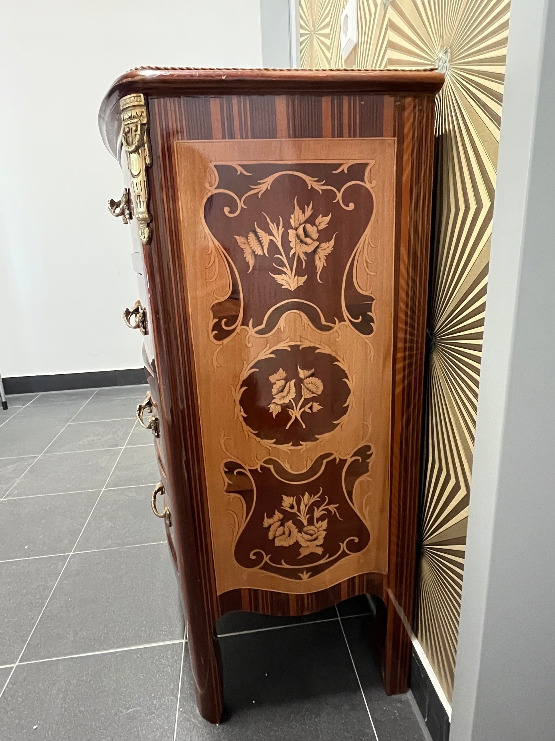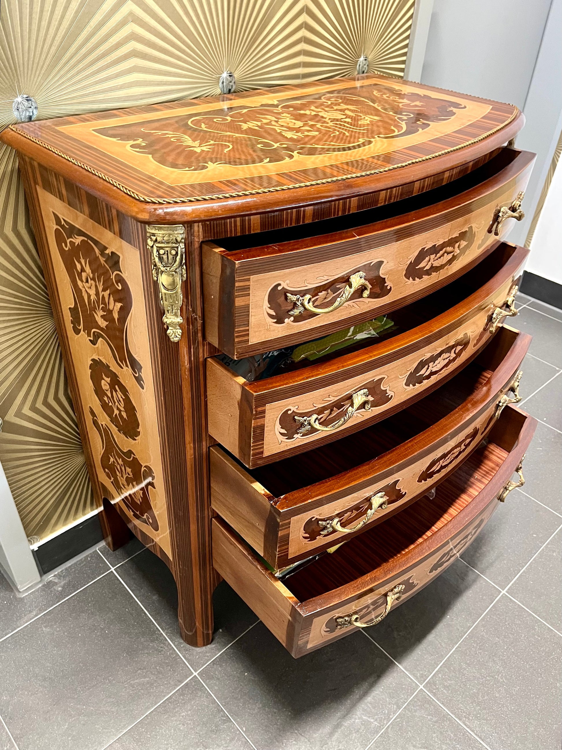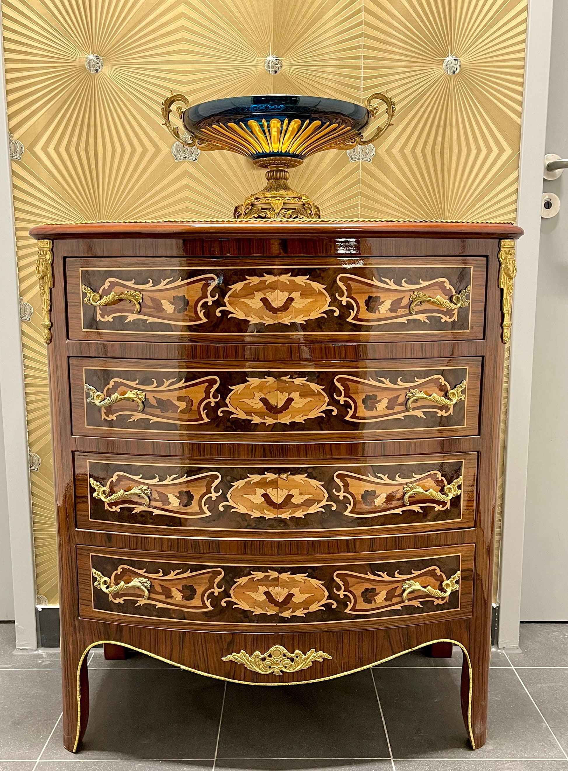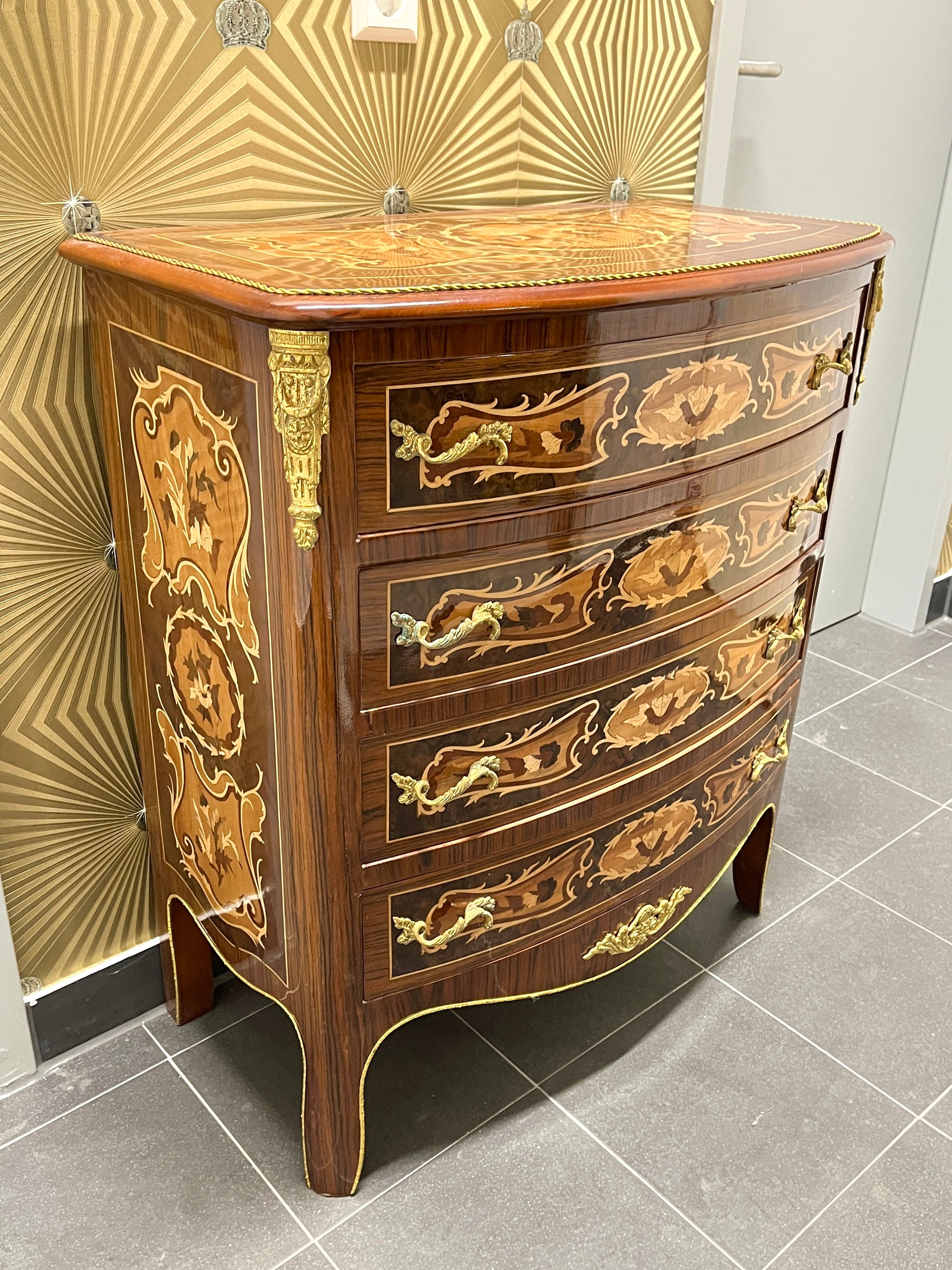 Classic chest of drawer inlaid with 4 drawers. This beautiful style is from French Louis XVI in reproduction.