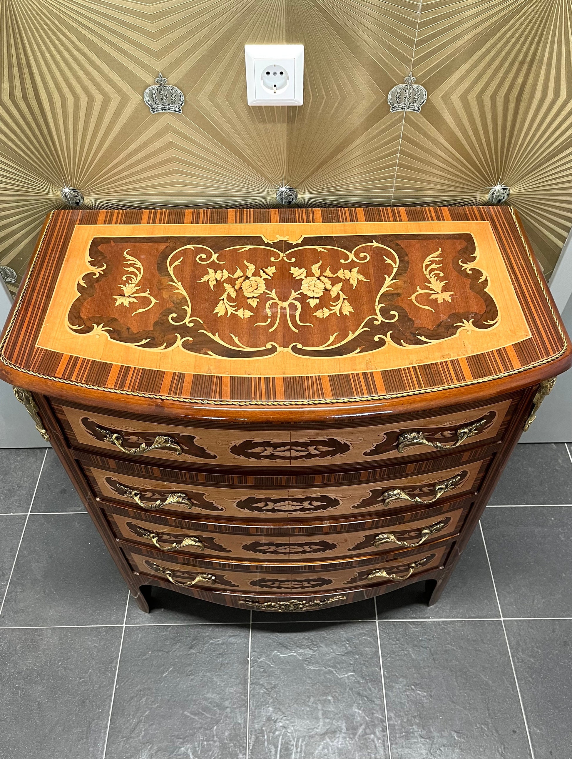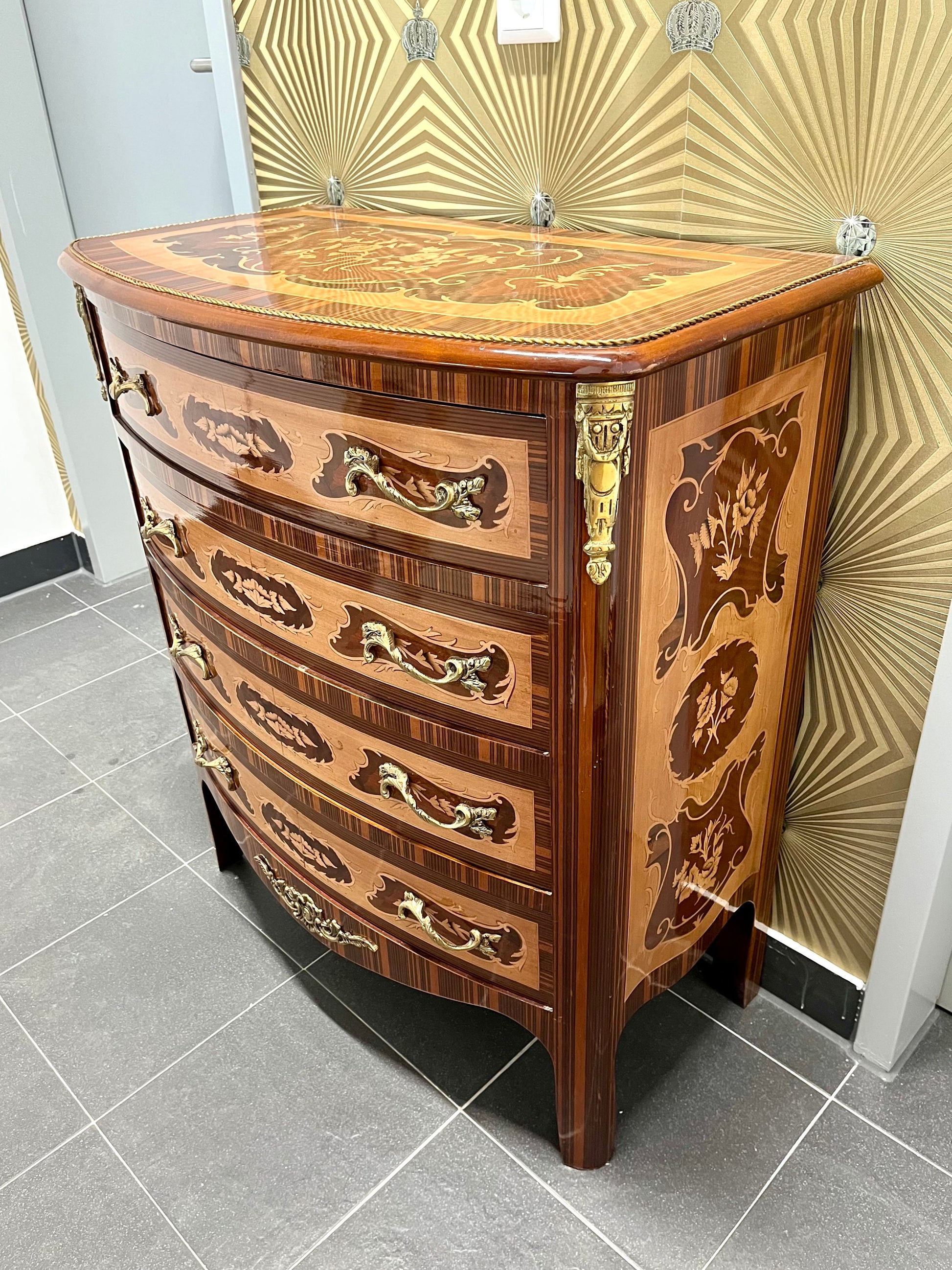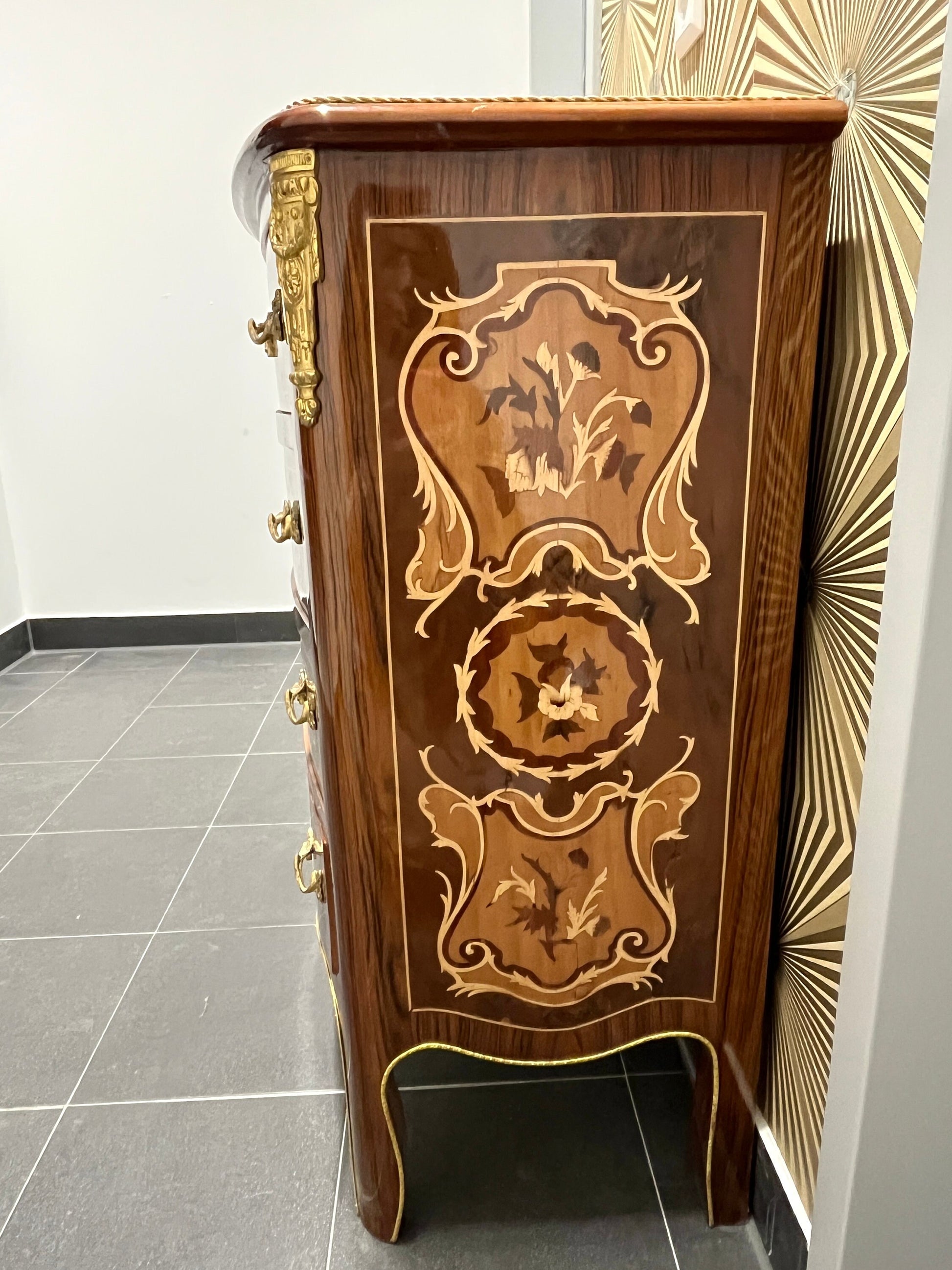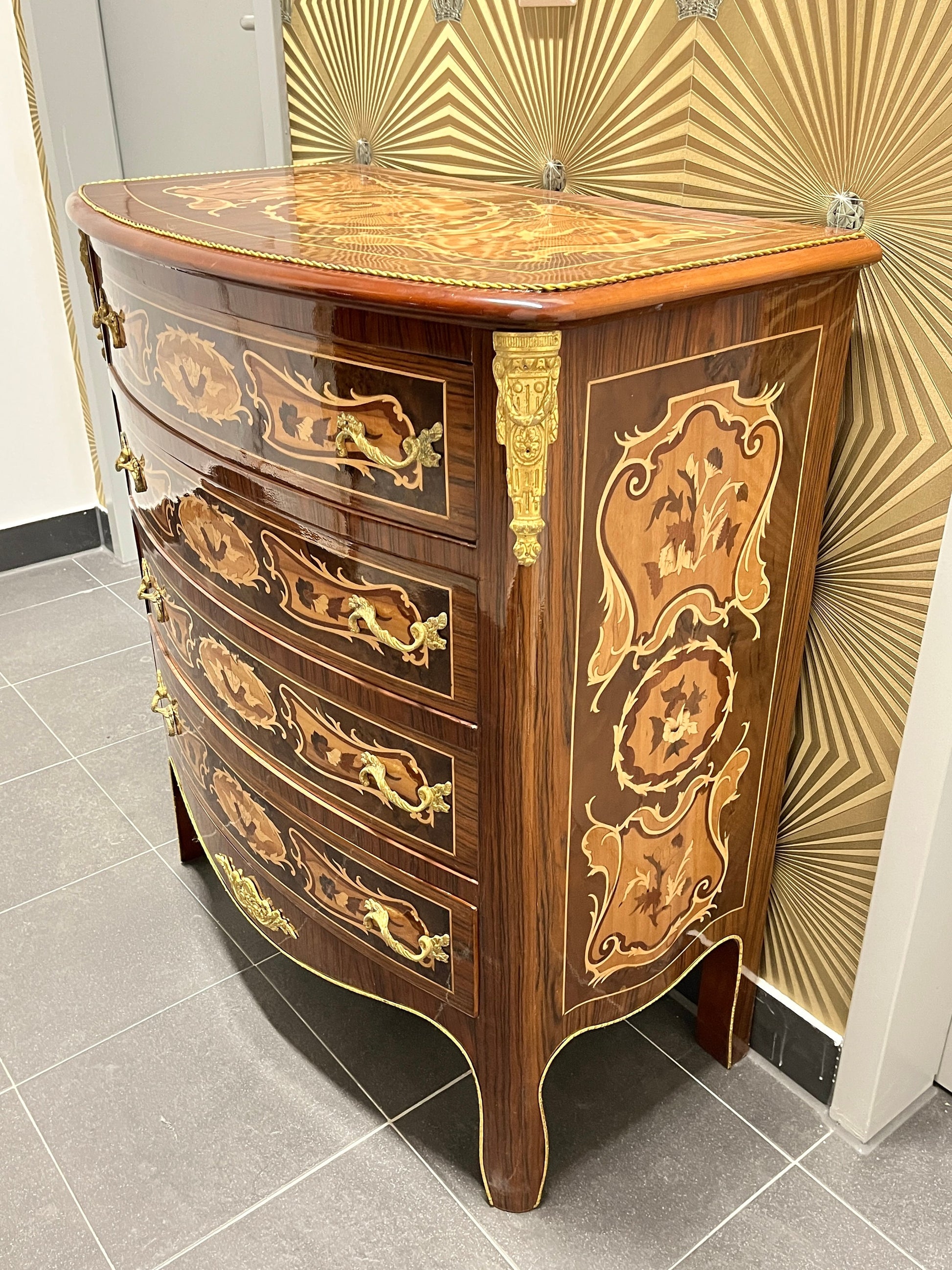Classic chest of drawer inlaid with 4 drawers. This beautiful style is from French Louis XVI in reproduction.