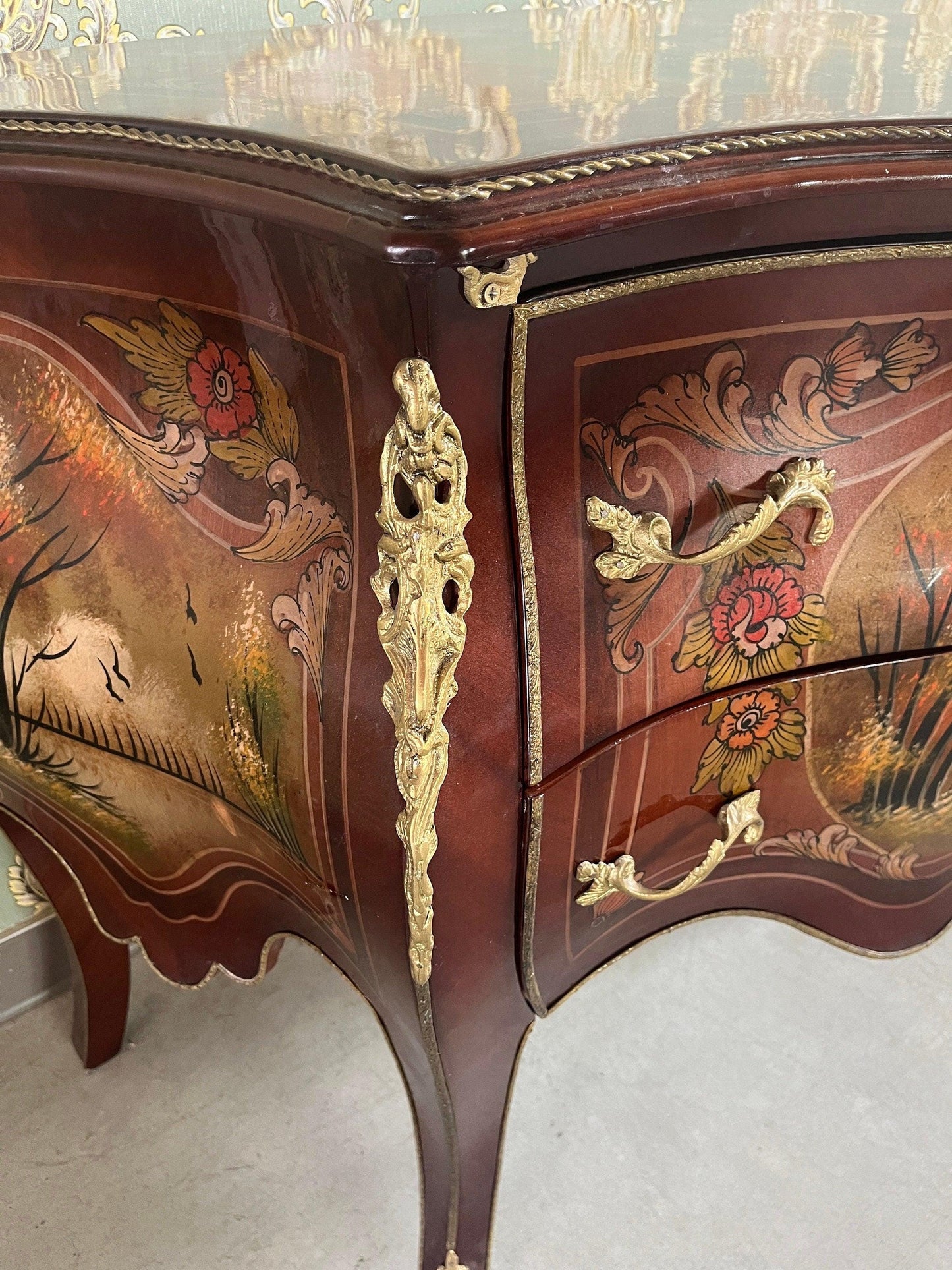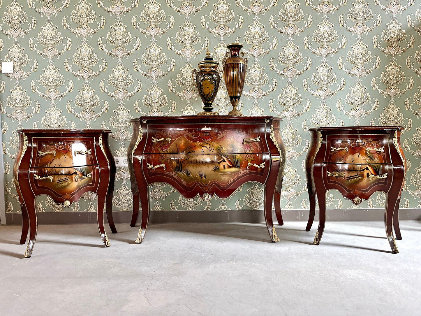 French Baroque Dresser & Nightstand Set: Hand-Painted Bedroom Furniture