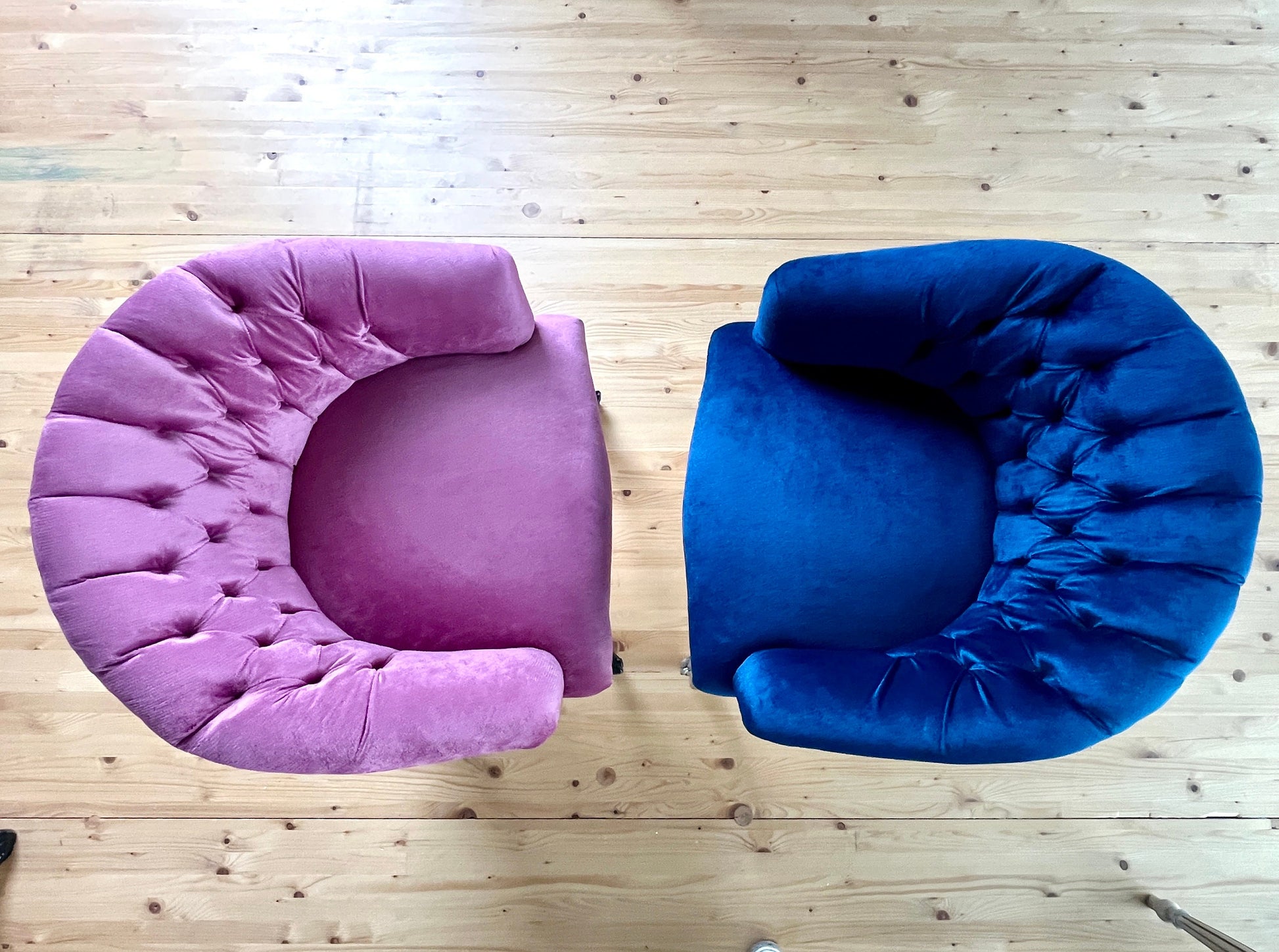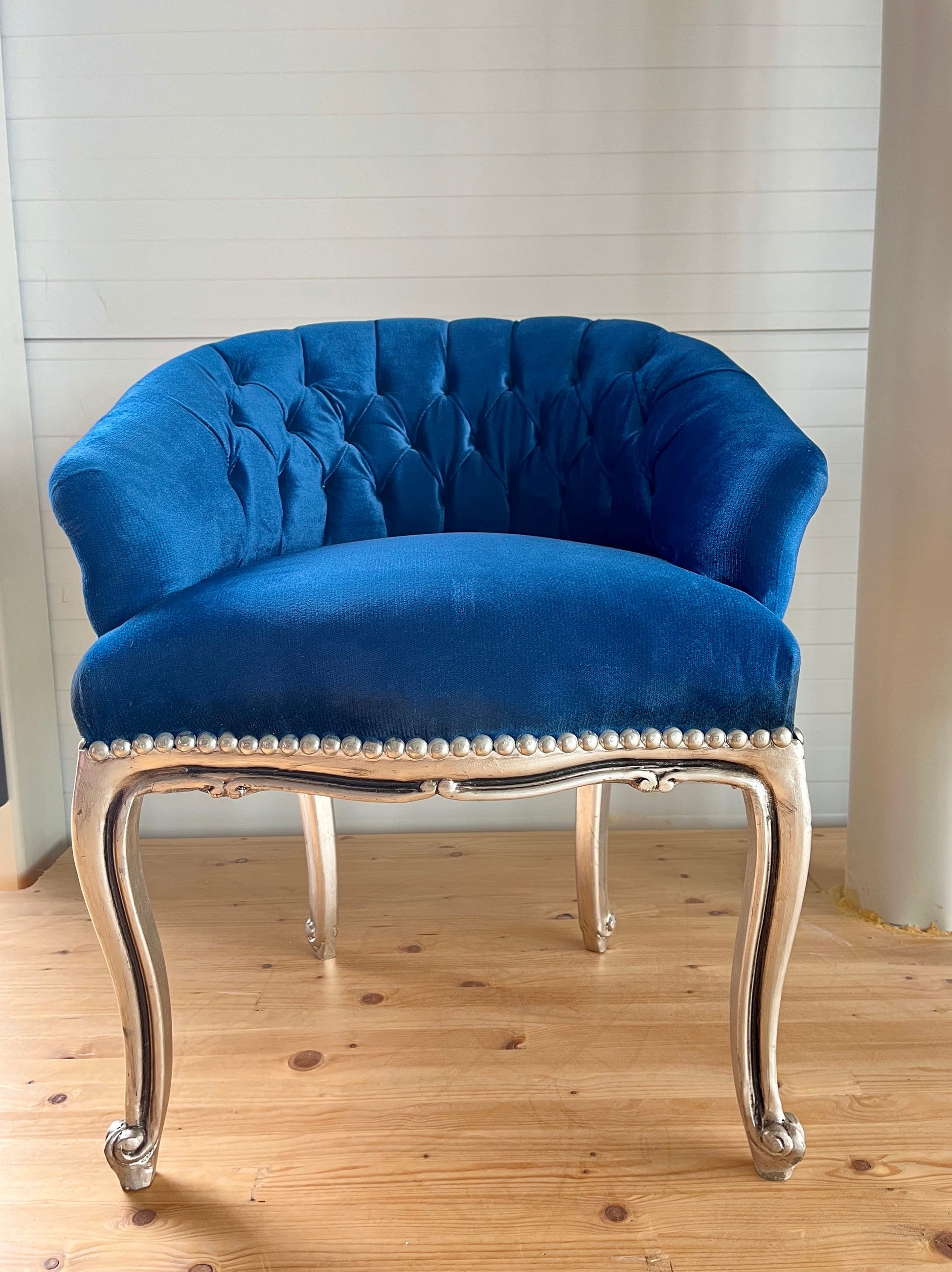 A gorgeous tufted velvet cocktail chair. Absolutely adorable !