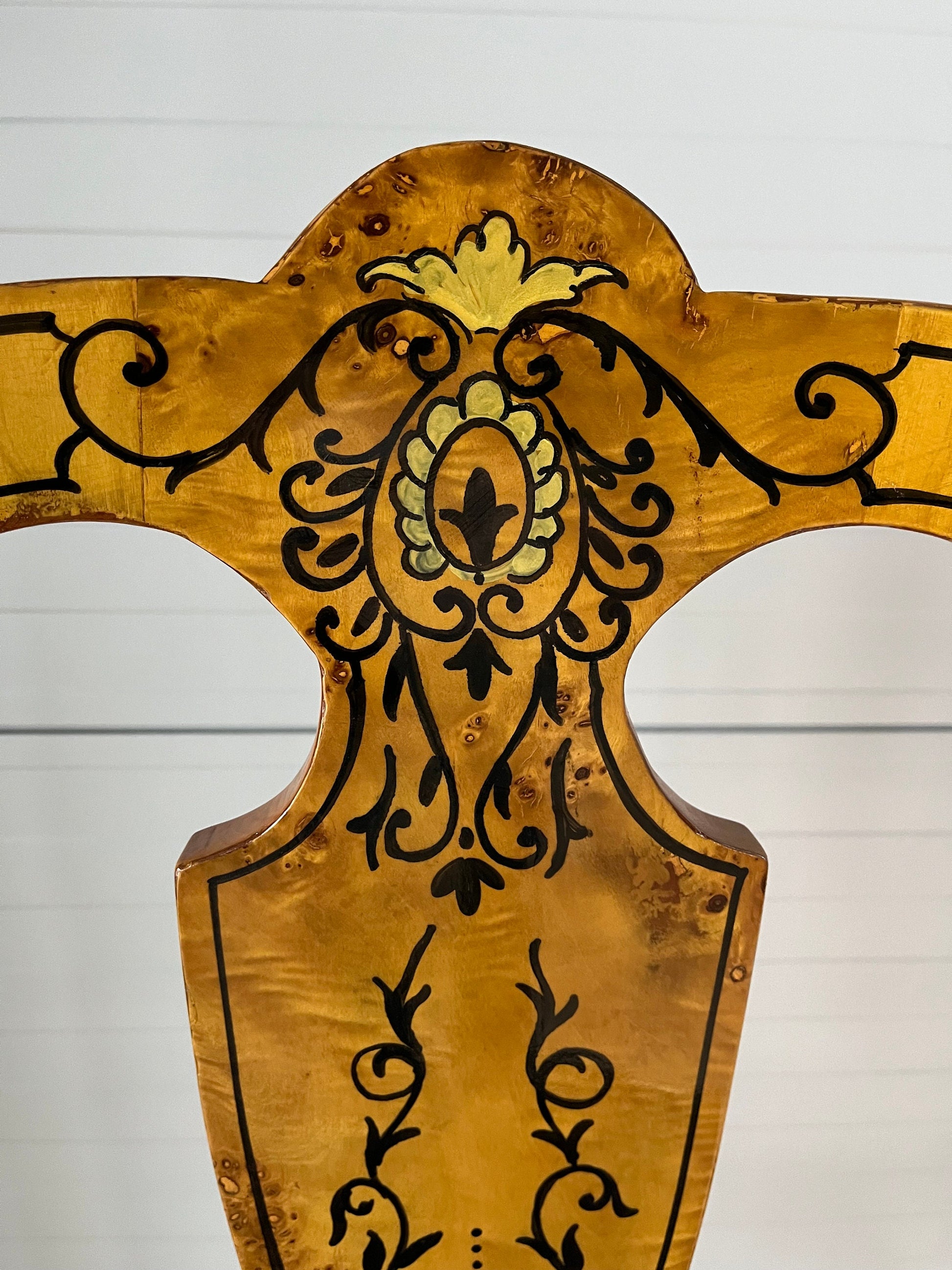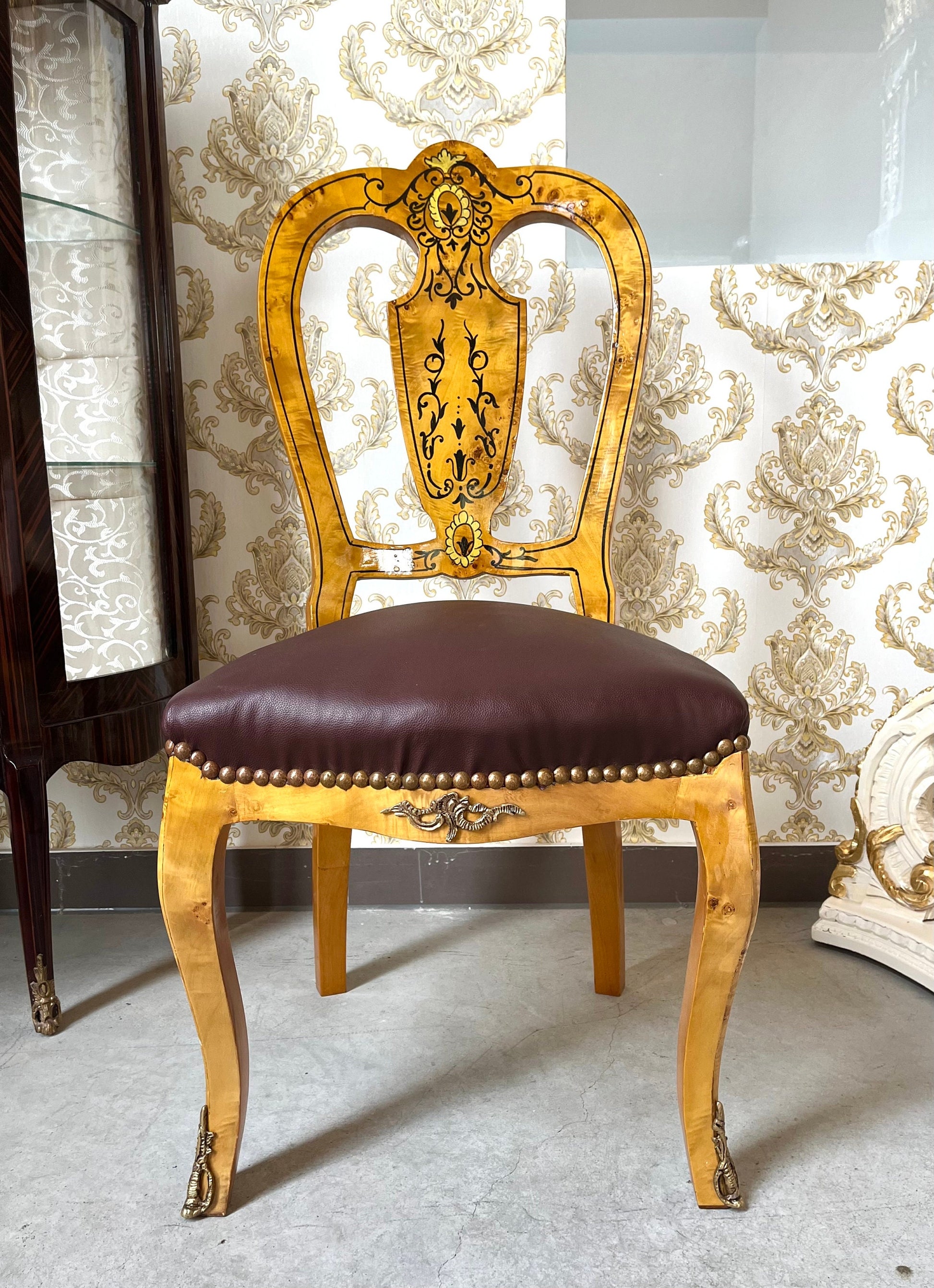 Dining Chair Retro Baroque Style Home Decor Chair in Yellow Frame & Brown Seat Italian Antique Style