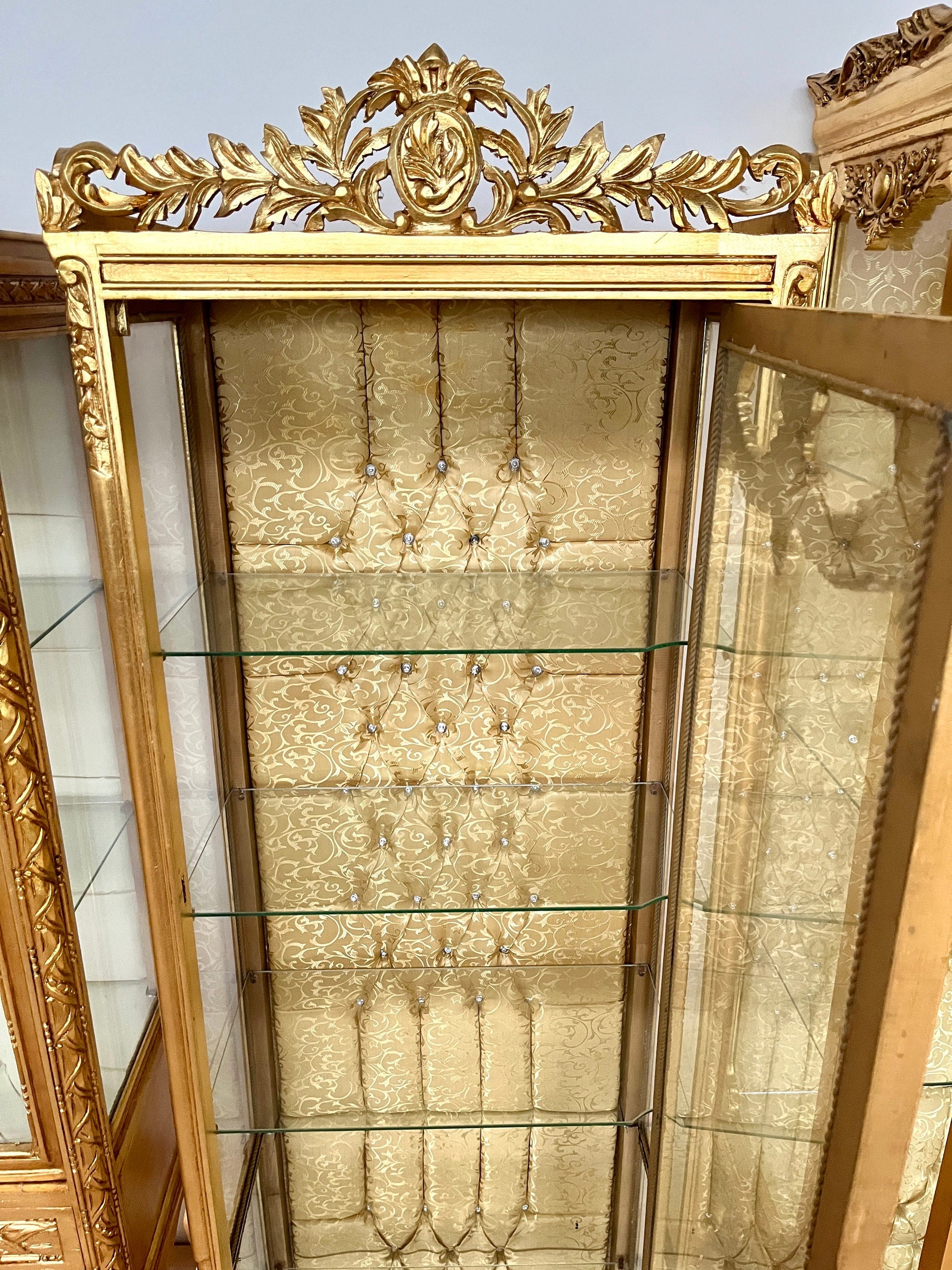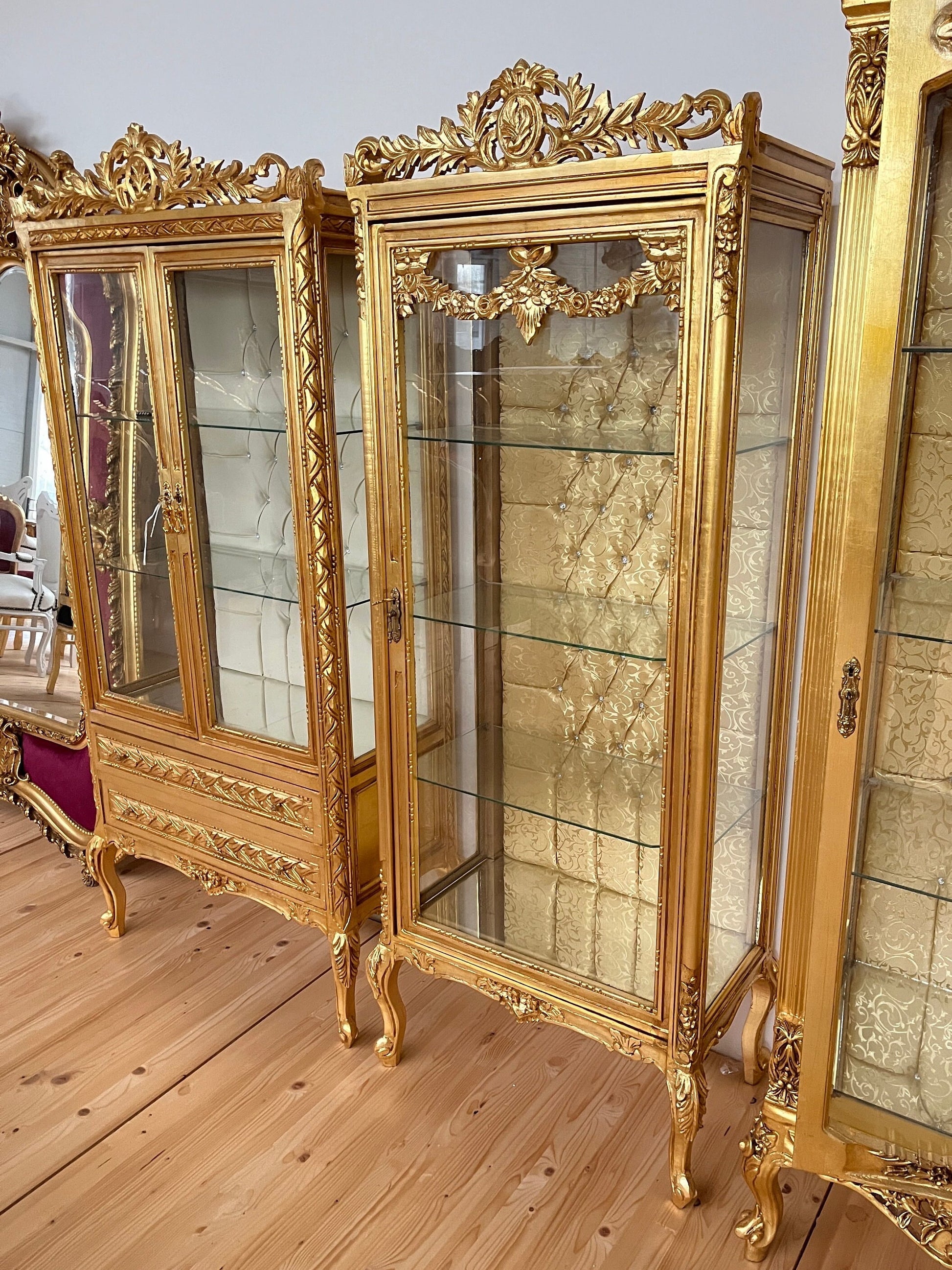 Display Cabinet French Louis XV Style Showcase Antique Style Reproduction in Gold Finish Retro Baroque Style Display Cabinet