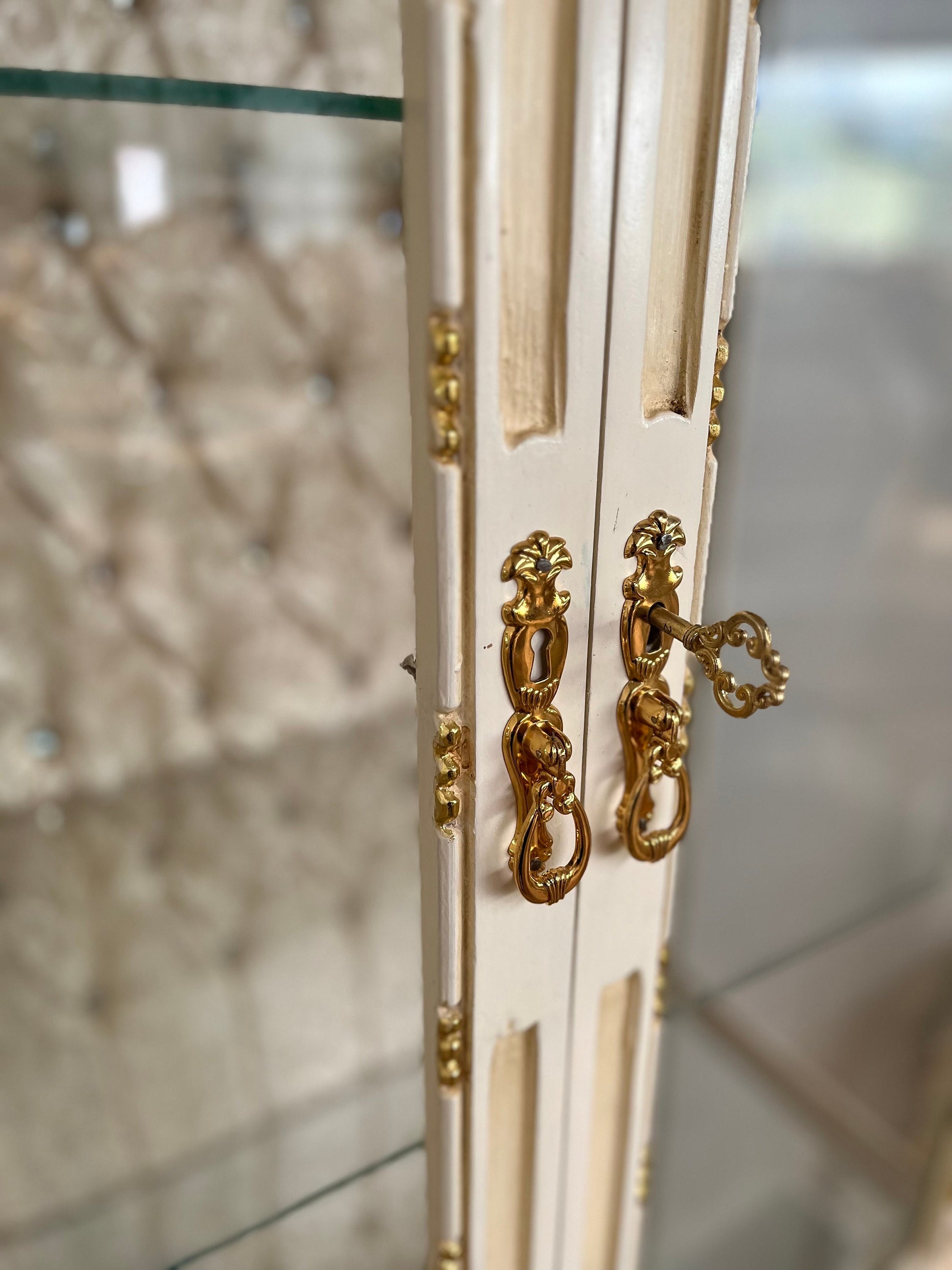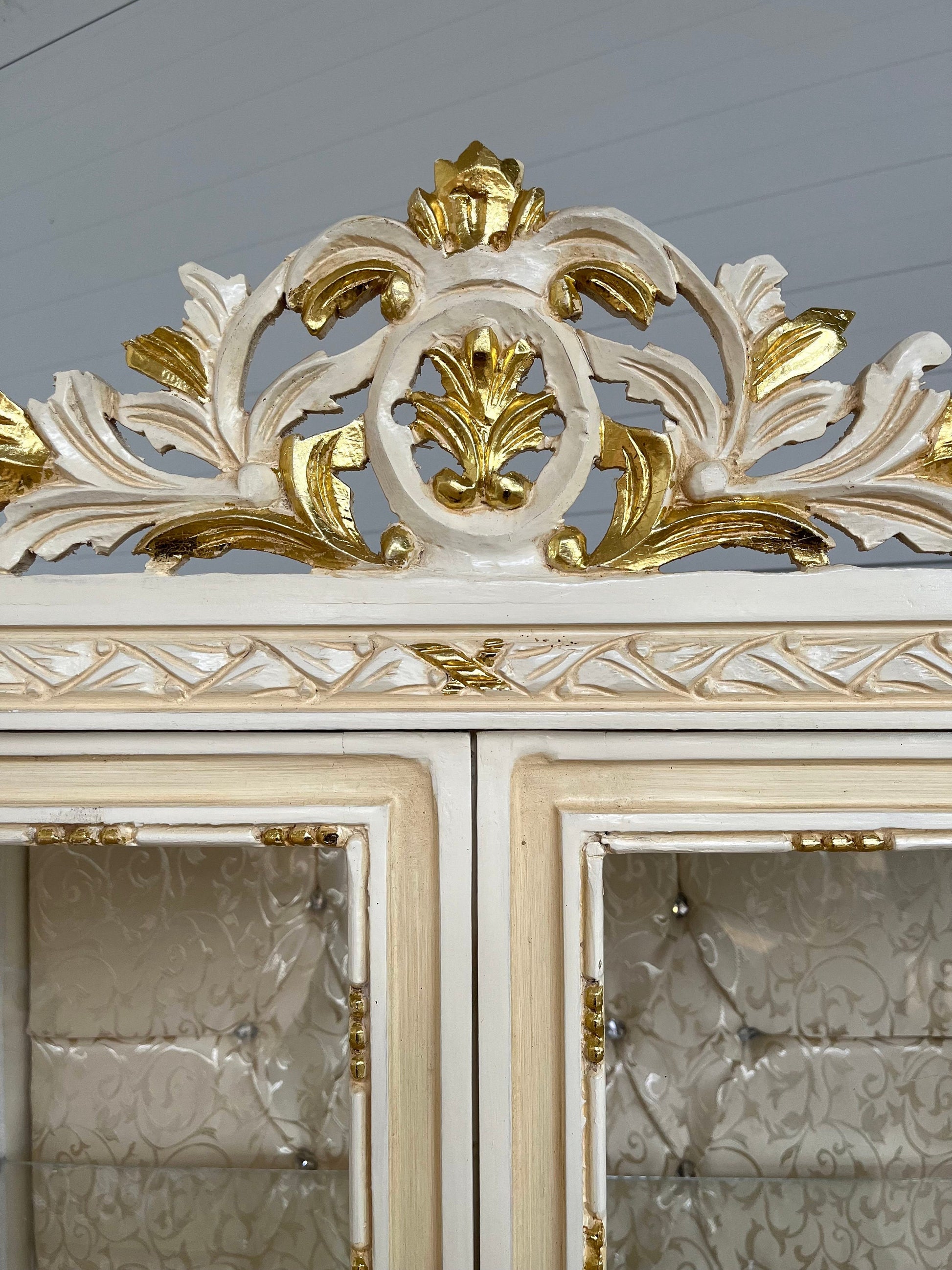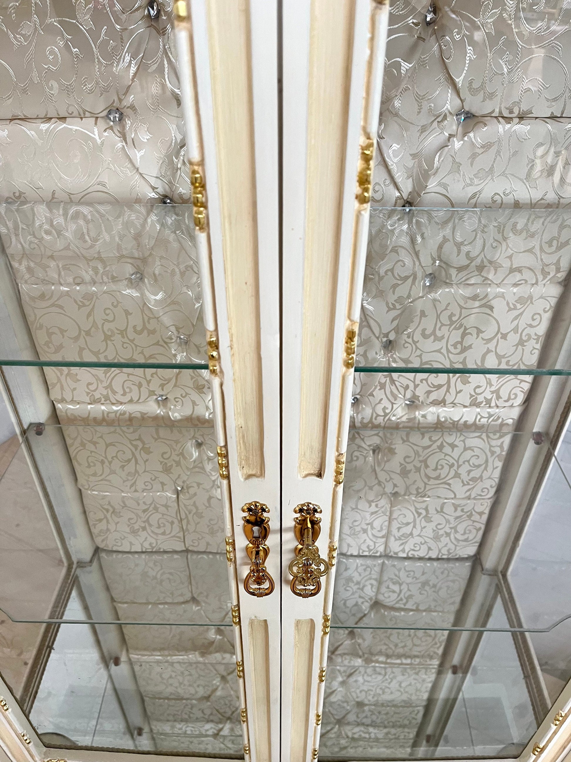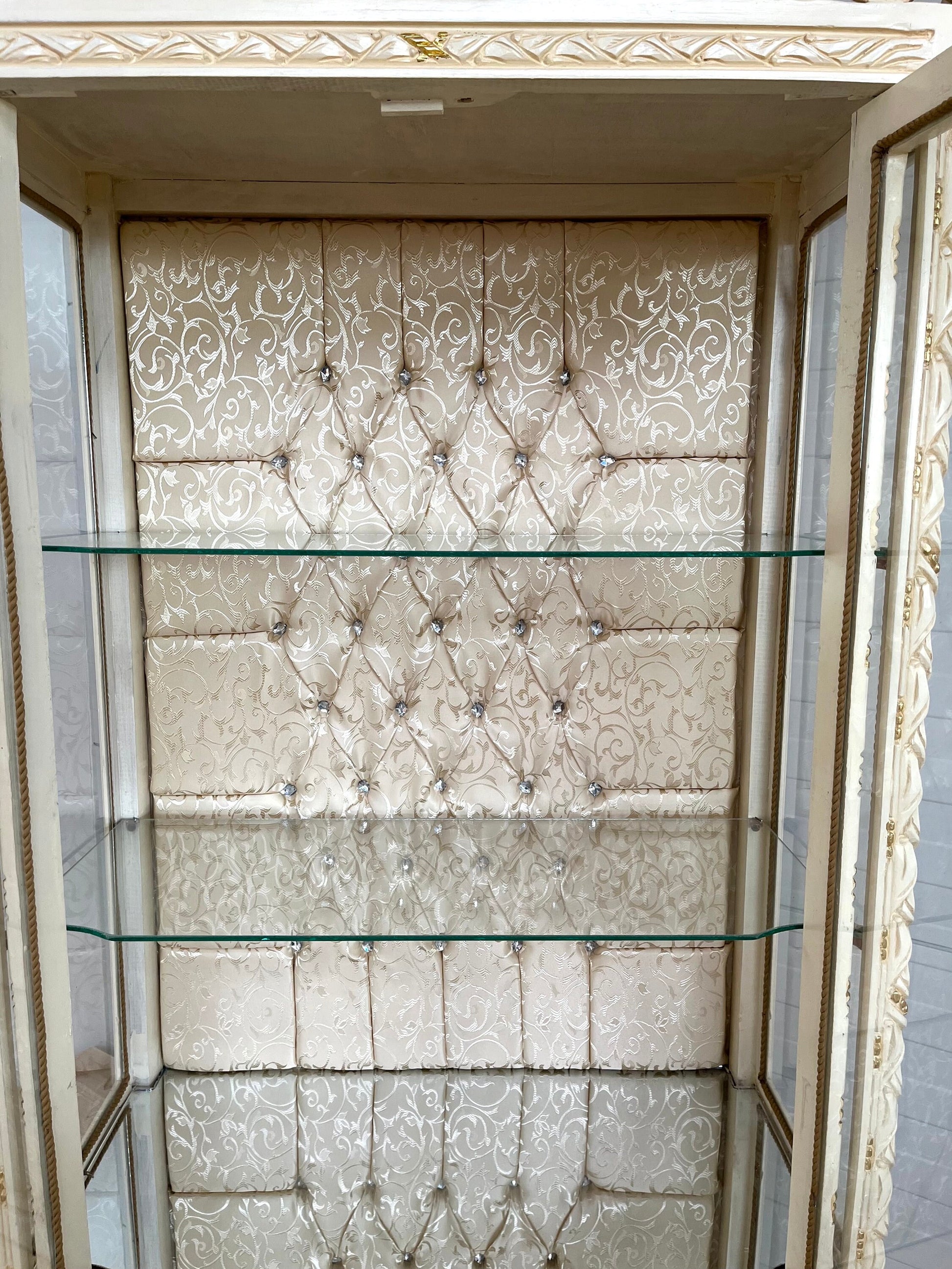 Display Cabinet Wooden French Louis Style Showcase Antique Baroque Style Reproduction in Beige Color