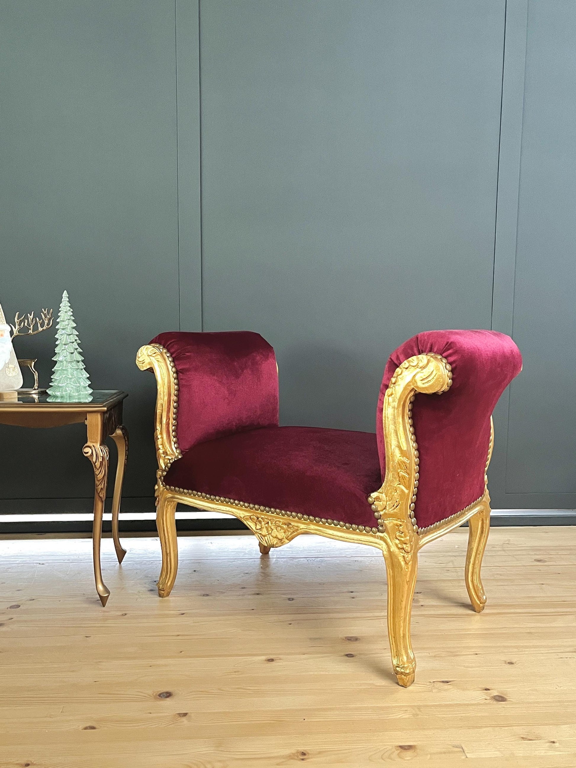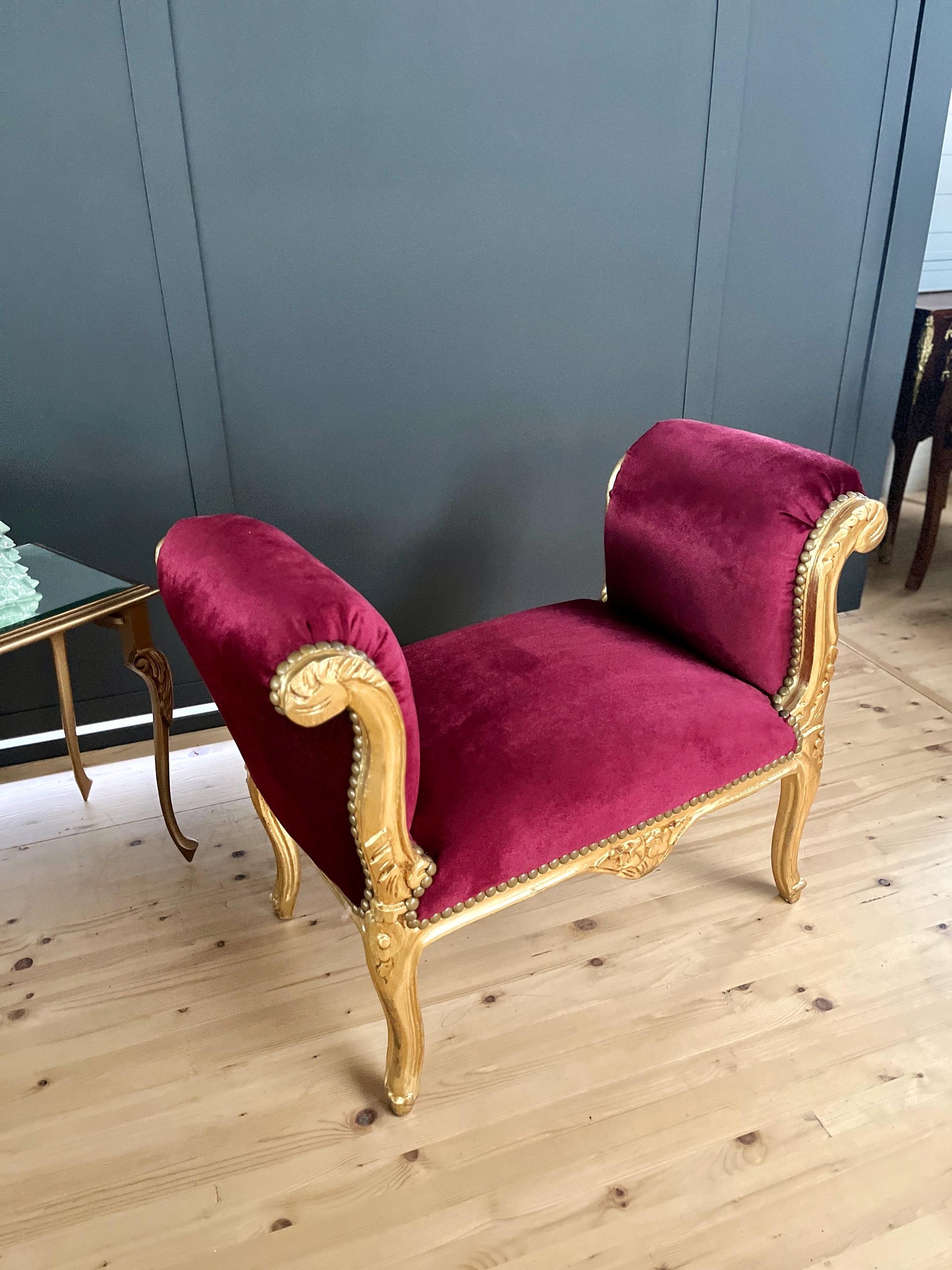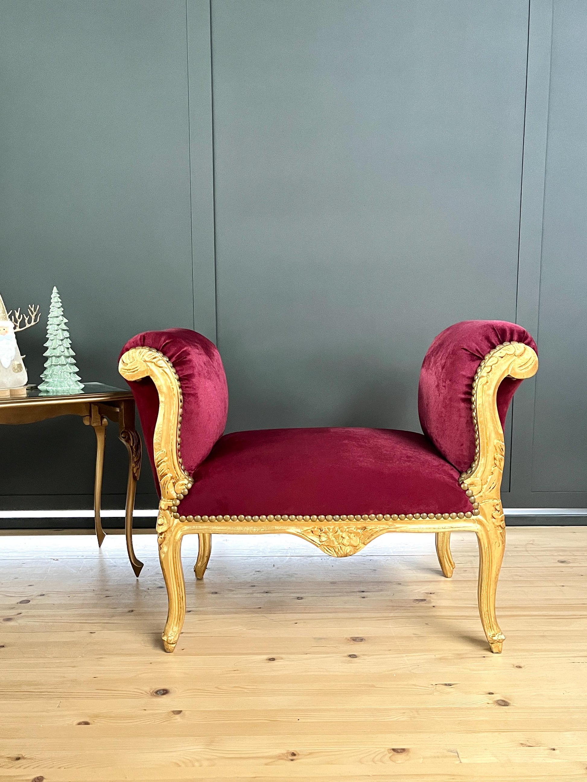 Französischer Barock-Ottoman Louis XVI/ French Louis XVI Baroque Ottoman - Gold Bordeaux