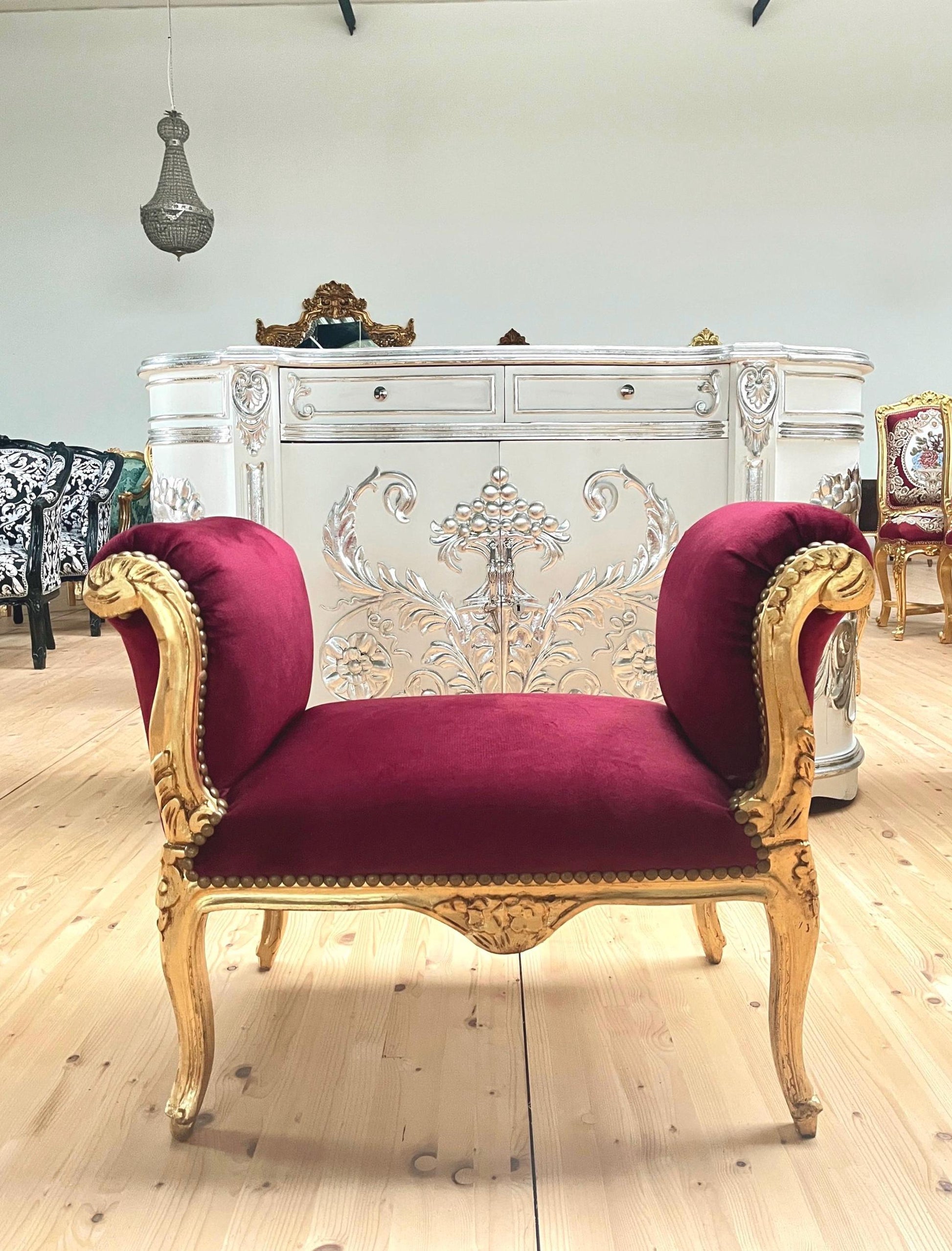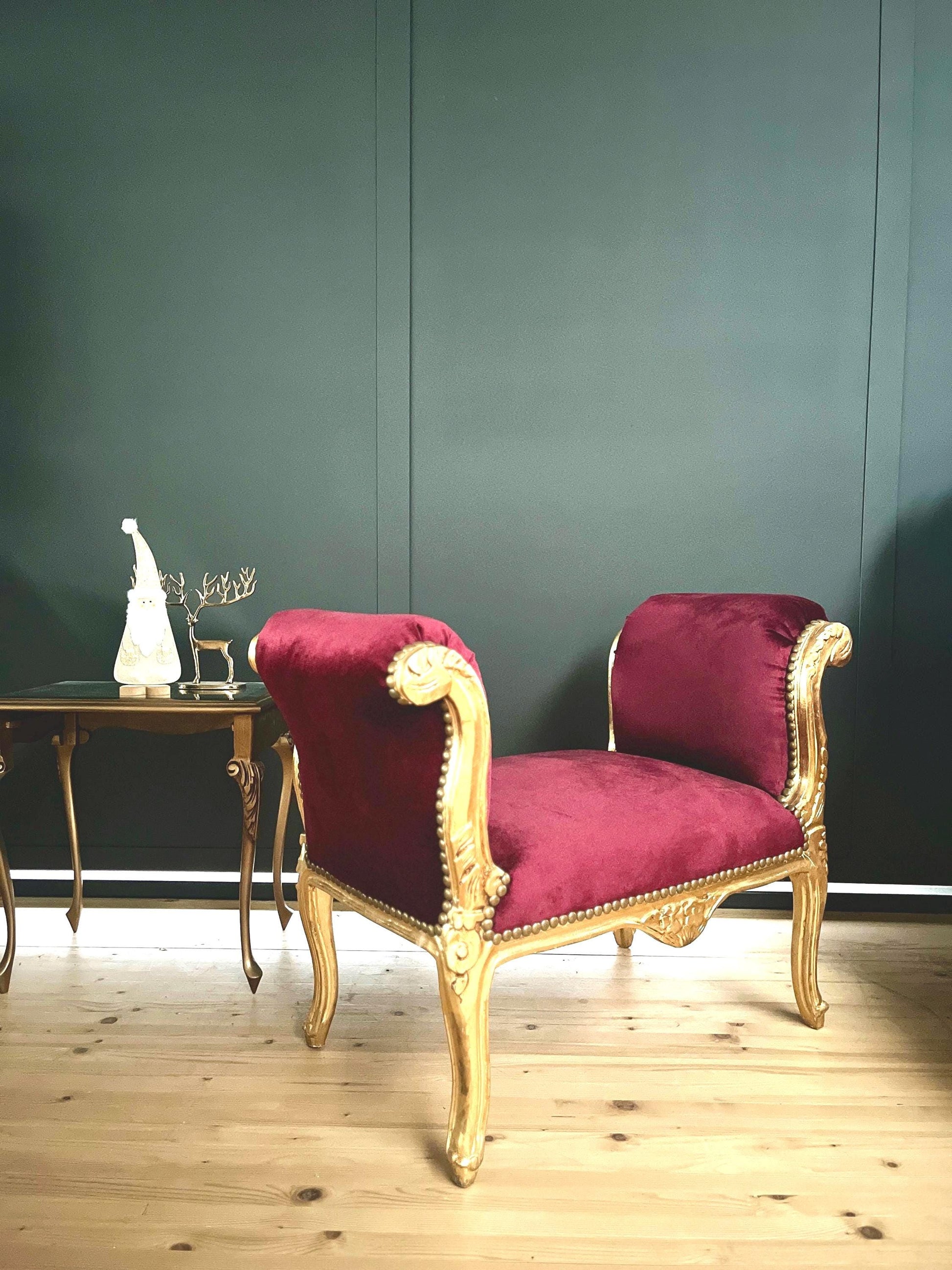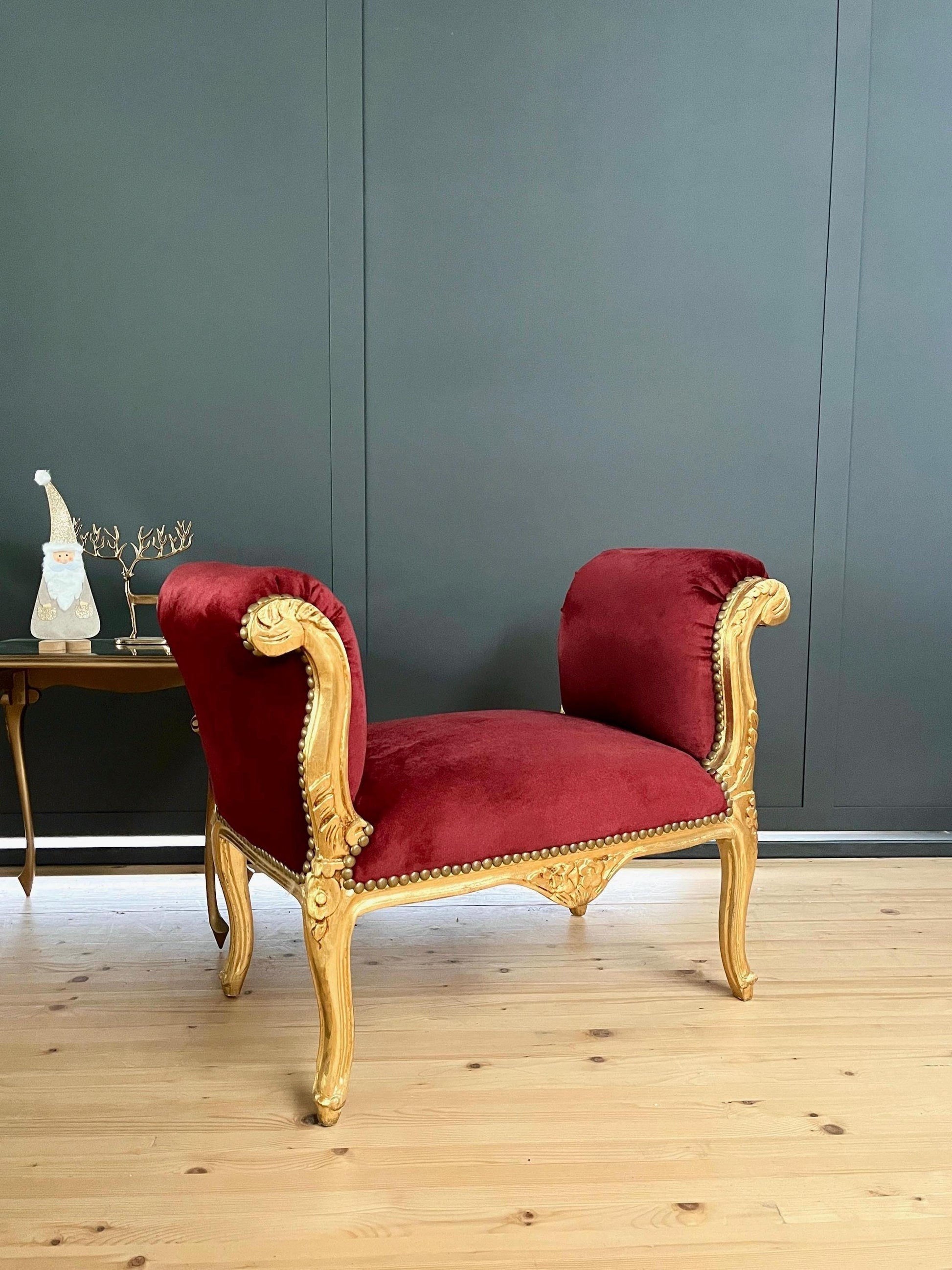 Französischer Barock-Ottoman Louis XVI/ French Louis XVI Baroque Ottoman - Gold Bordeaux