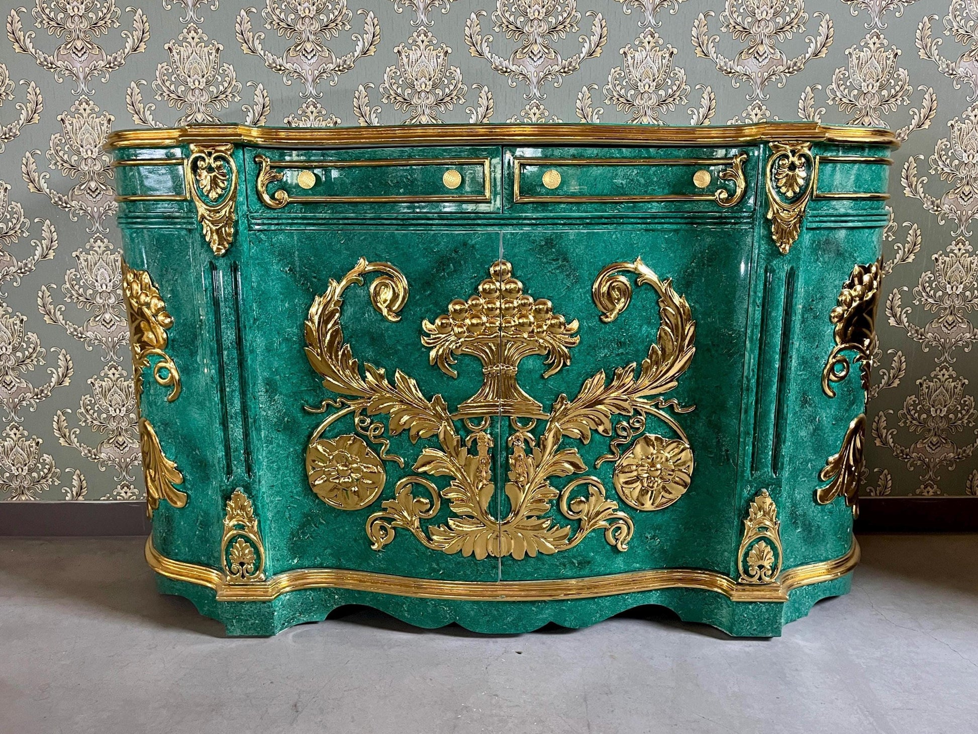 Huge Wooden Cabinet Antique Baroque Rococo Style in Emerald Green Huge Cupboard for Home Decor or Commercial Store Display