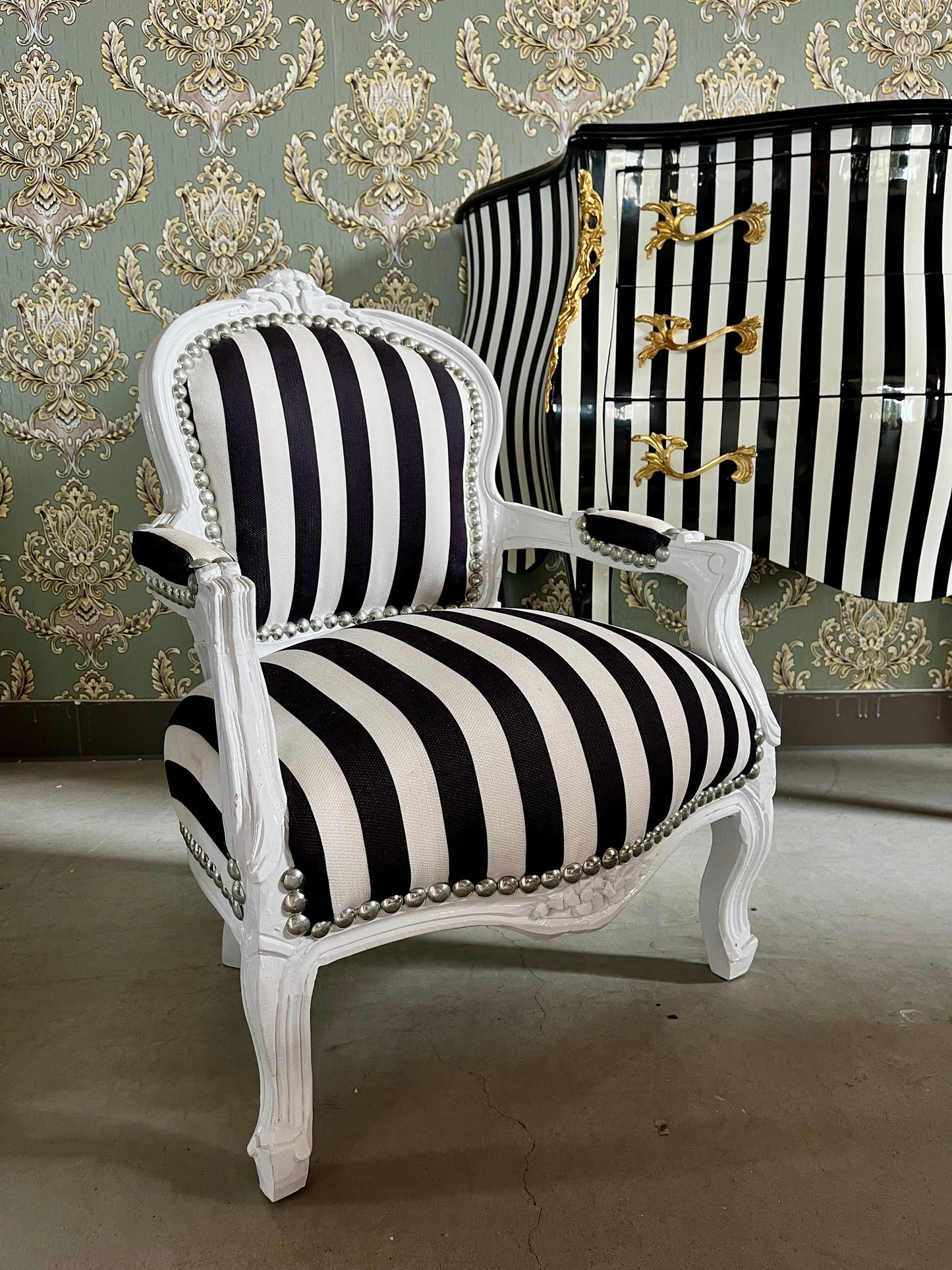 Kid’s Chair Retro Baroque Rococo Style Armchair in Black Stripe French Louis Style Cute Kid’s Chair