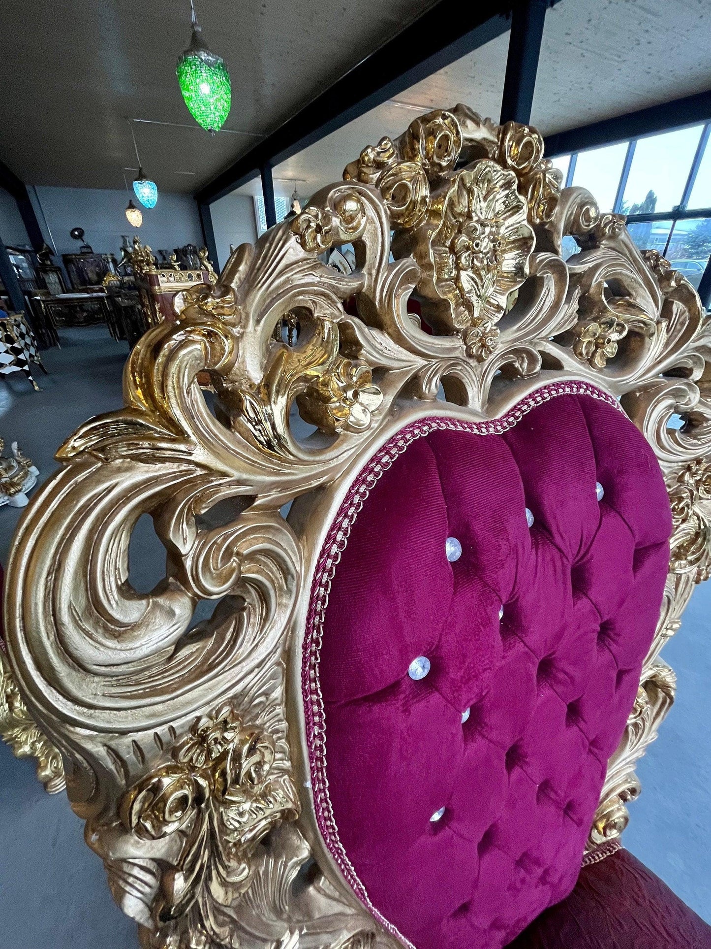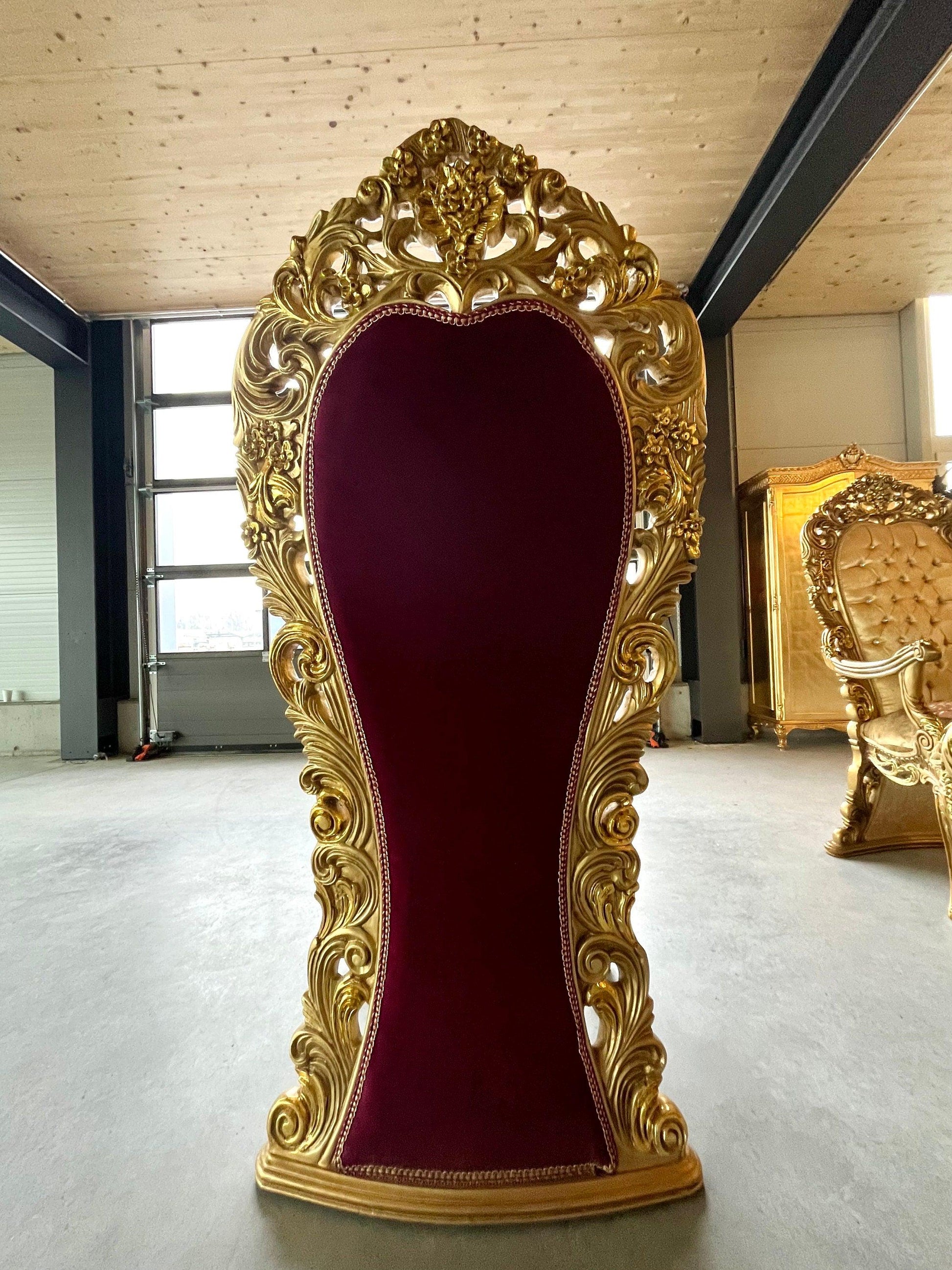 King Throne Red Deluxe Huge Armchair in Bordeaux Embroidery Seated Gold Finish