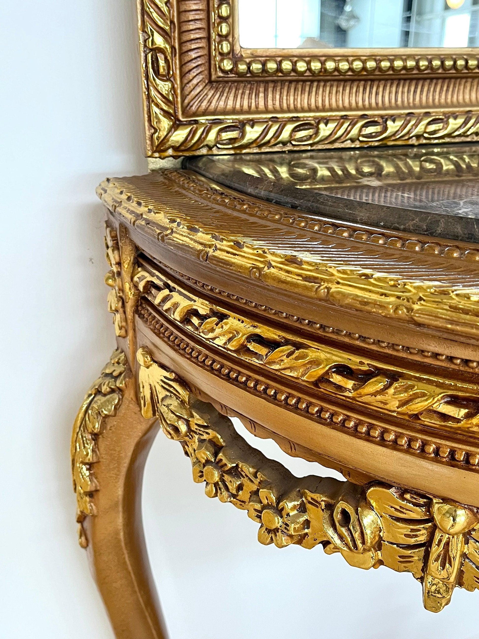 Baroque Console Table with Standing Mirror: Handmade Gold Leaf & Marble