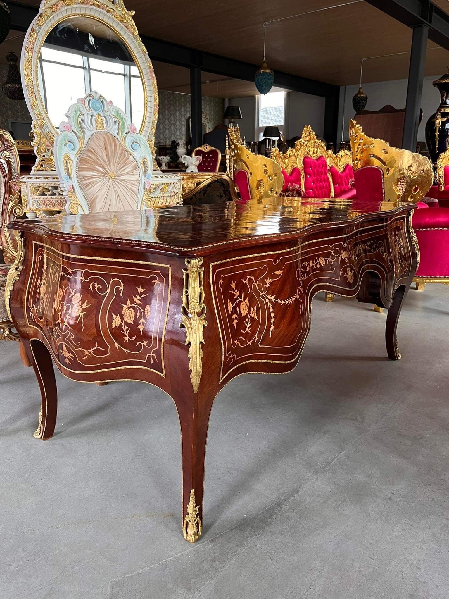 Limitierter handgefertigter Schreibtisch im Barockstil/ Limited Deluxe Desk in French Baroque Style Wooden Desk Nostalgic Antique Look Brown