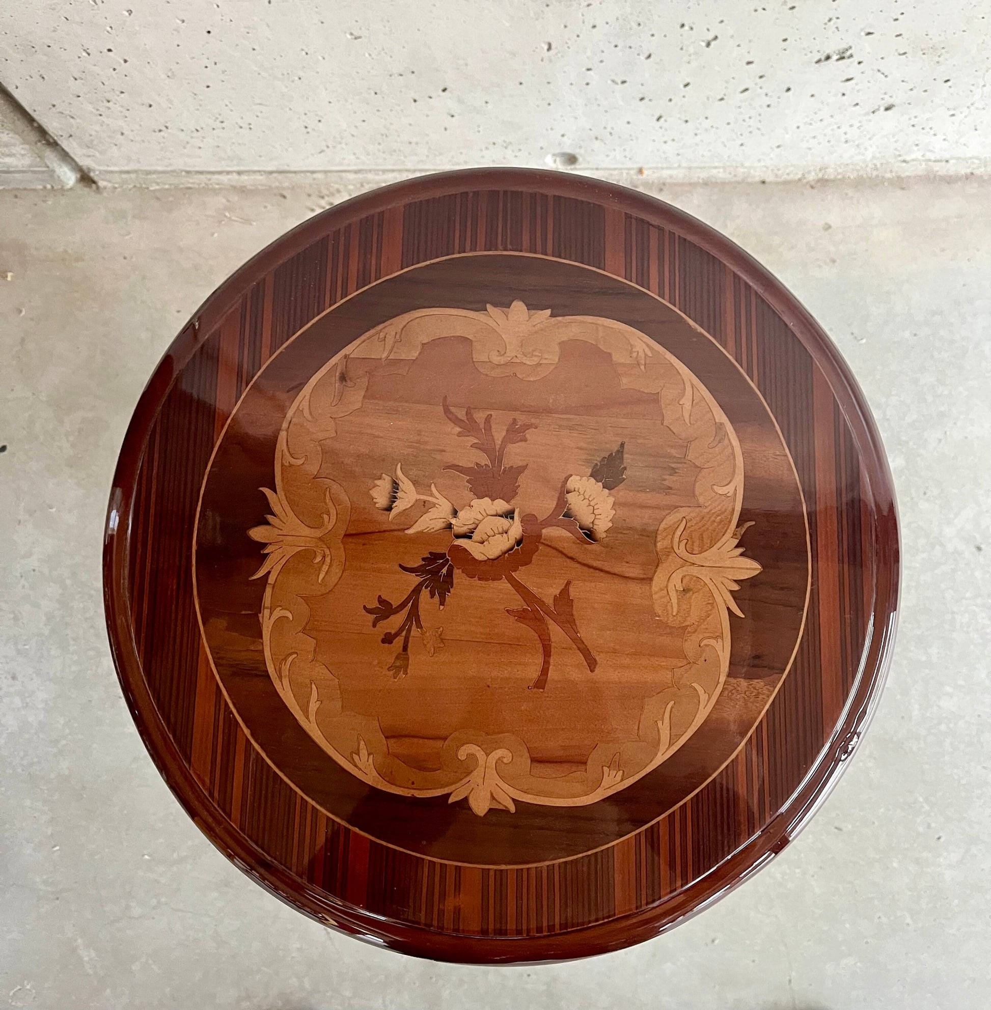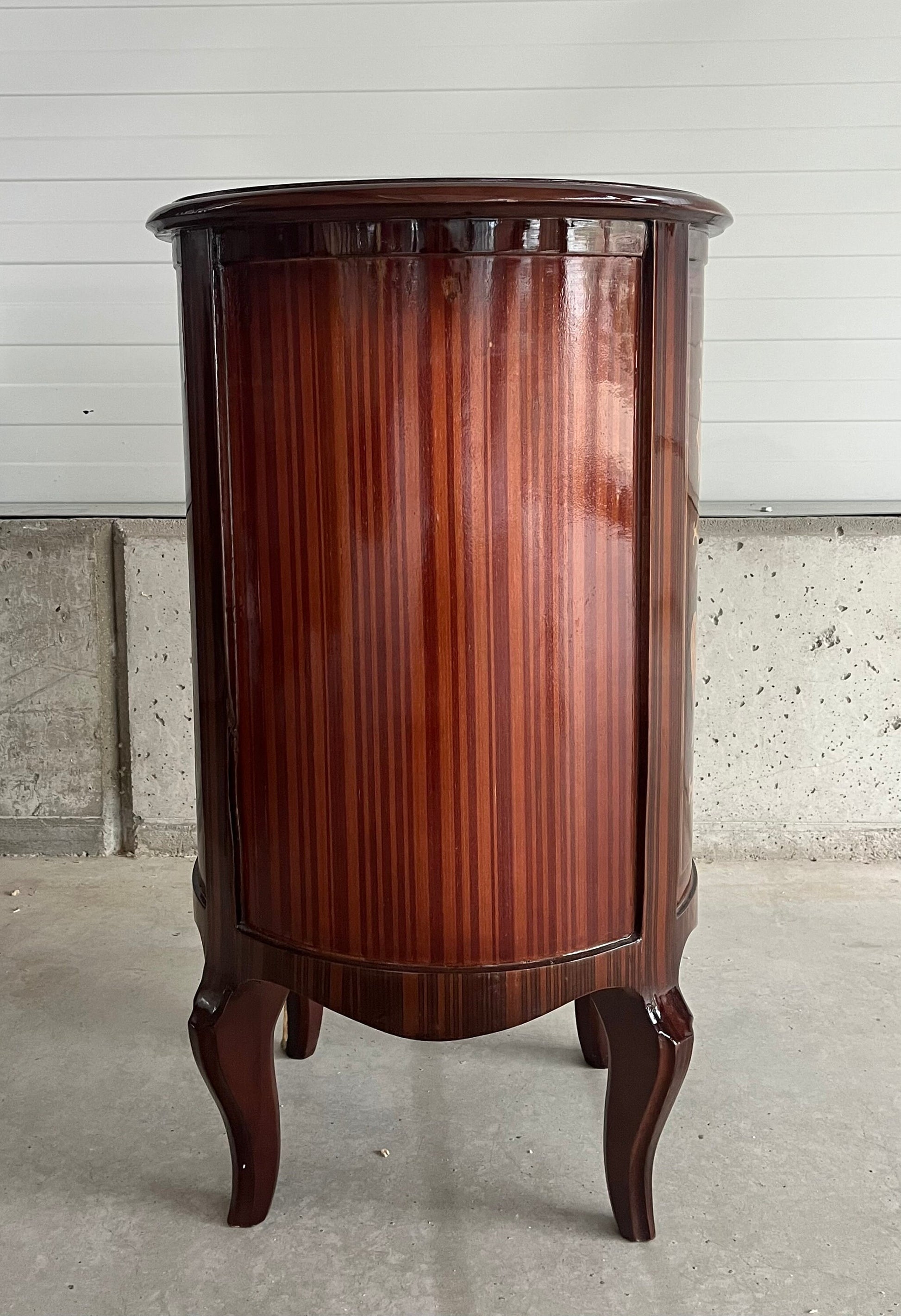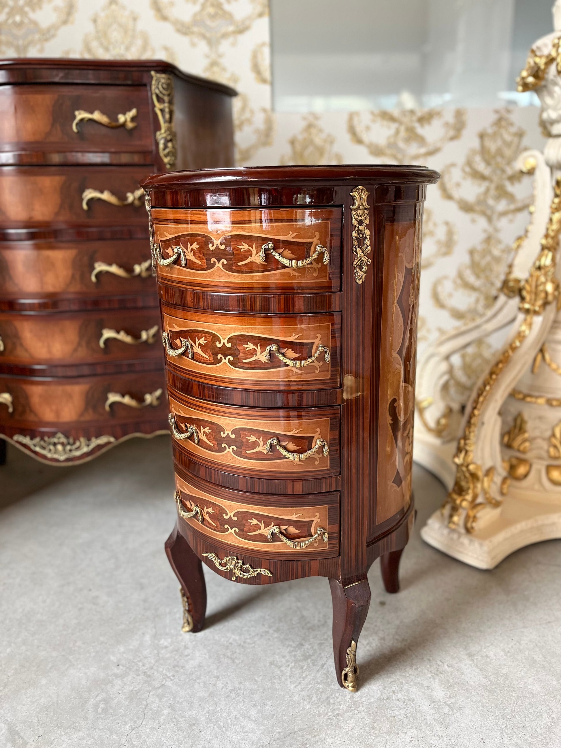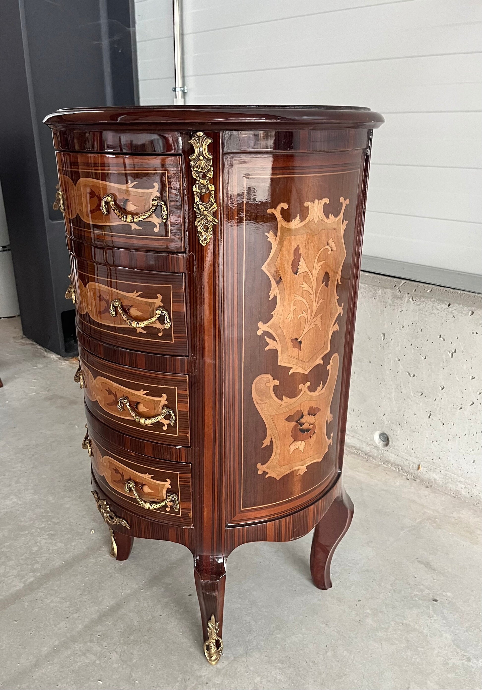 Louis XVI Antique style night stand reproduction in round shape inlaid 4 drawers.