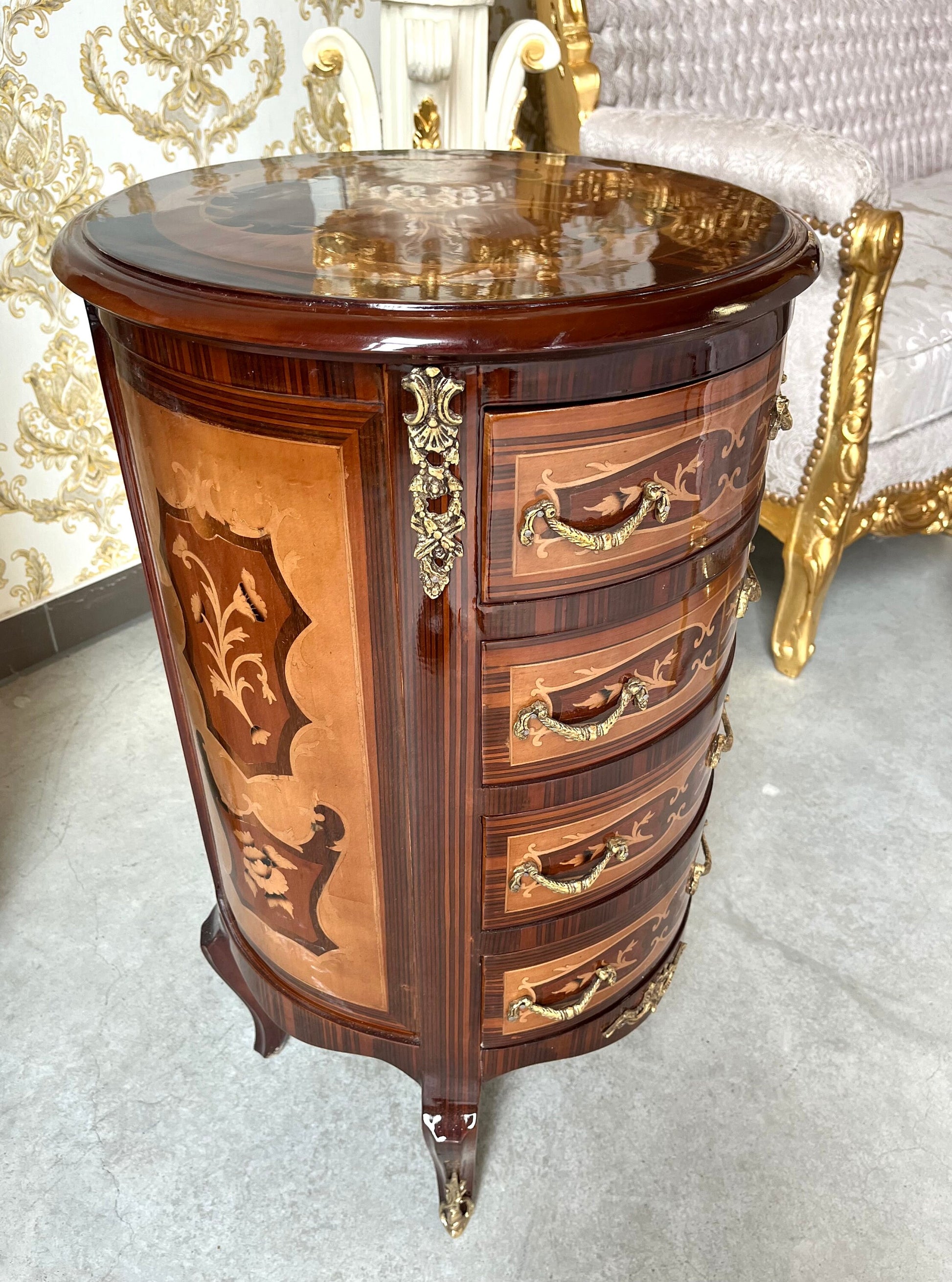 Louis Möbel Kommode Nachttisch im Antik Stil- Runden/ Chest of Drawer French Baroque Antique Style Night Stand in Round Shape Brown