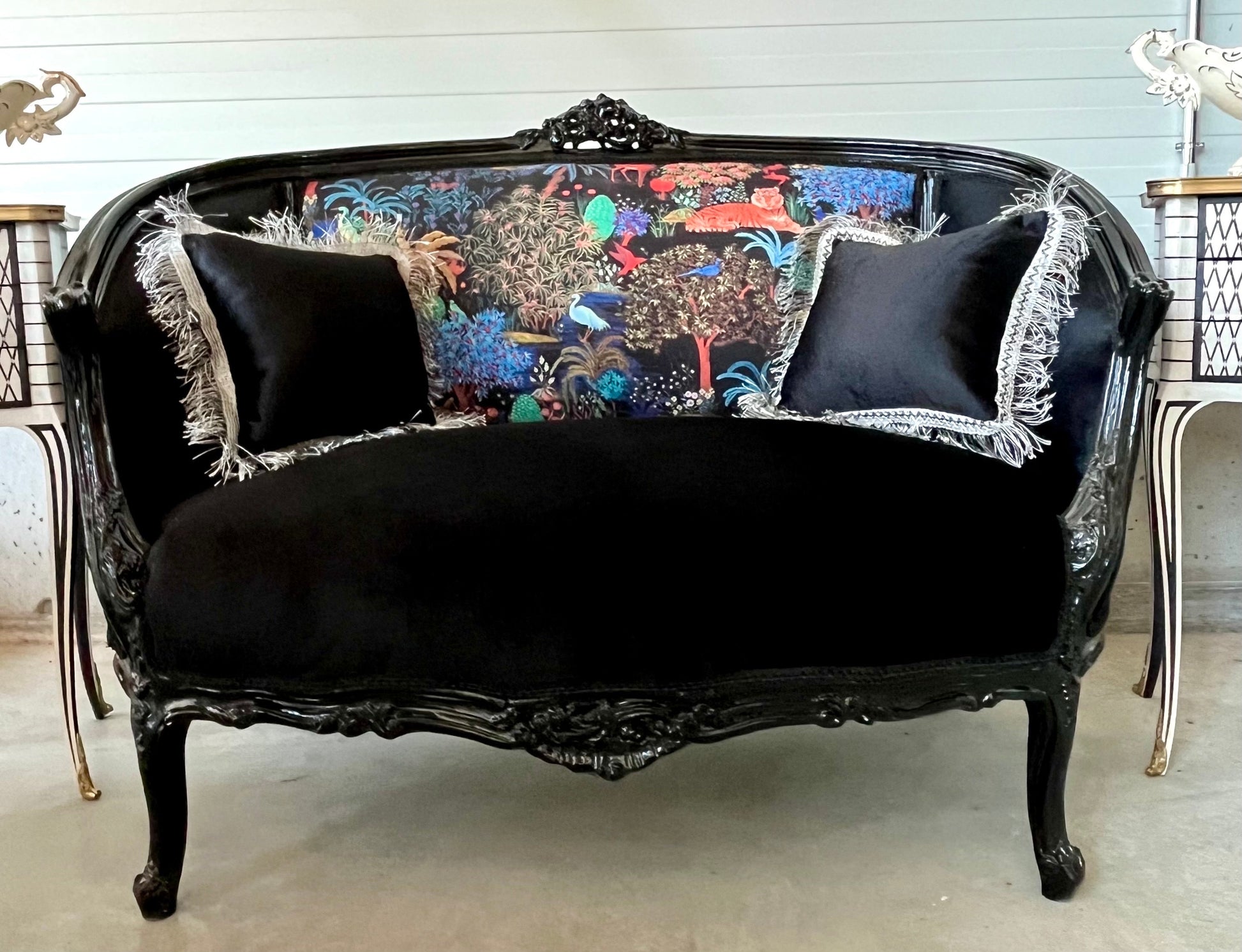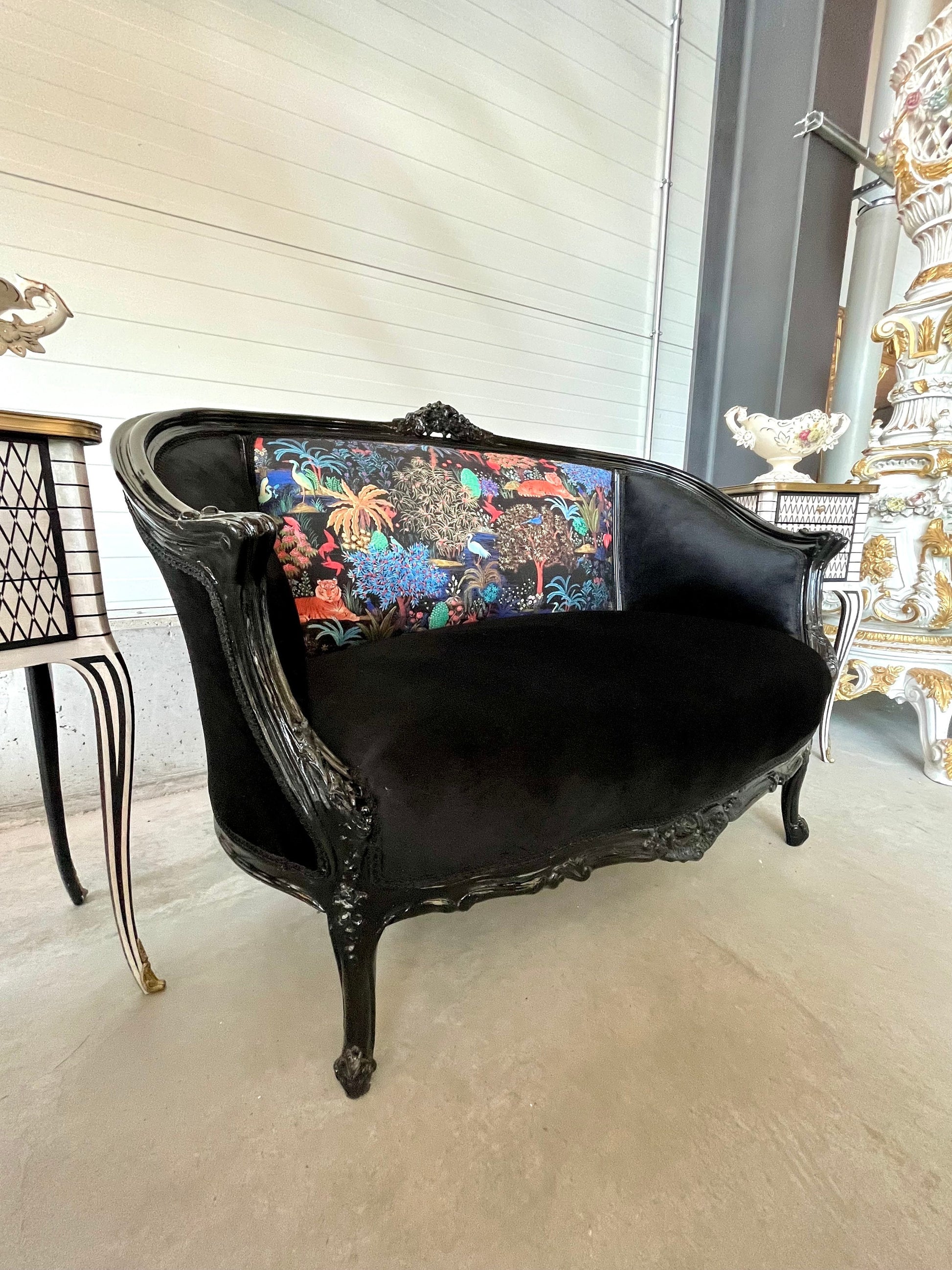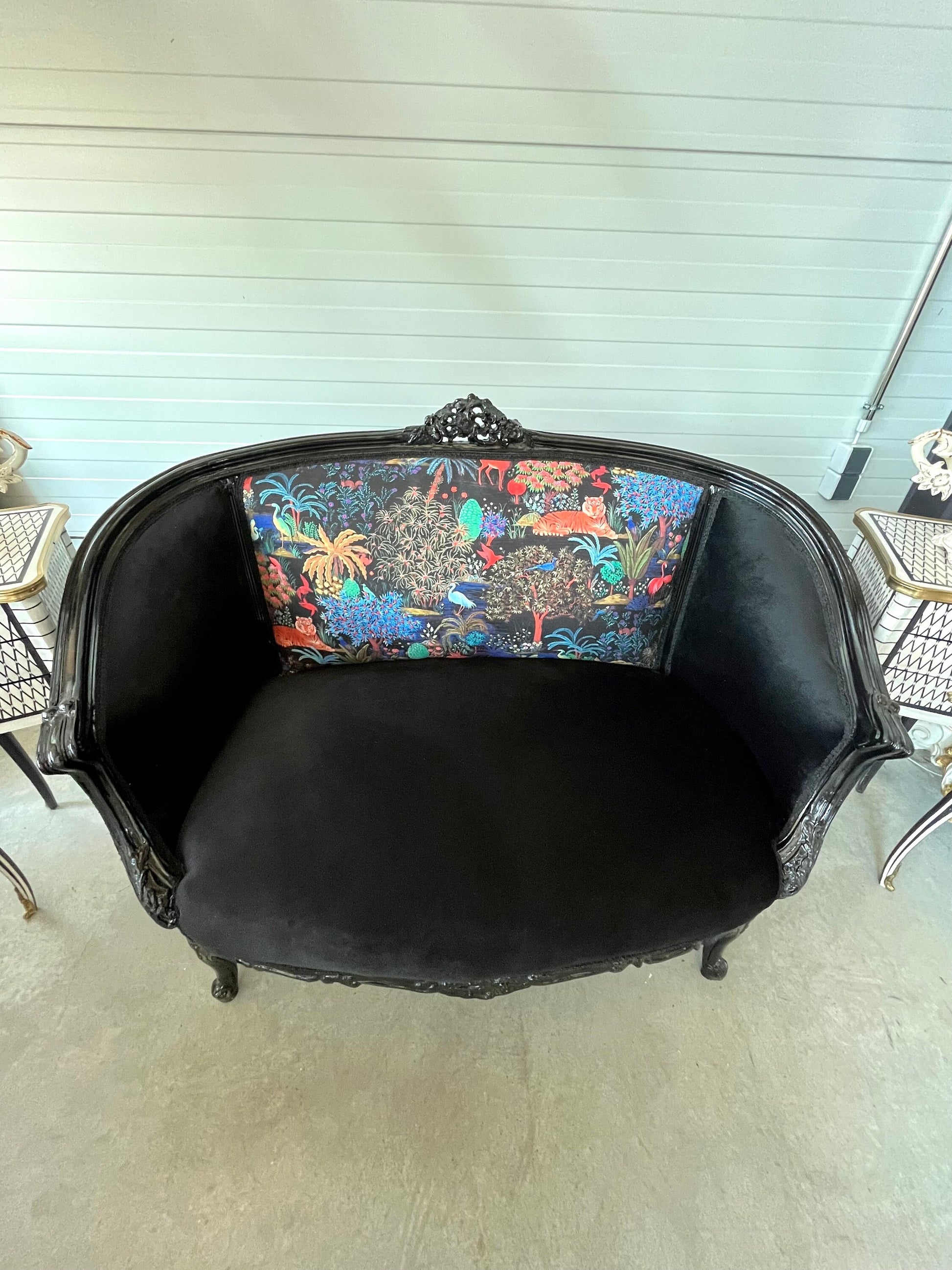 Lounge Sofa French Baroque Rococo Style in Black Velvet Safari Jungle Print Sofa For Party Special Event For Home Decor