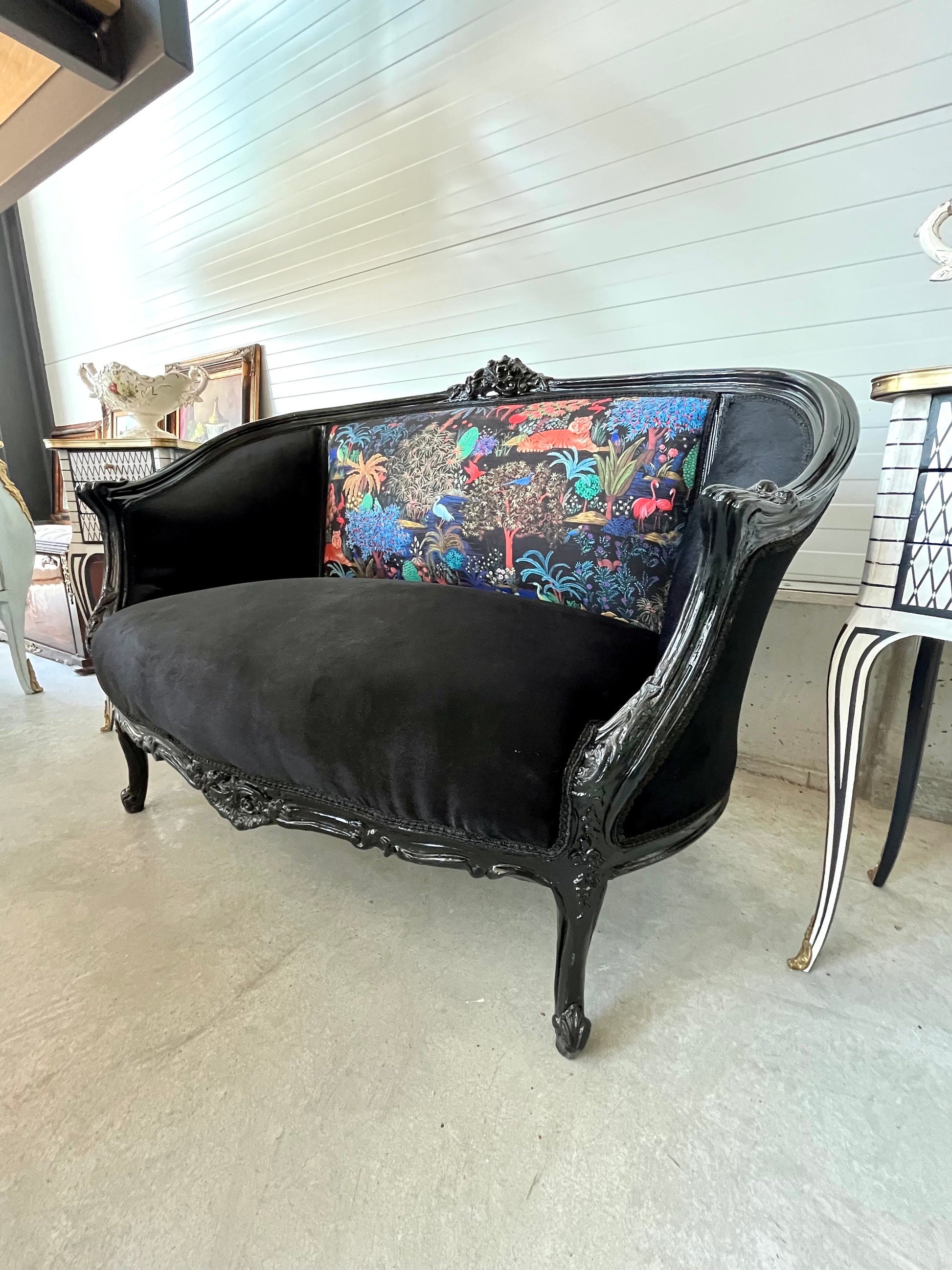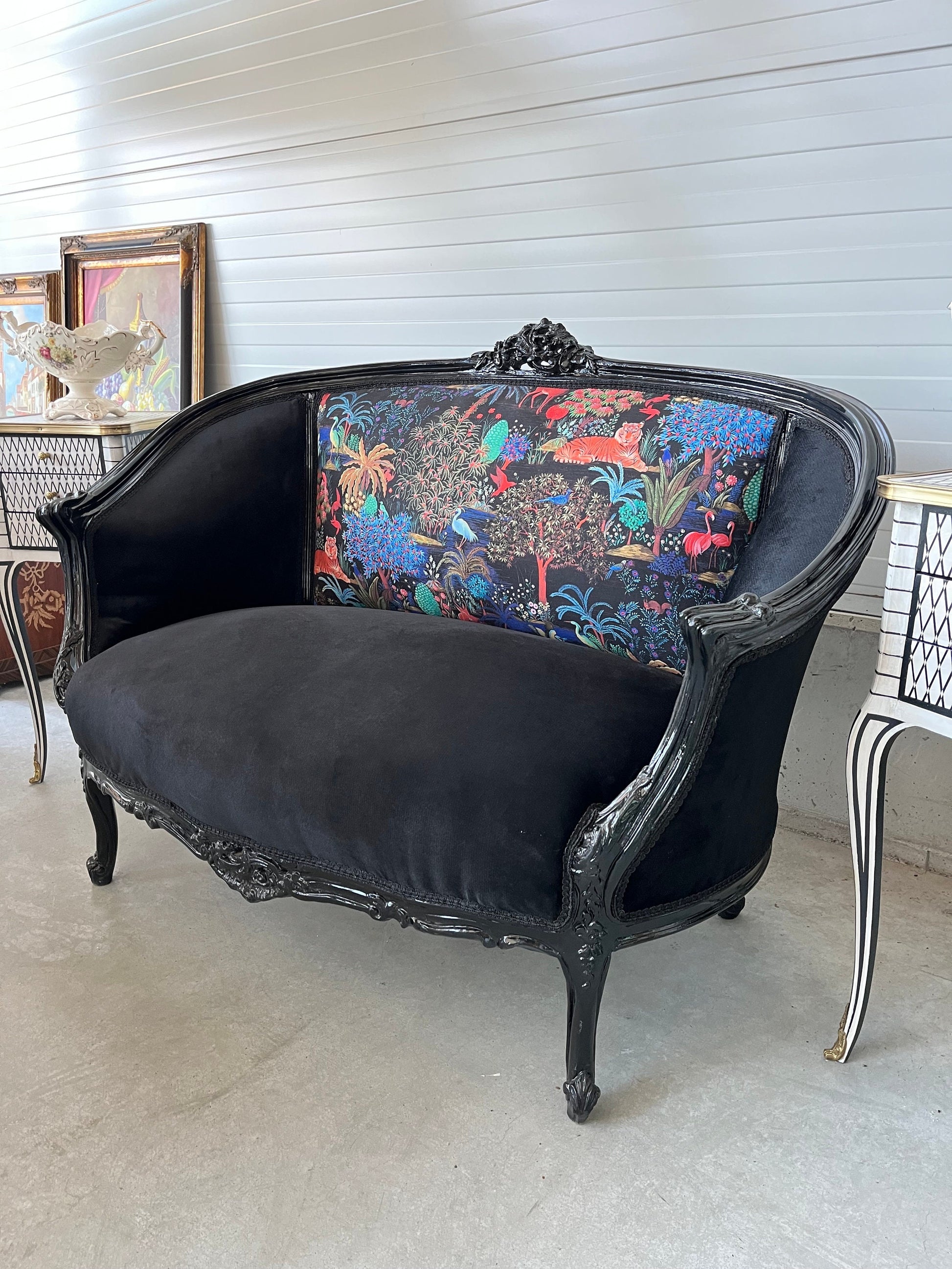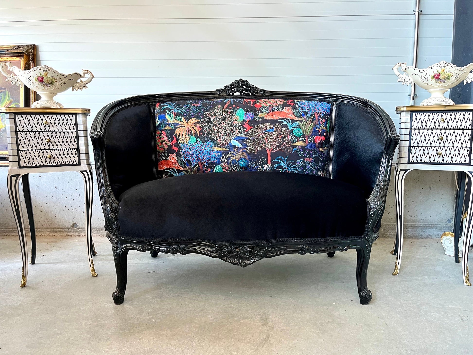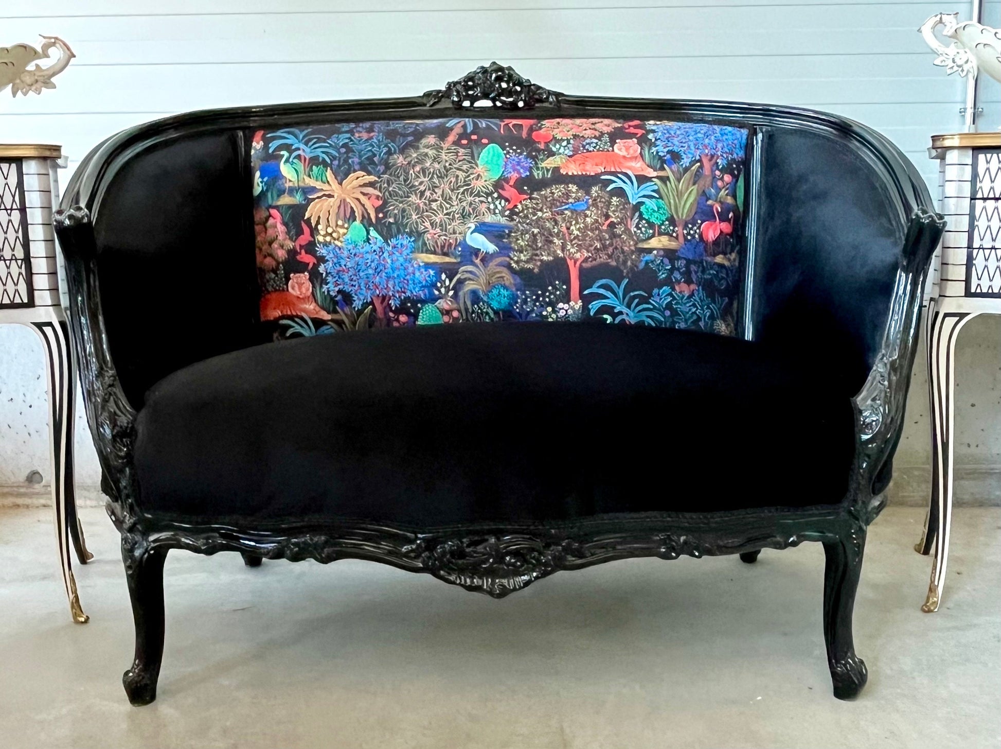 Lounge Sofa French Baroque Rococo Style in Black Velvet Safari Jungle Print Sofa For Party Special Event For Home Decor