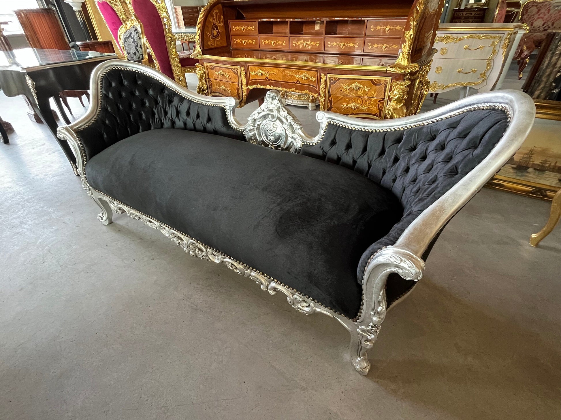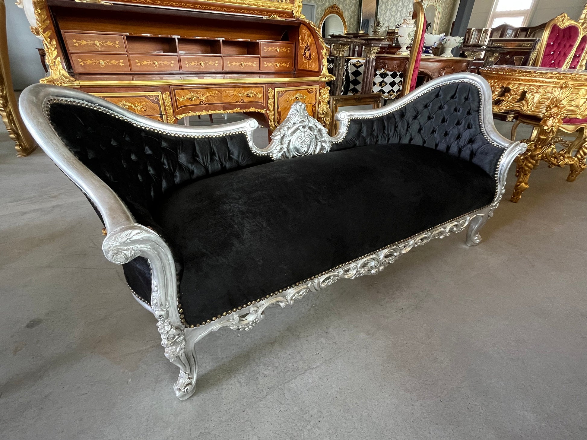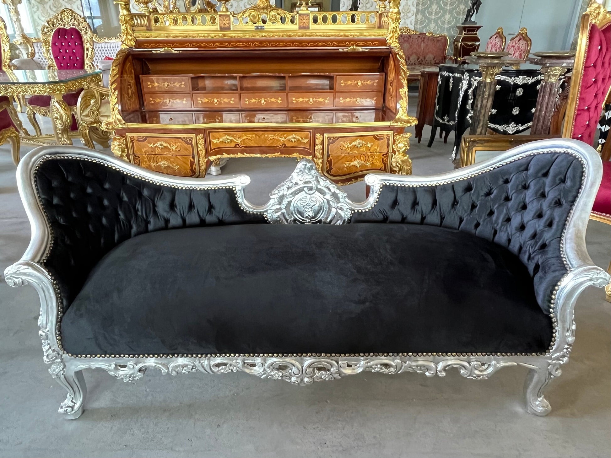 Lounge-Sofa im Barock-Stil, schwarzes Samtsofa für Bar, Salon, Nachtclub/ Lounge Sofa Black French Baroque Style Love Seat for Bar Nightclub