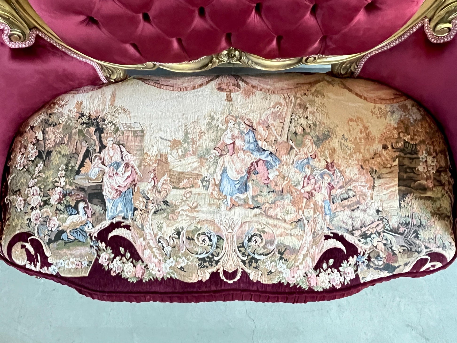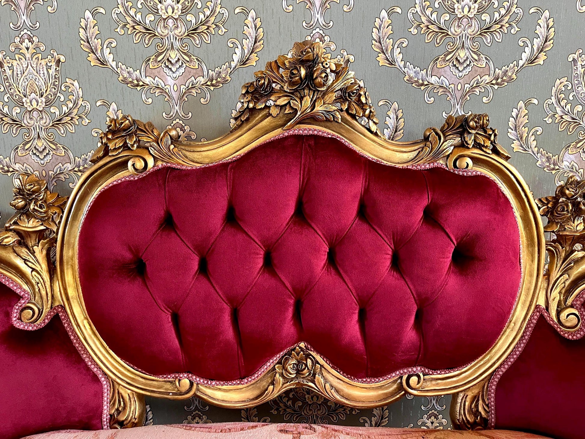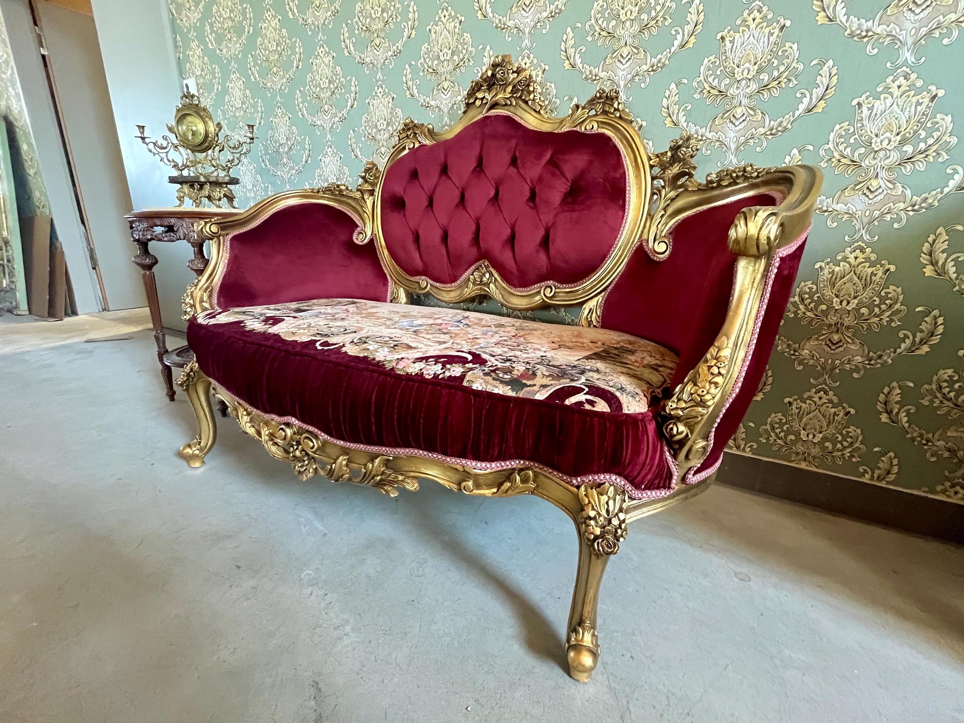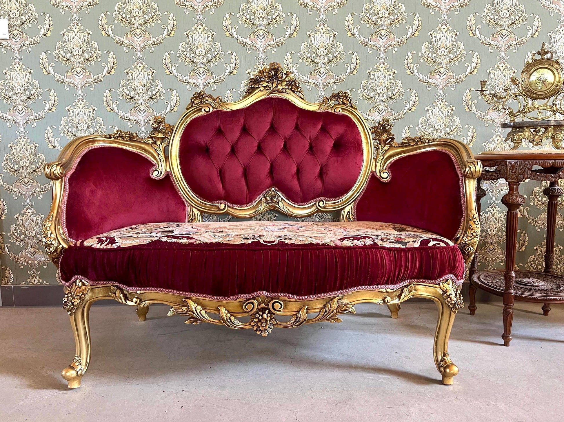 Love Seat French Royal Style Couch Bordeaux Red Velvet Sofa Nostalgic Antique Style Settee, Red Velvet Sofa Antique Baroque Style Home Decor