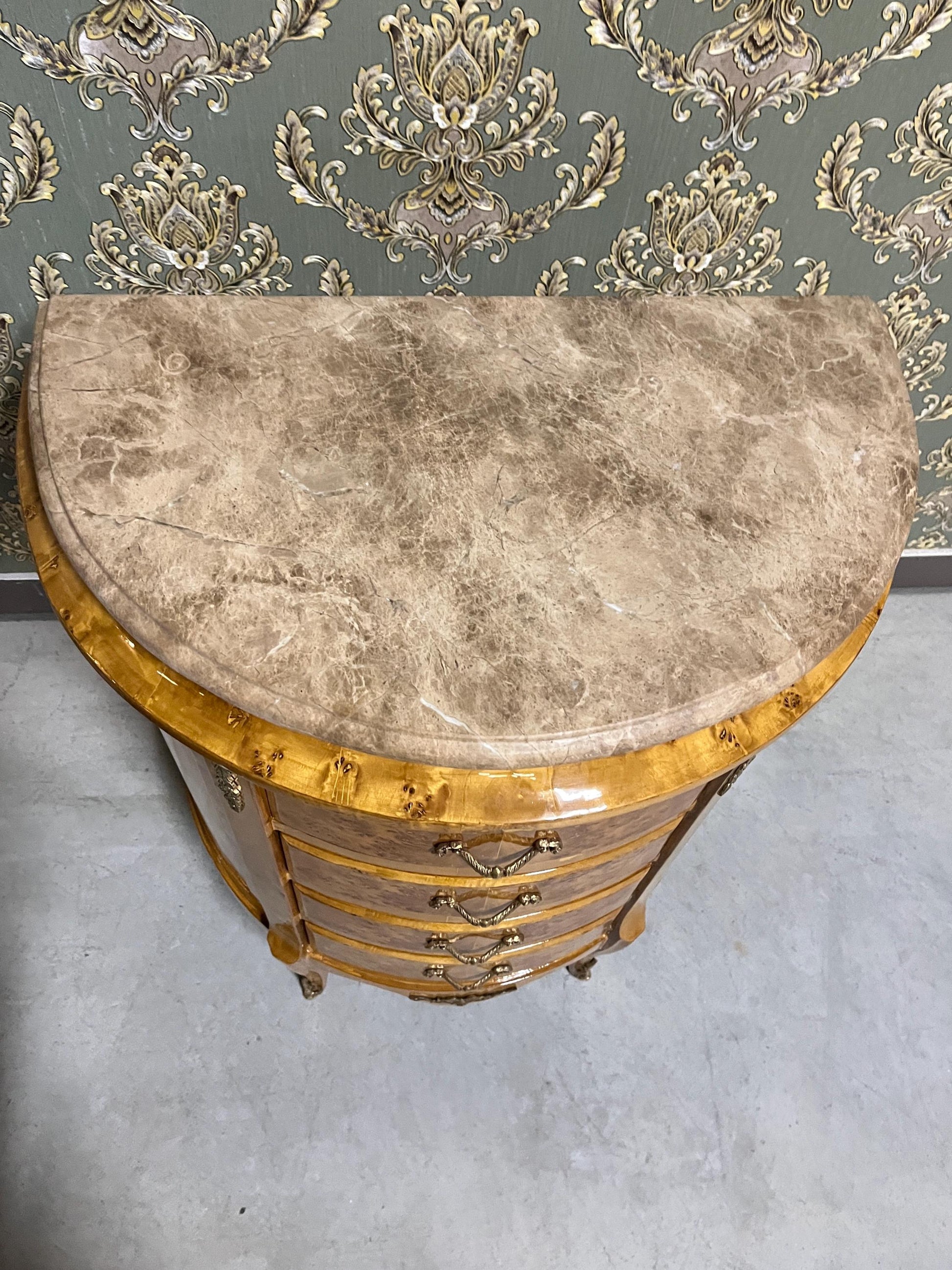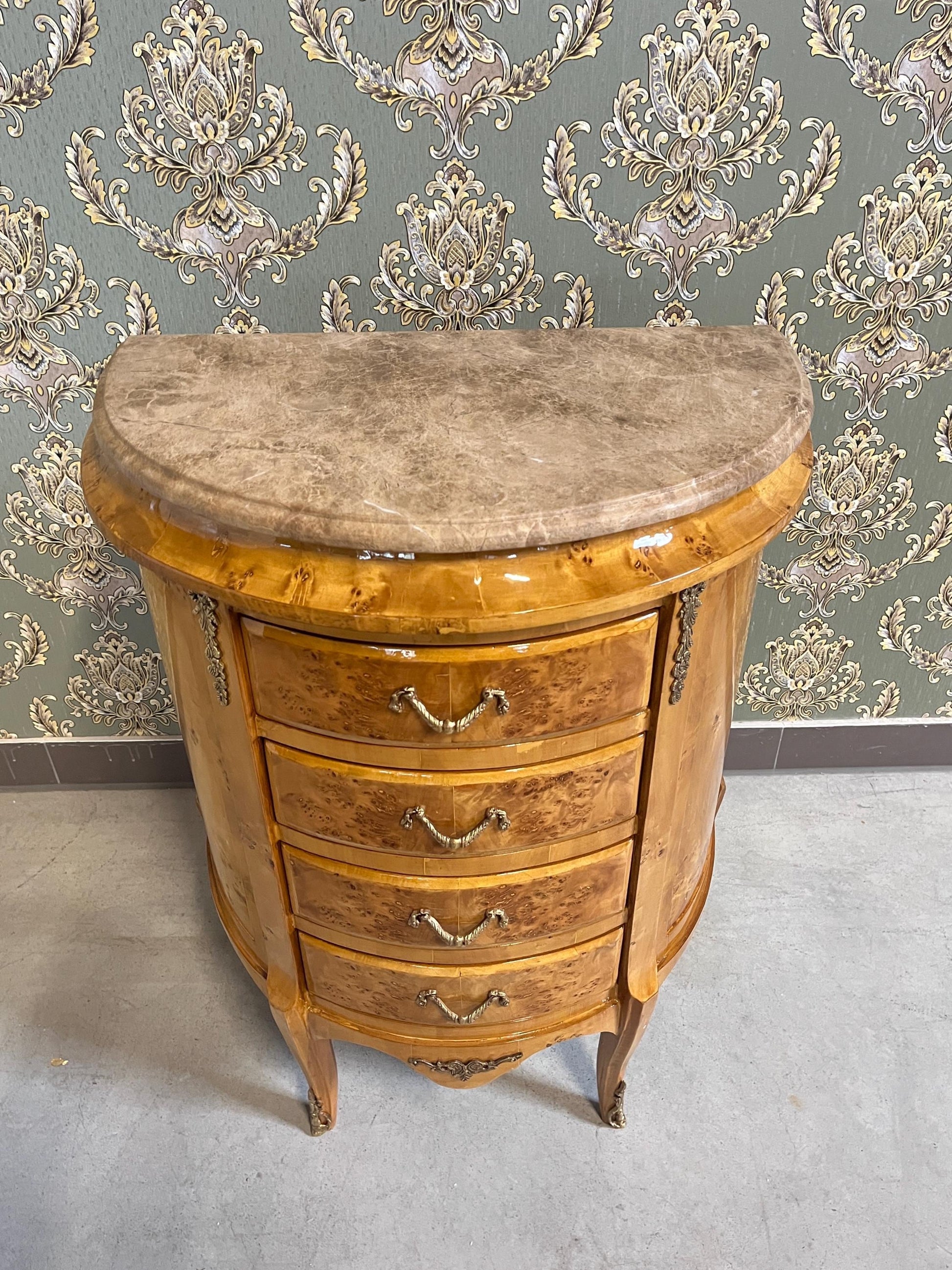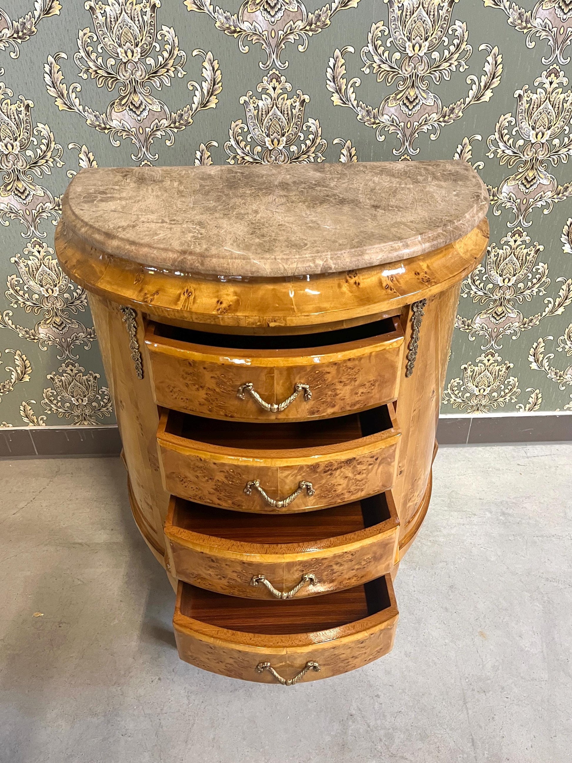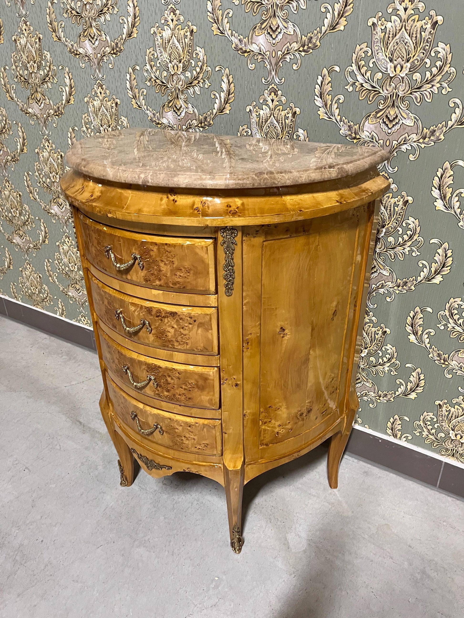 French Antique style night stand reproduction in oval shape inlaid 4 drawers.
