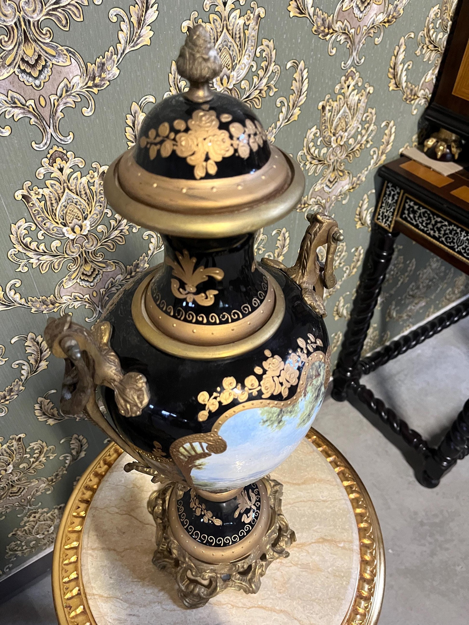 Luxury Porcelain Vase, Oil Painting on Porcelain Vase, Antique Style Vase in Blue with Gold Accents, New Home Gift, Anniversary Gift for Her