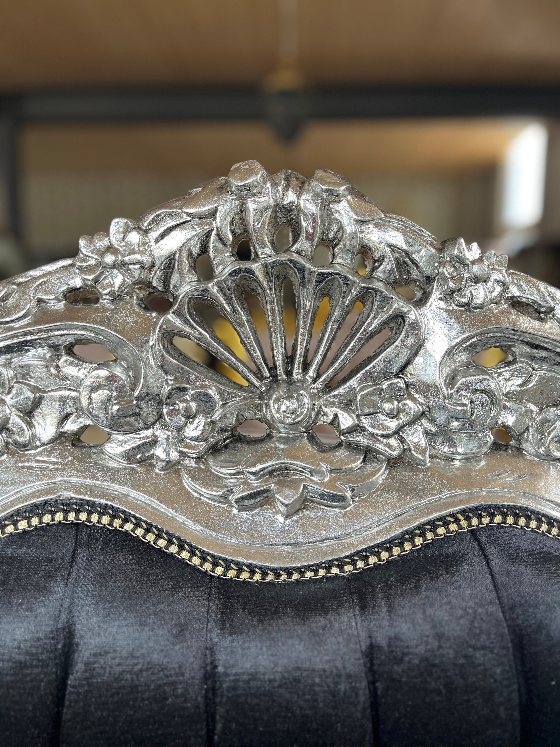 Our most popular baroque style sofa set in 3-1-1 in silver black.