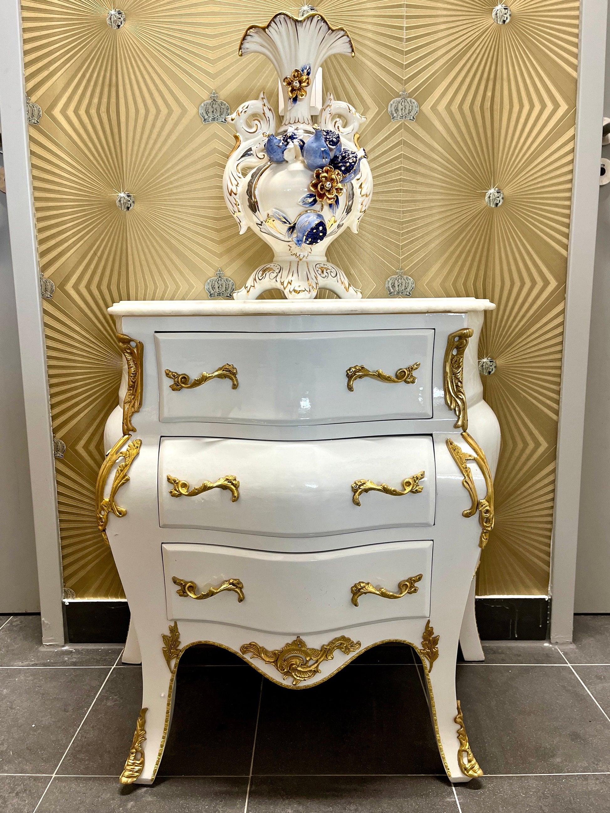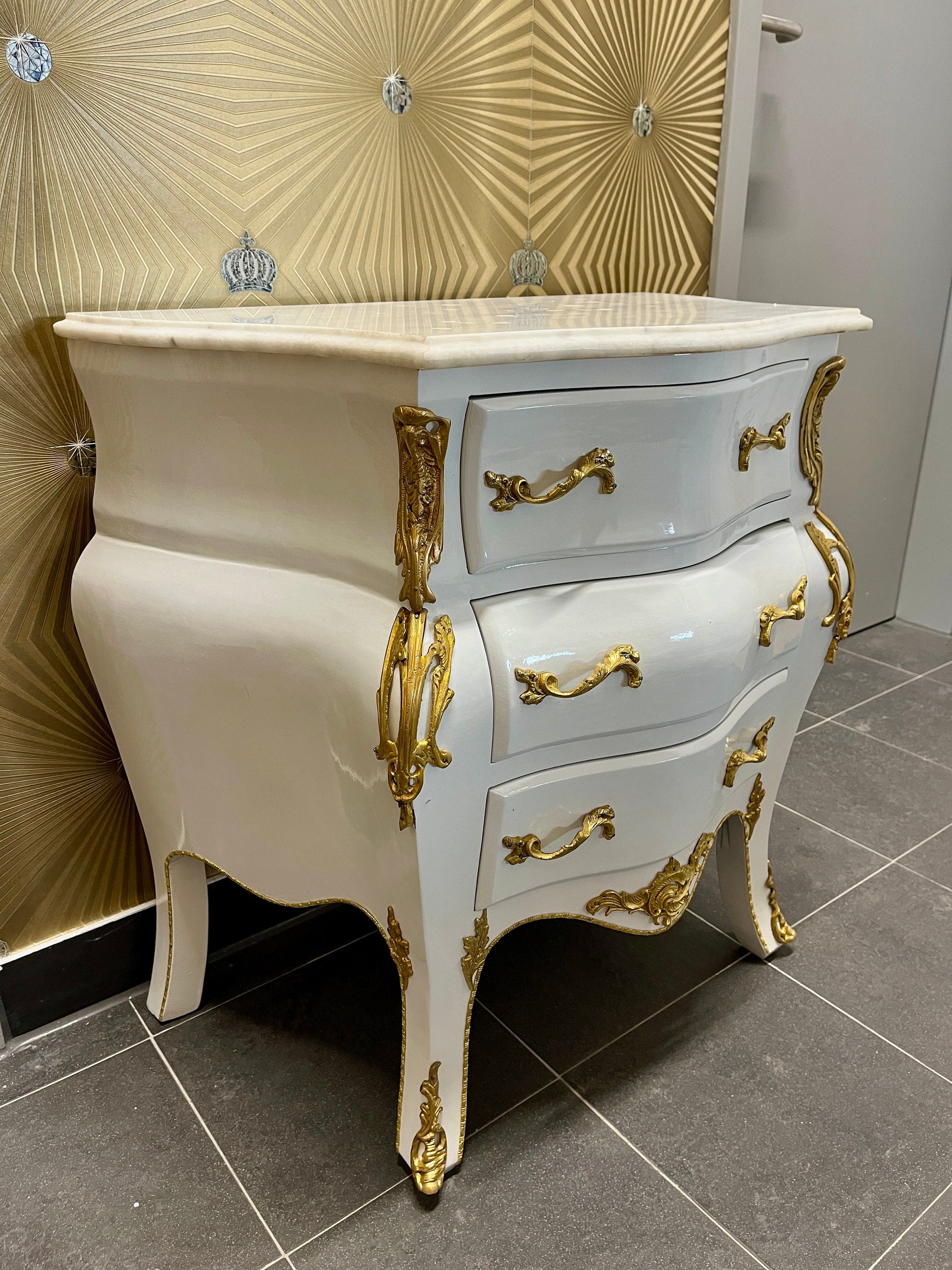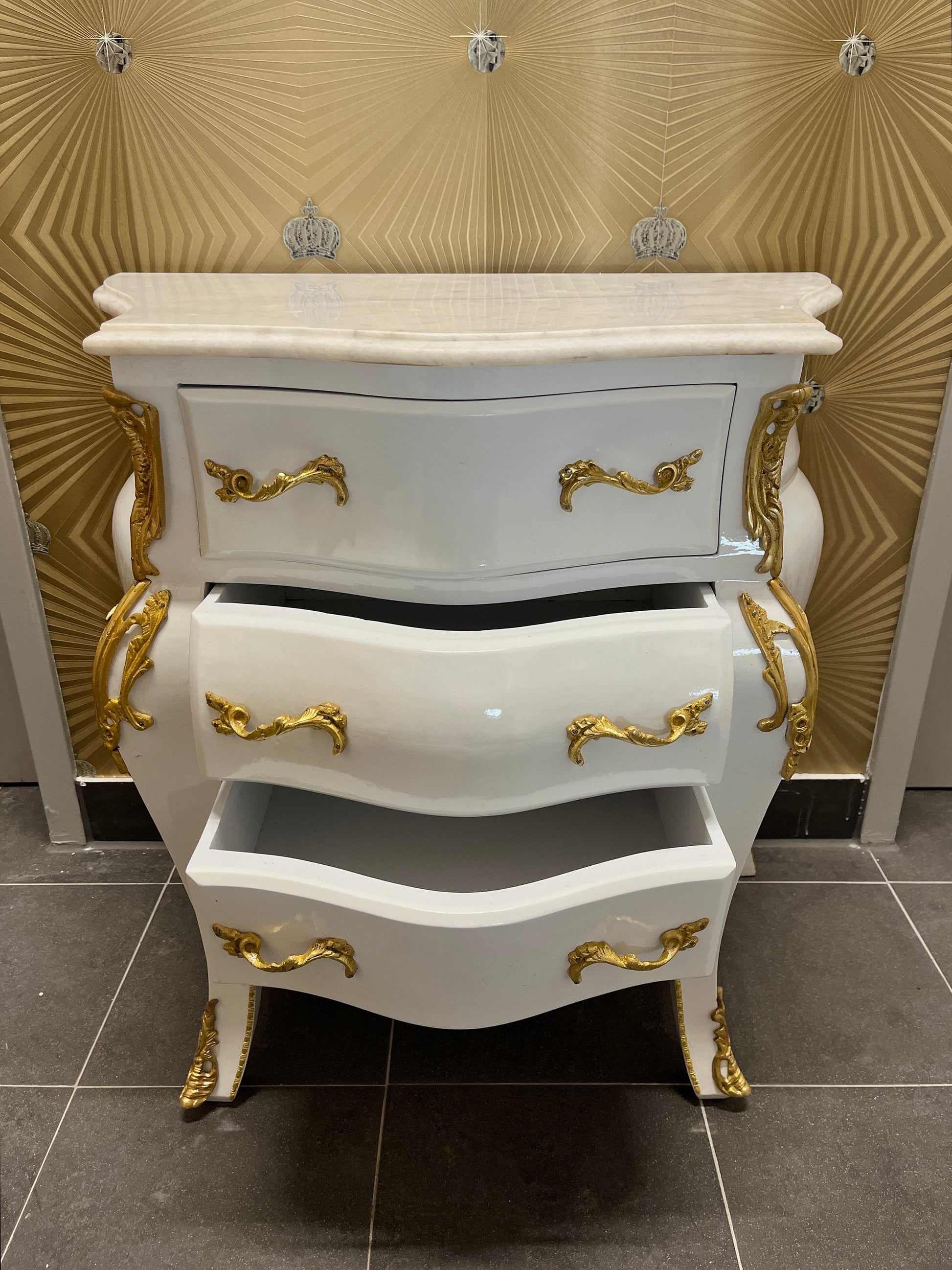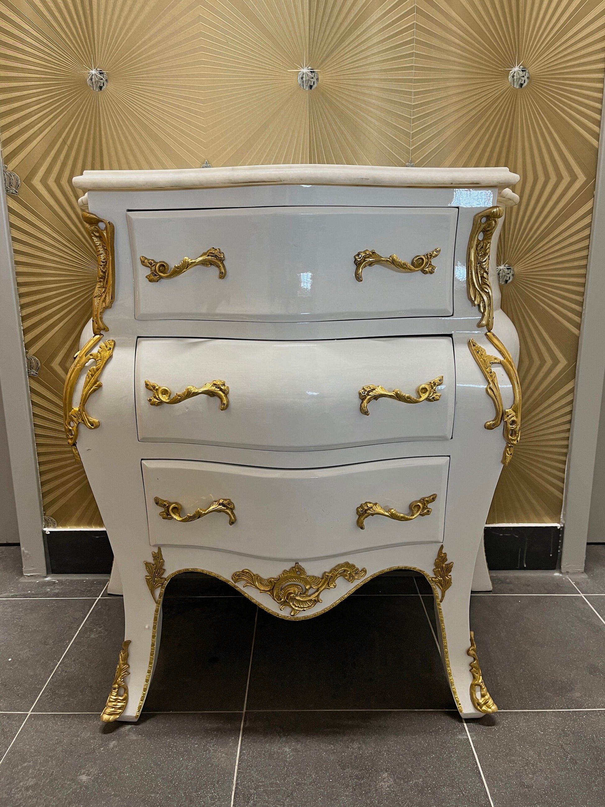 Night Stand Deluxe French Baroque Rococo Style Chest of Drawer in White Colour Bronze Ornaments for Home Decor