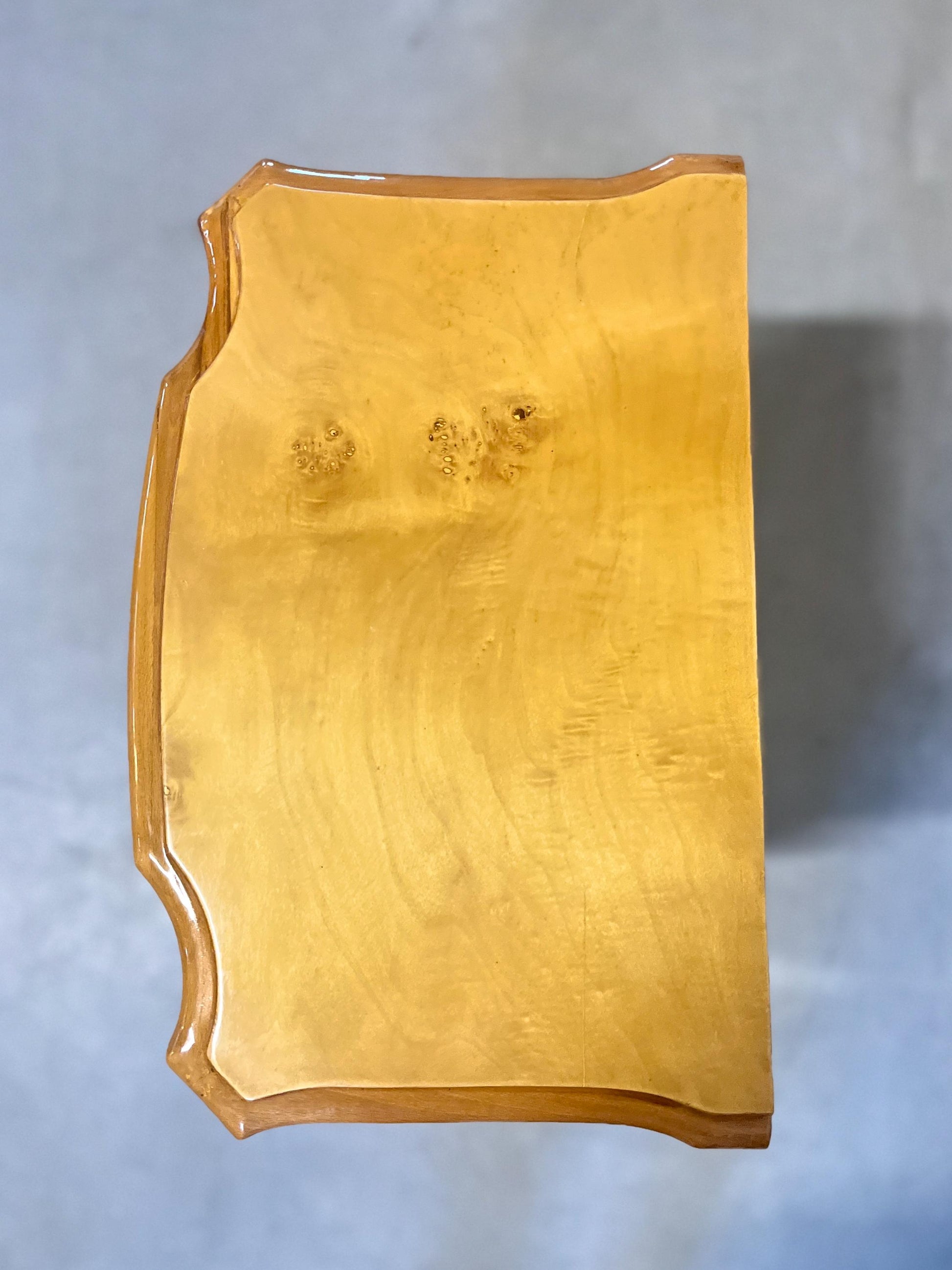 Handcrafted in solid wood, bronze ornaments and curly legs.