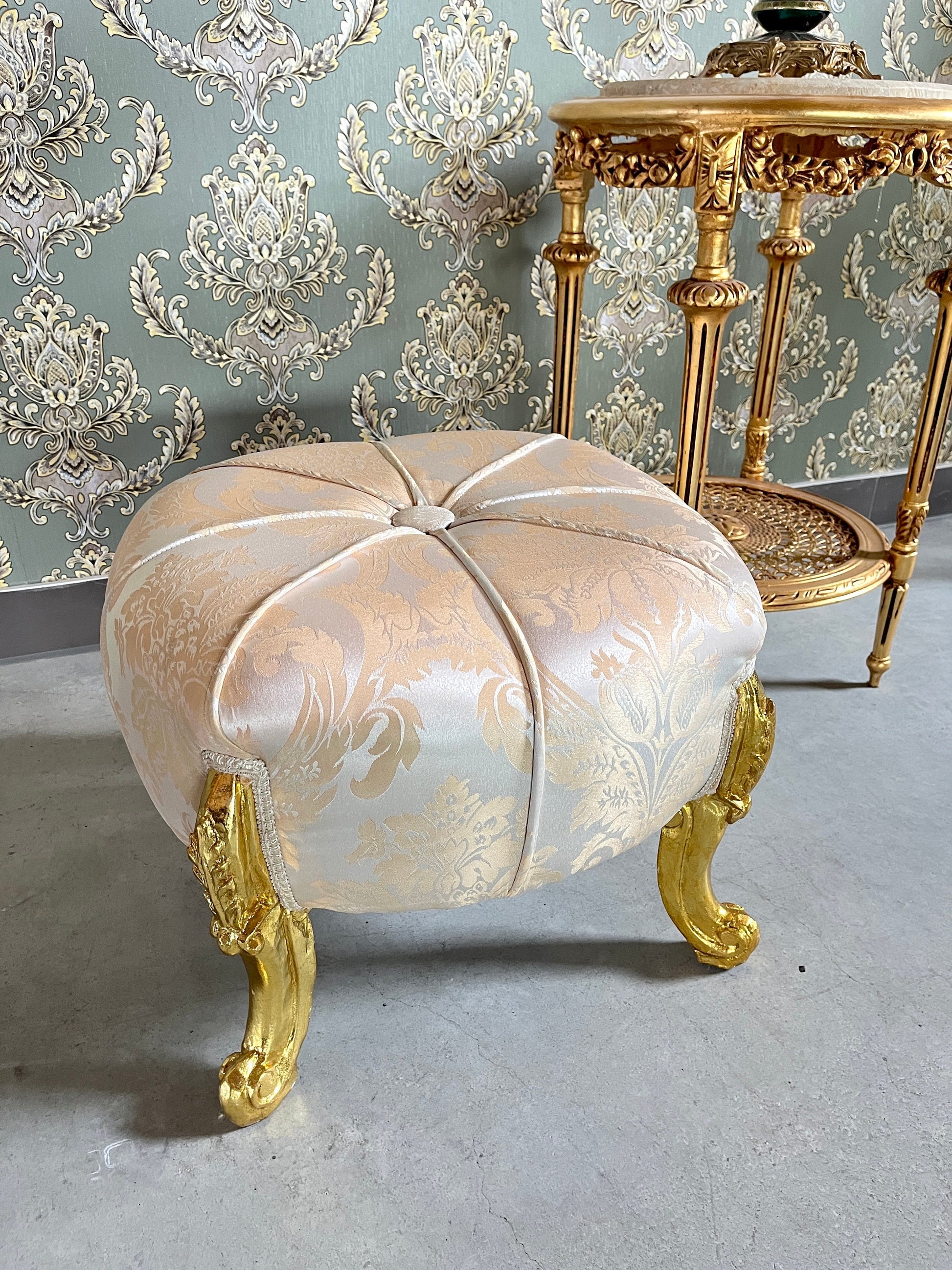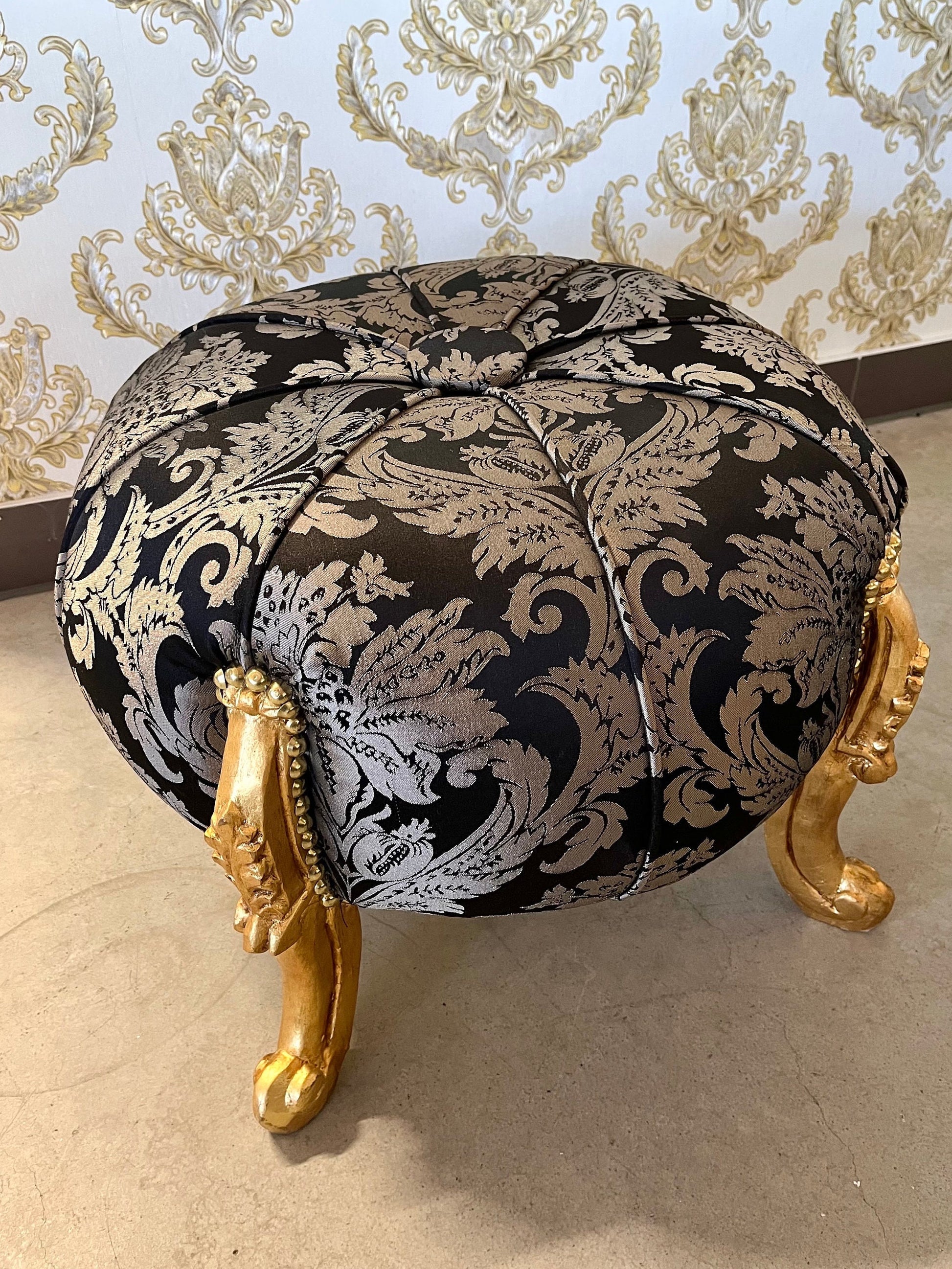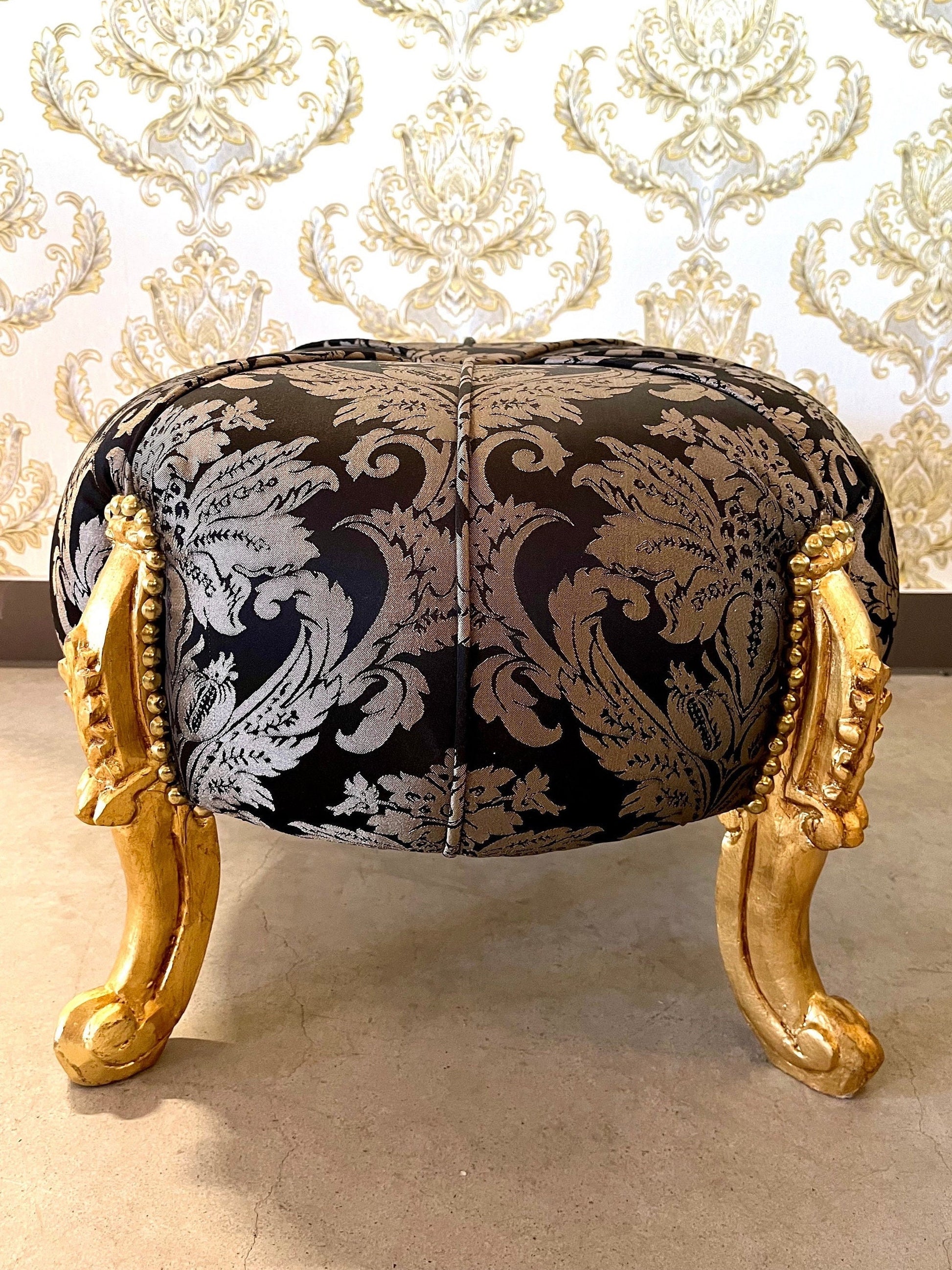 Our handmade baroque style ottoman offers a comfort sitting experience.