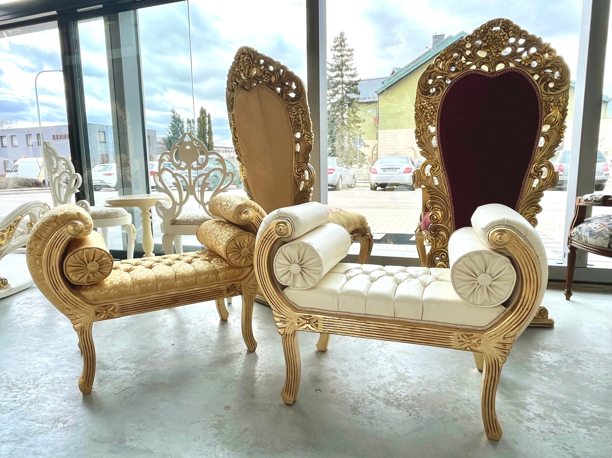 Upholstered with polyester jacquard fabric, handcrafted in solid beech wood, gilded in gold foil leaf and crystal decoration. It’s sturdy, cozy and stylish !