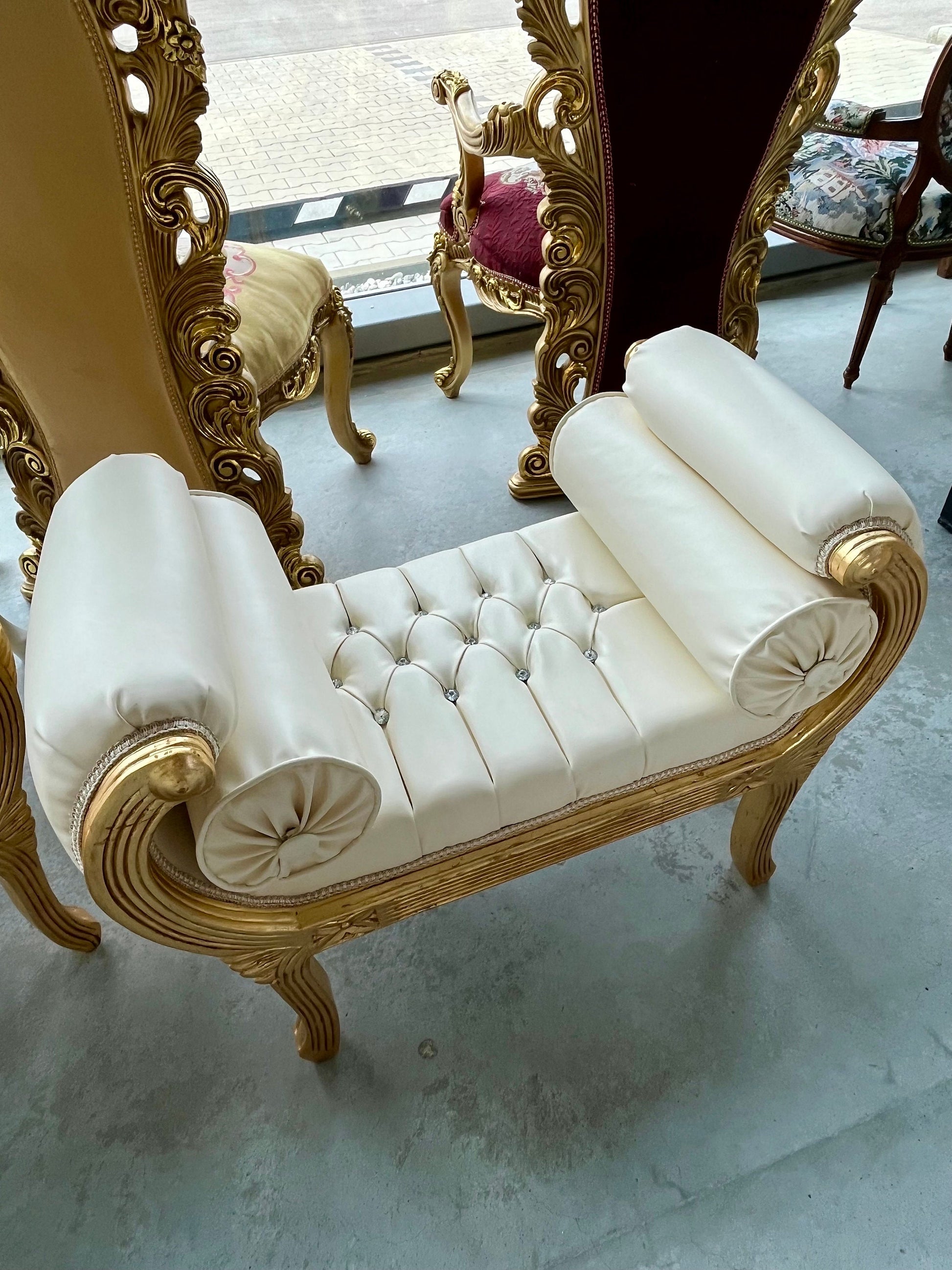 Our handmade baroque style ottoman offers a comfort sitting experience.