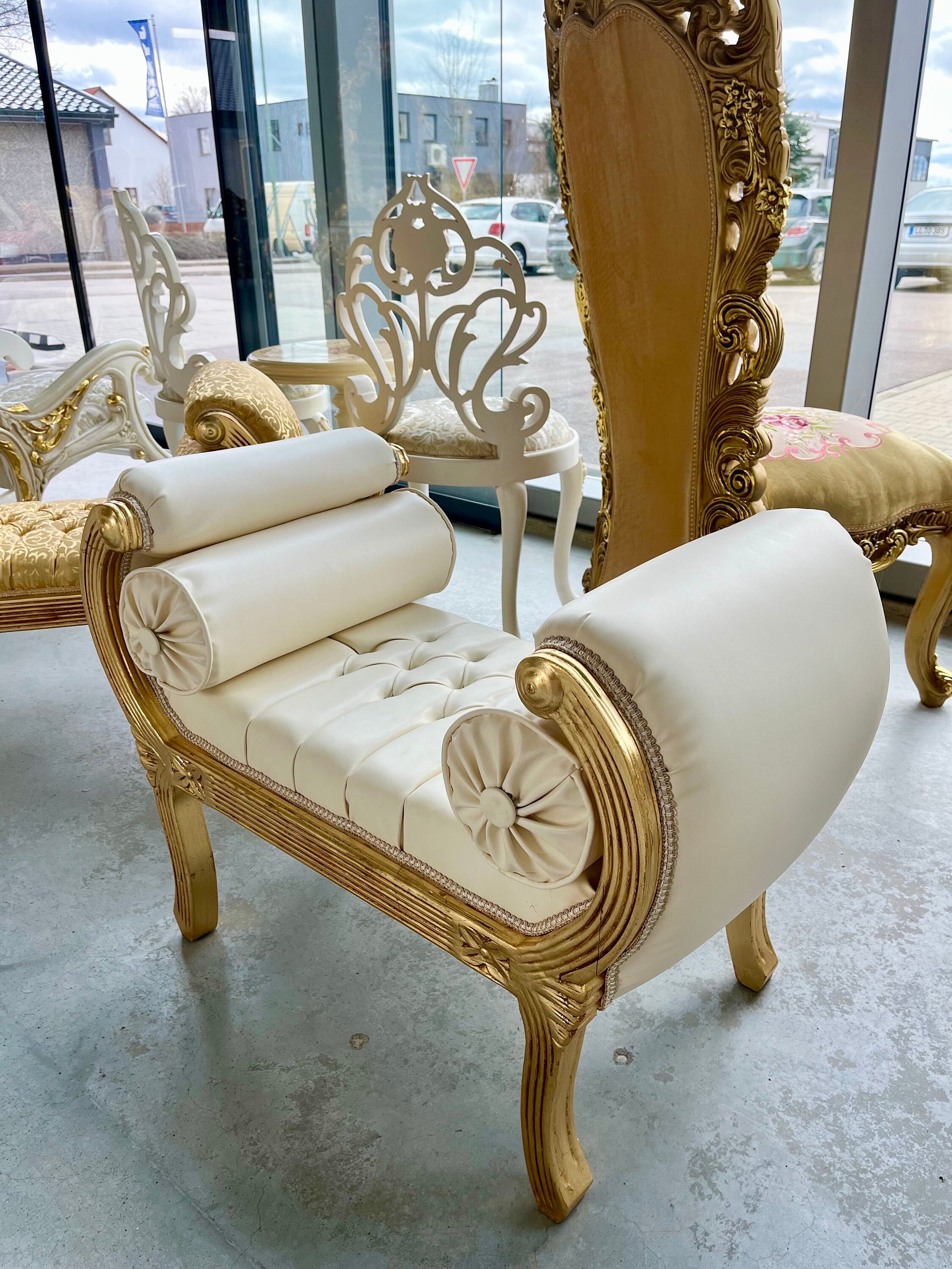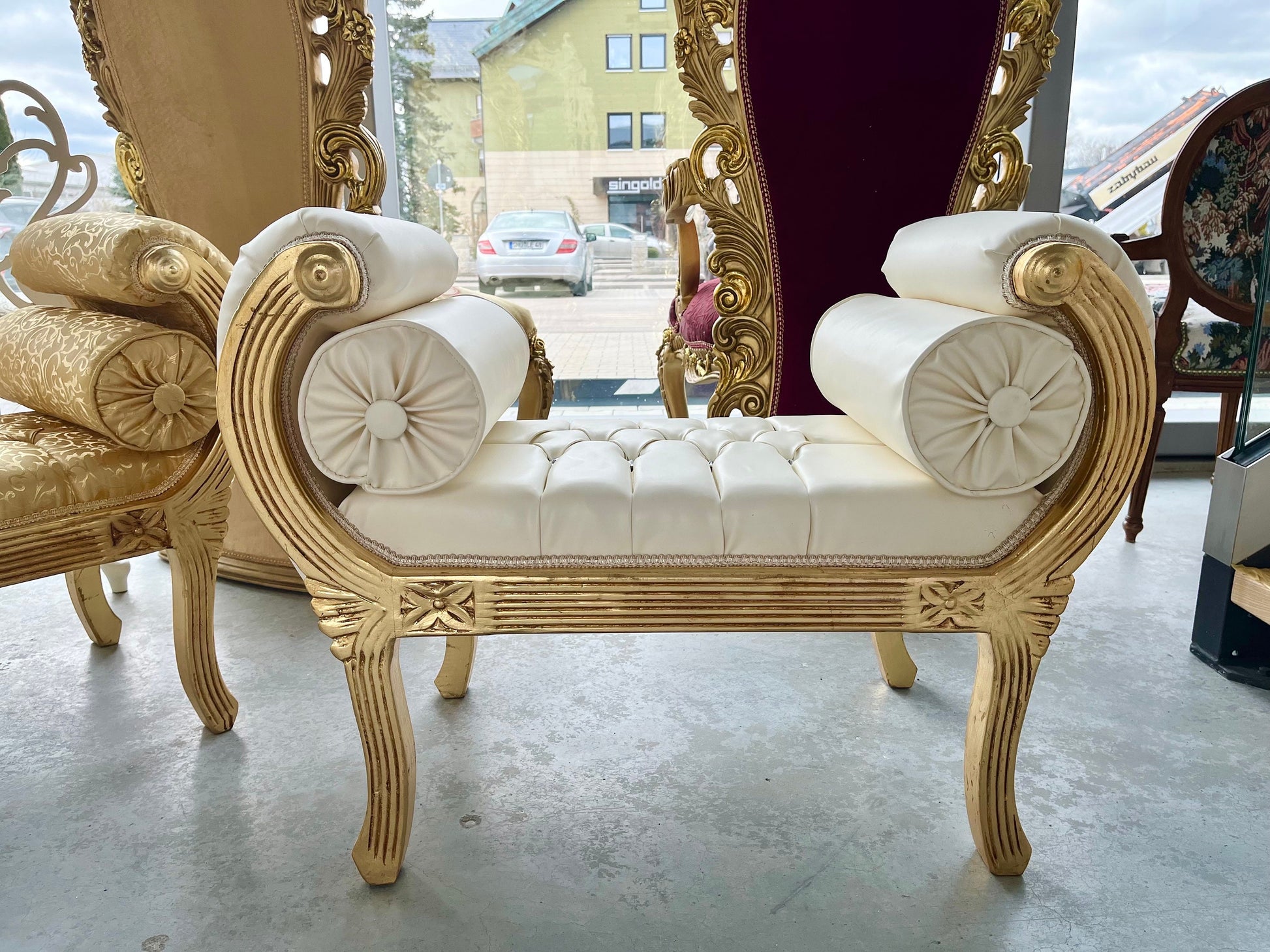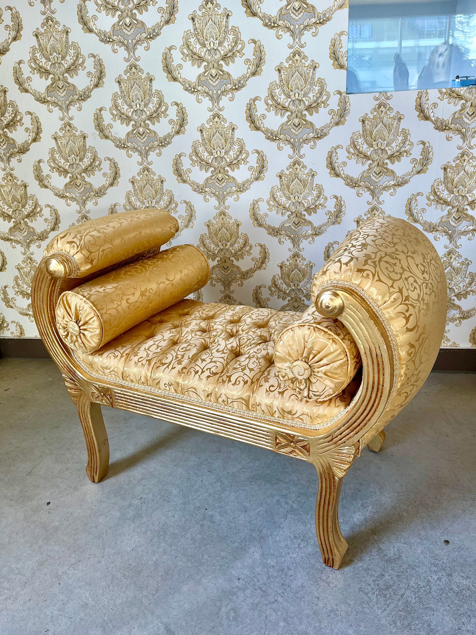 Ottoman French Louis Antique Style in Gold Hocker Retro Baroque Rococo Style in Gold Colour Ottoman for Home Decor