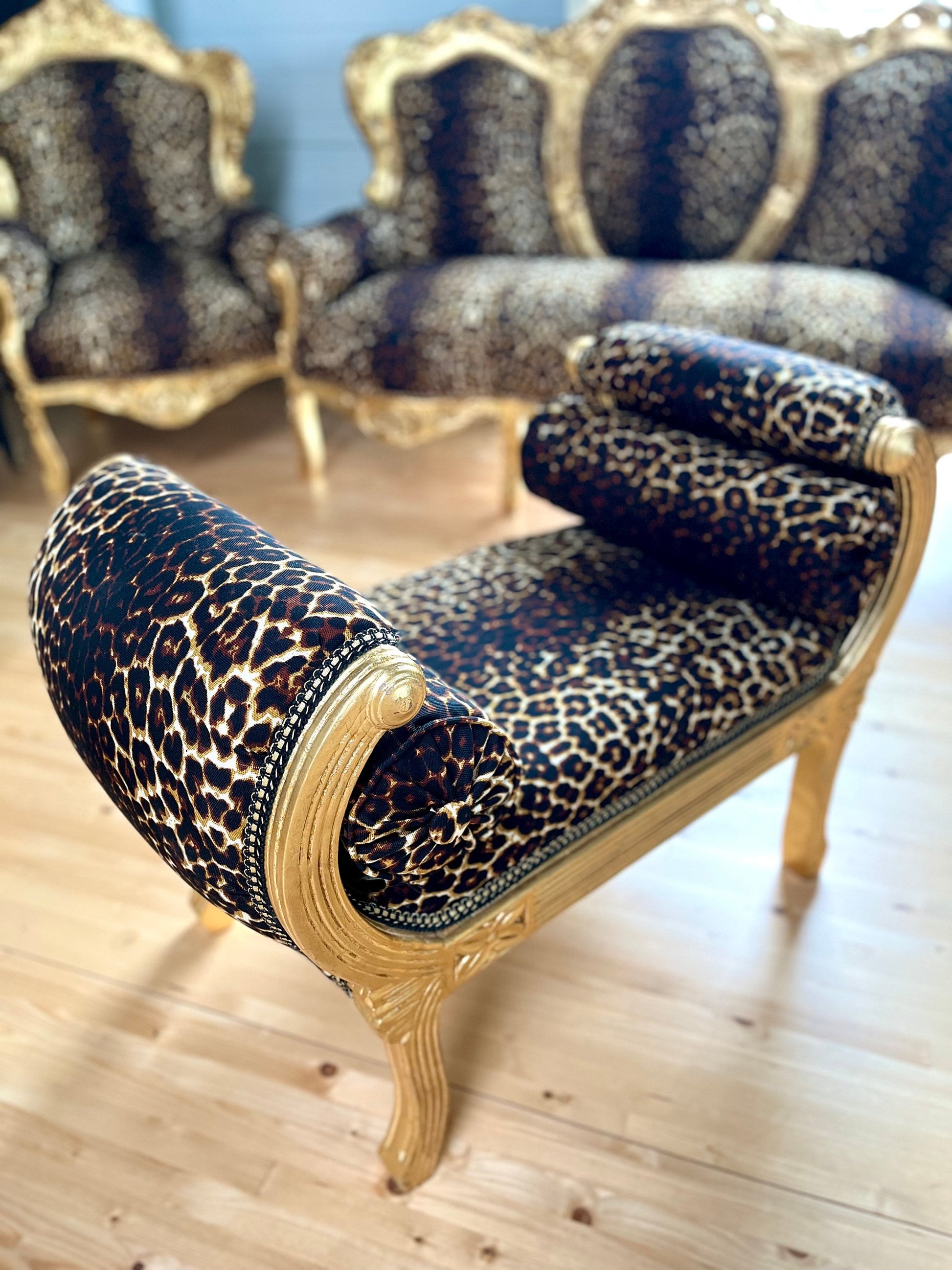 Ottoman Nostalgic French Louis Style Leopard Print Footstool in Gold Finish Ottoman Retro Baroque Style in Bordeaux Red Velvet Gift for Her