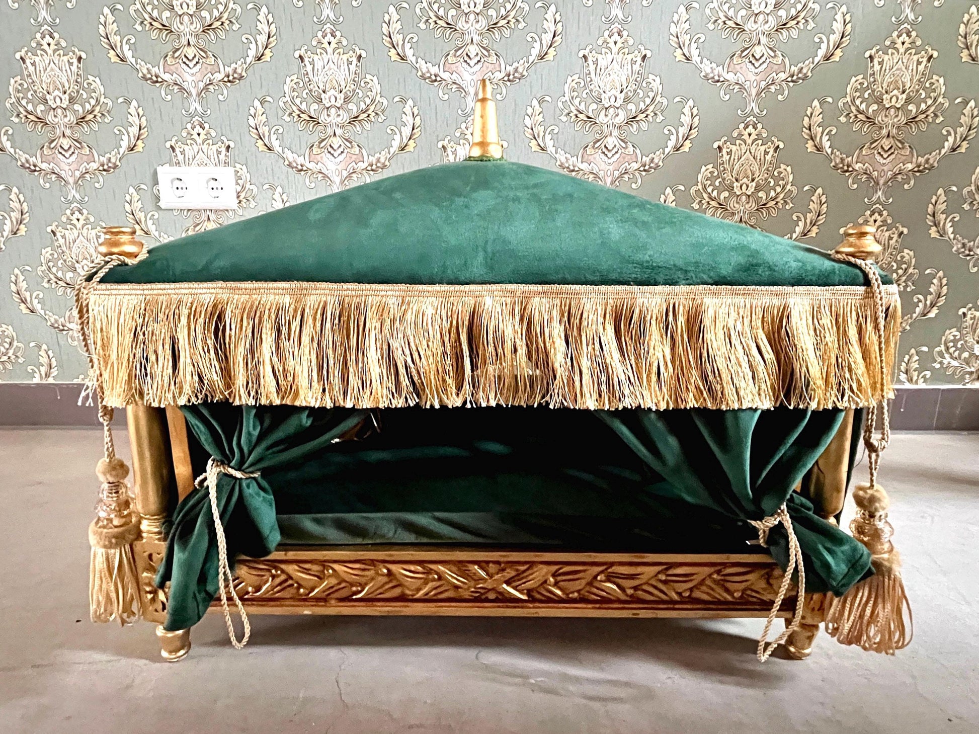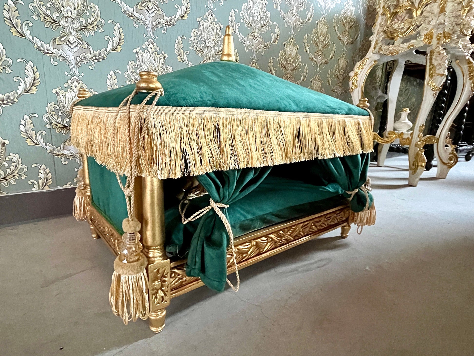 Pet Bed French Baroque Style Dog Bed in Royal Style Velvet Emerald Green Gold Finish Roof Cover Detachable Pet Furniture for Home Decor