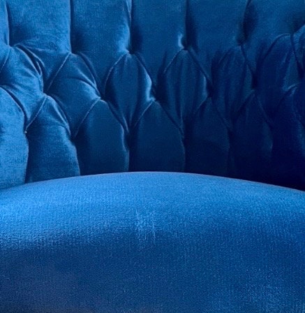 Handcrafted in solid beech wood, upholstered in velvet fabric and gilded with foil gold leaf. It’s sturdy, cozy and gorgeous !