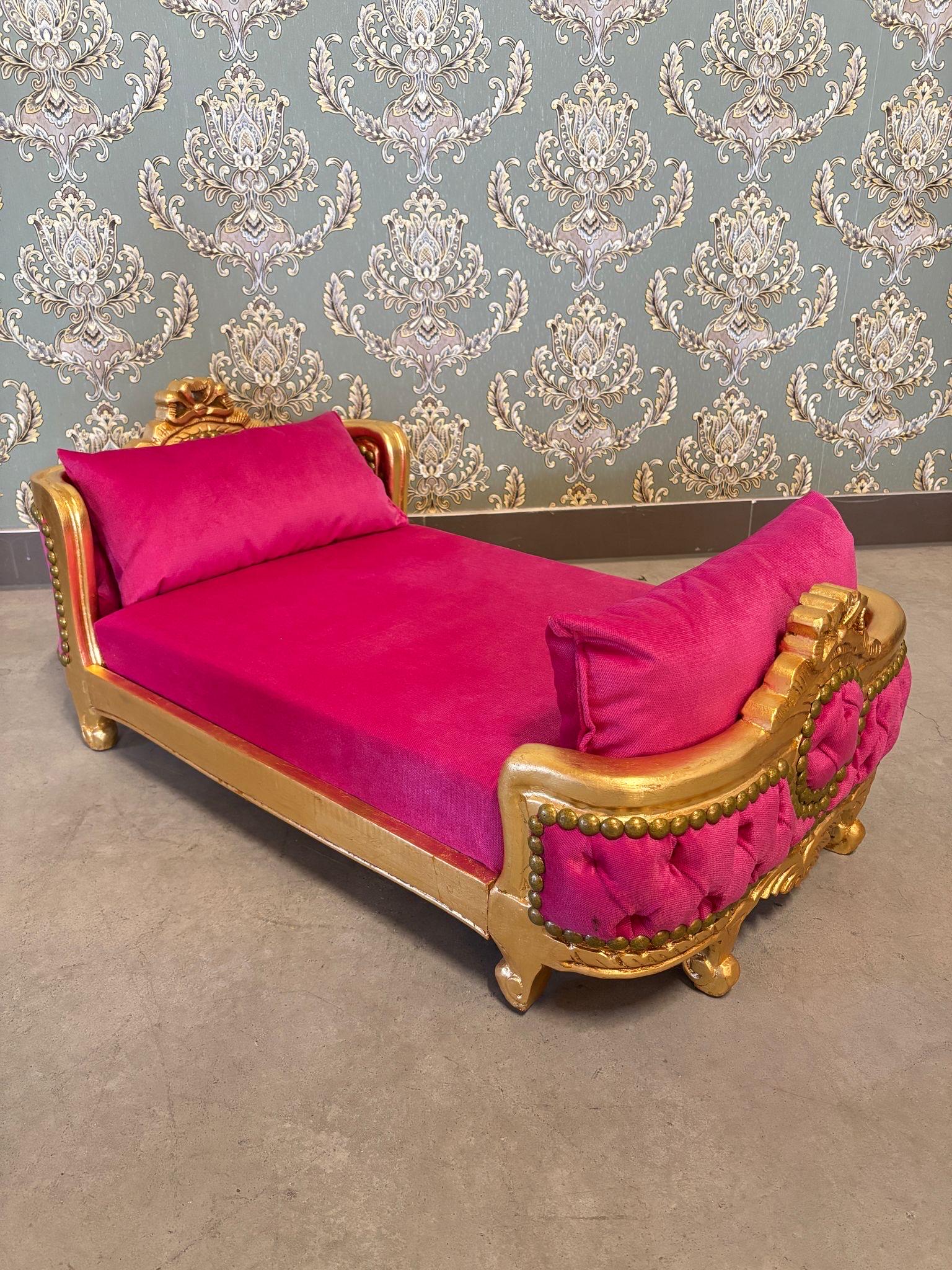 Pet Bed French Louis Baroque Style Handmade Small Dog Bed Velvet Hot Pink Baroque Style Cat Bed Velvet Blue in Gold Finish Home Decor