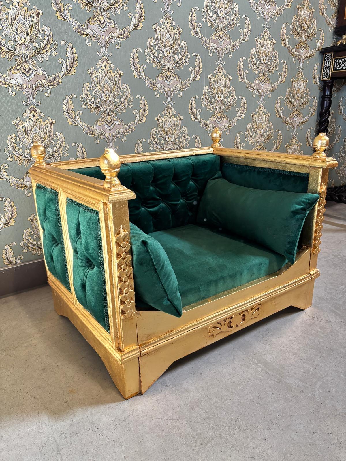 Pet Sofa Green Velvet French Baroque Style Cute Dog Couch Handmade in Hot Pink Velvet Gold Finish for Small Pet for Pet Lover