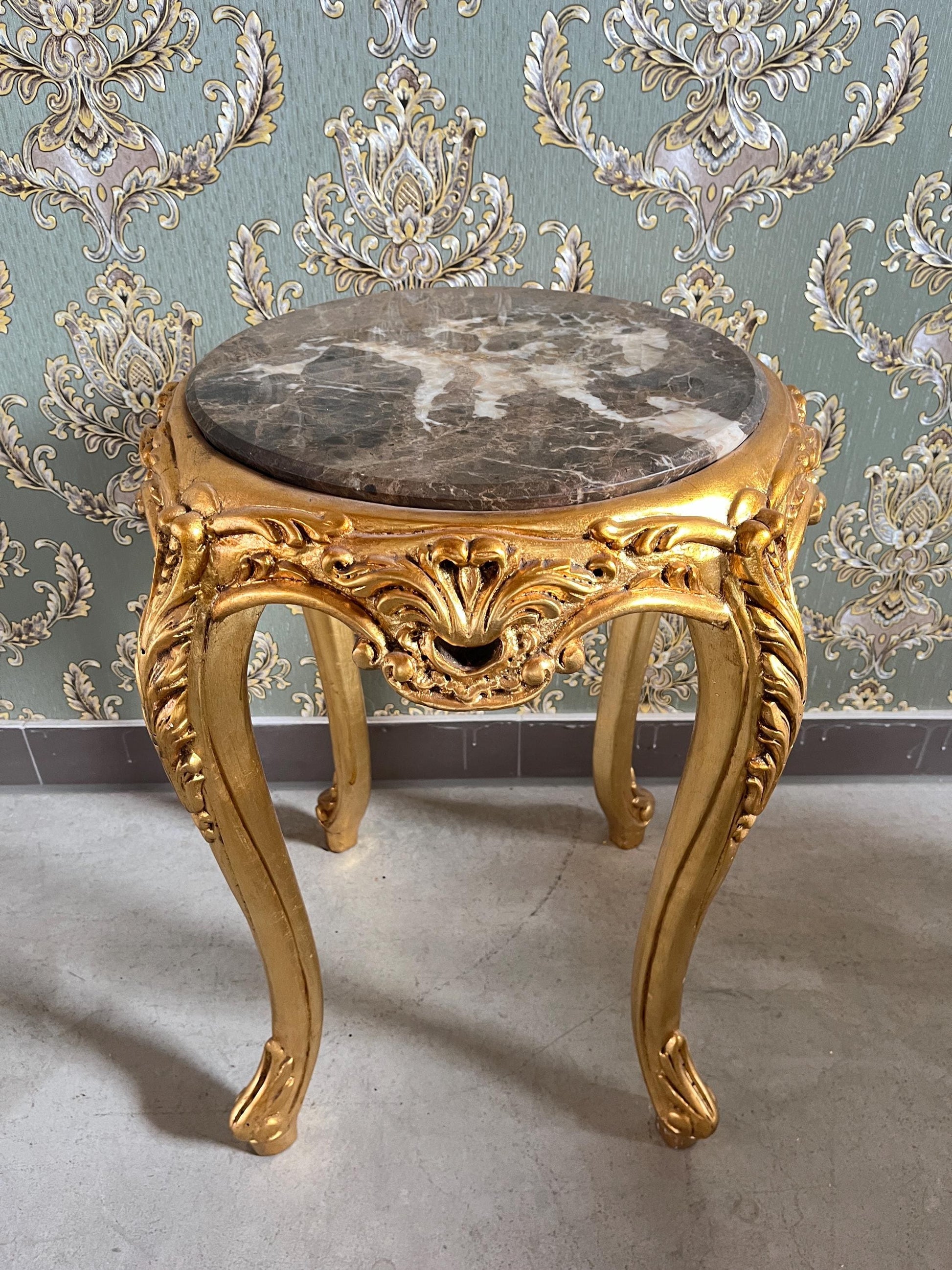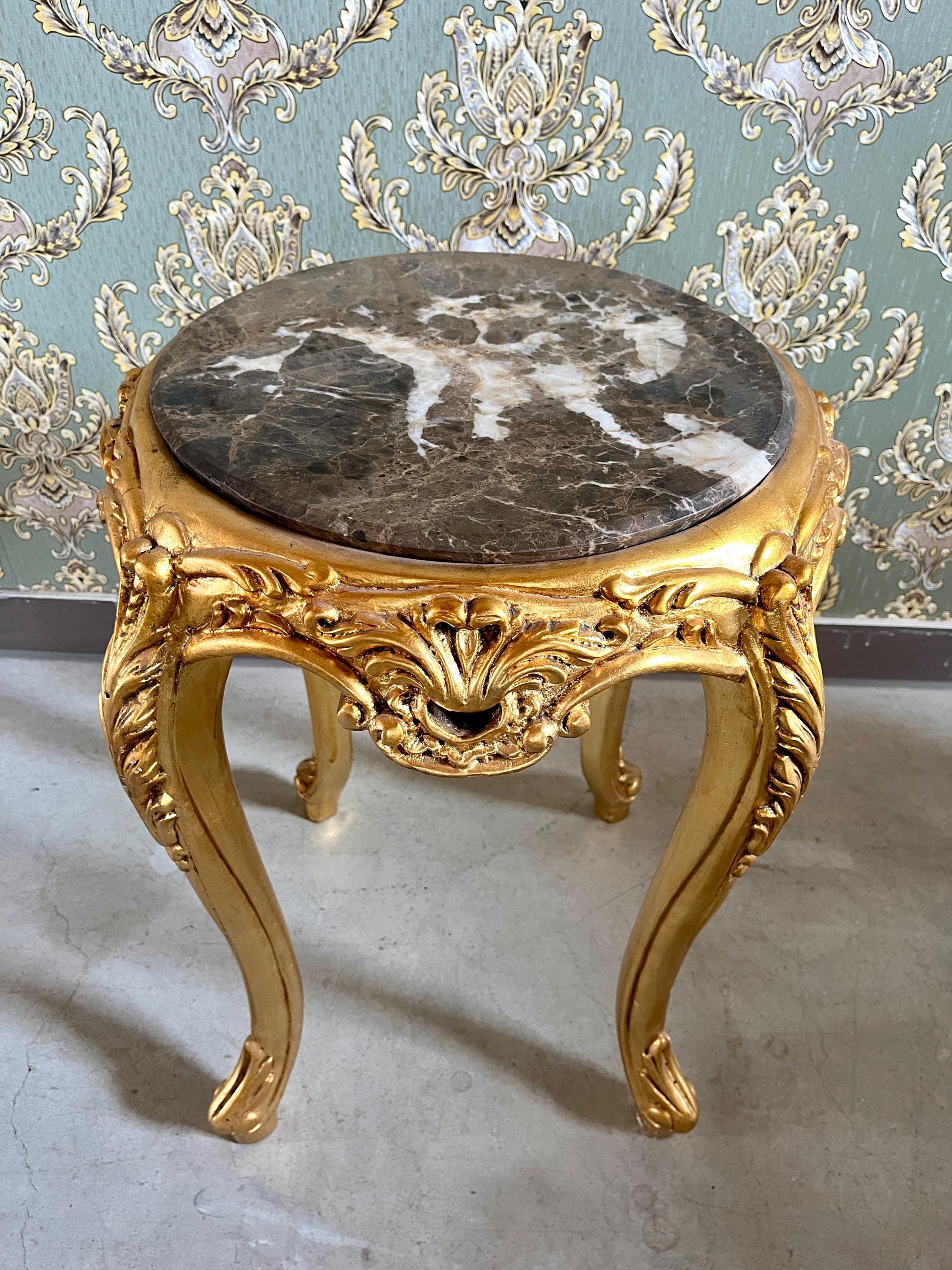 Round Side Table French Louis Antique Style Handmade Side Table with Brown Marble Top Retro Baroque Style In Gold Finish for Home Decor
