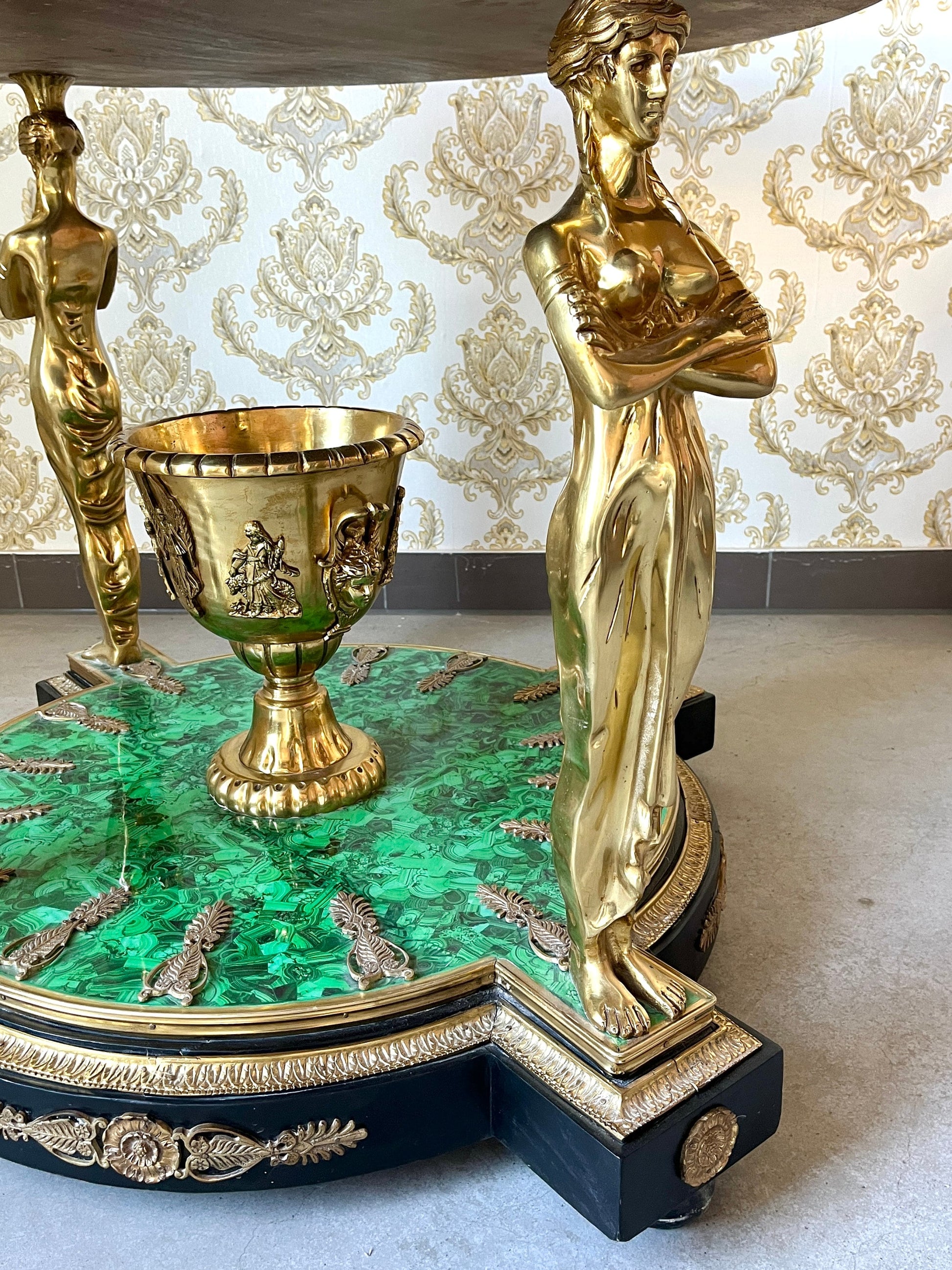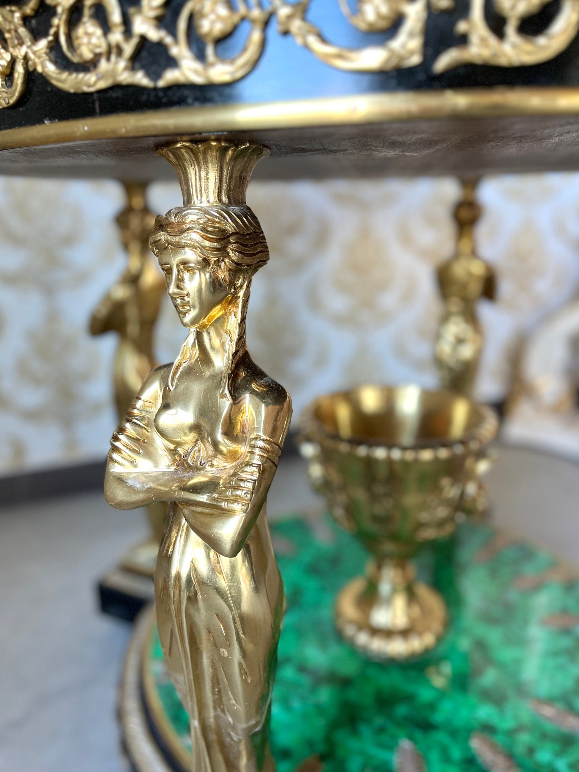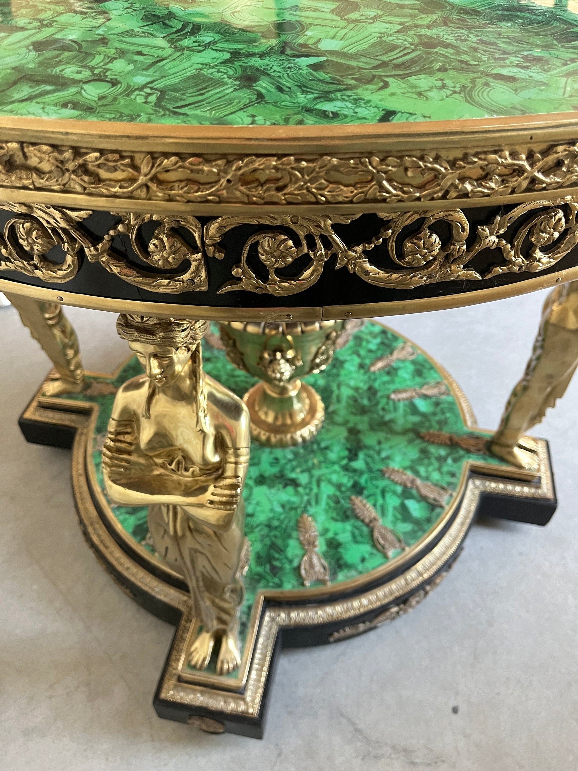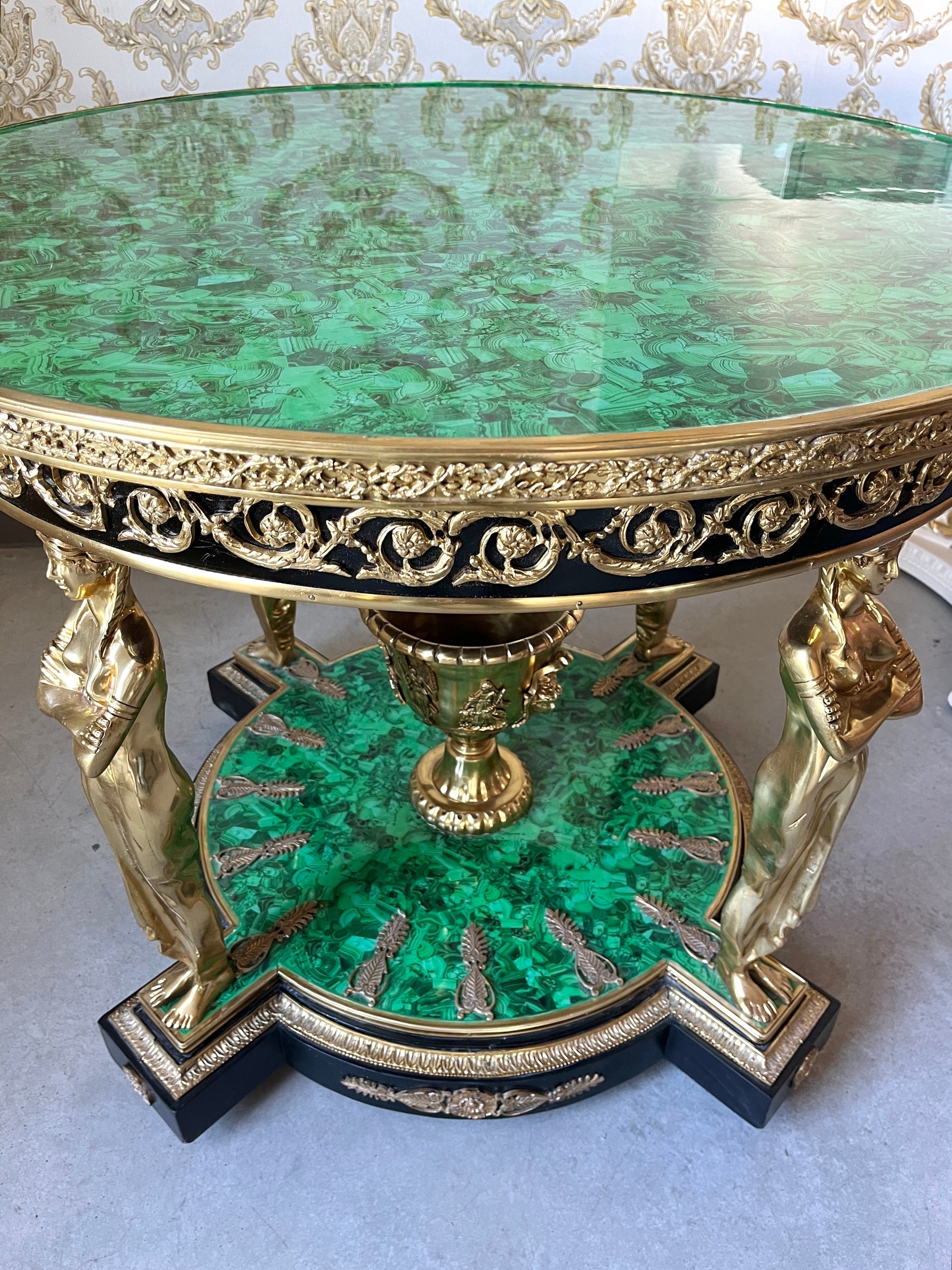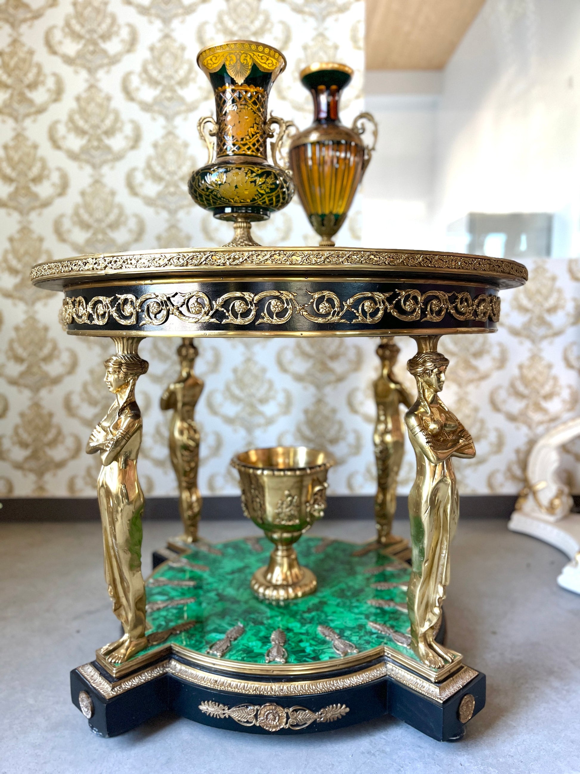 Round Table Royal Antique Style Emerald Green Table Bronze Sculpt Legs Retro Rococo Style Noble Empire Decor Table for Luxurious House