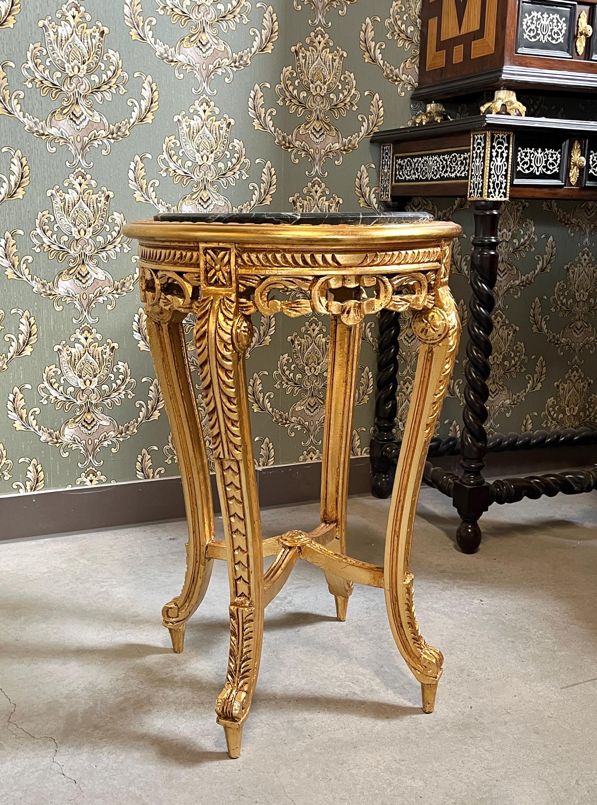 Louis antique baroque style side table in reproduction with a marble slab at top. It’s suitable as for tea or coffee side.